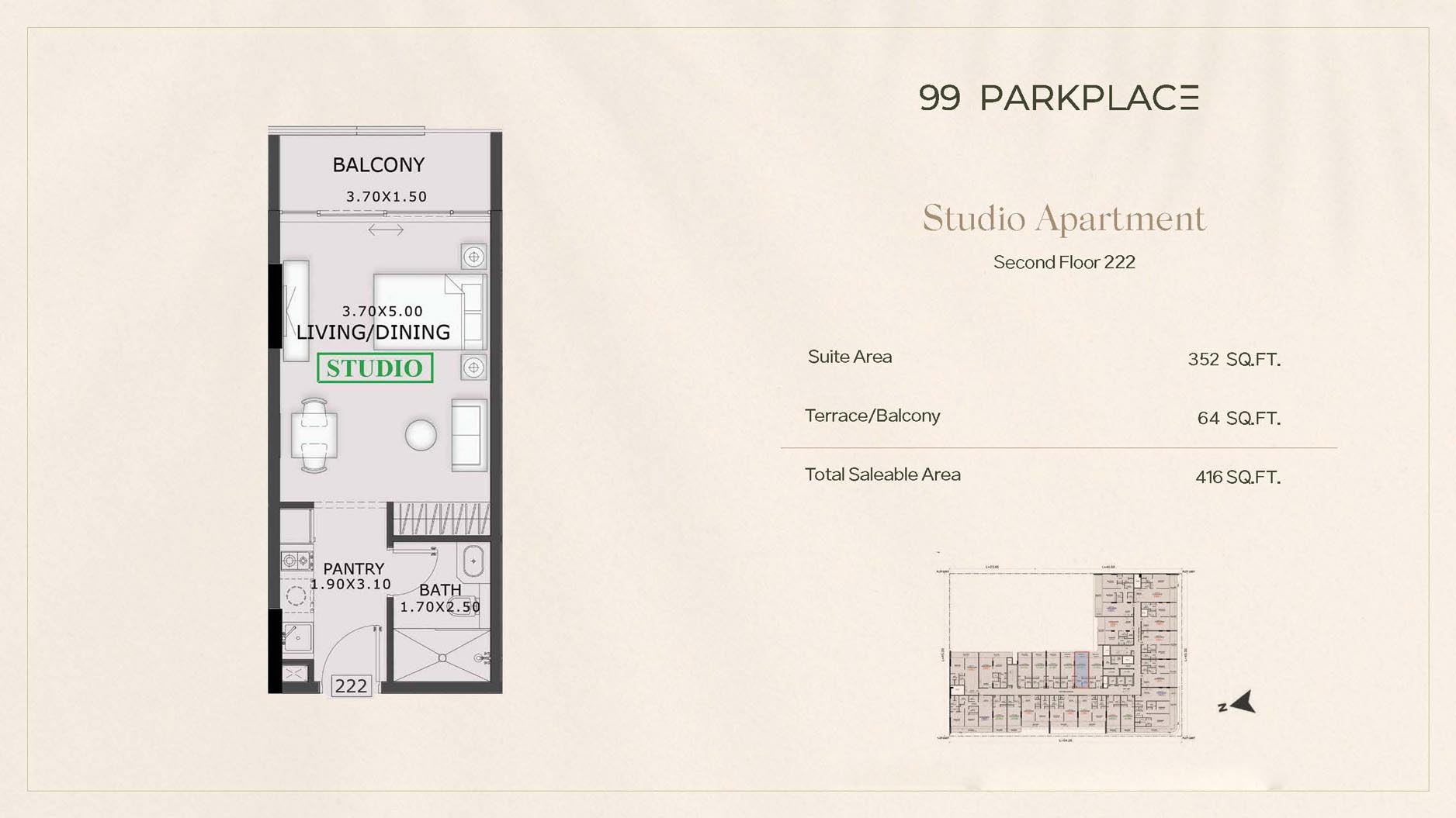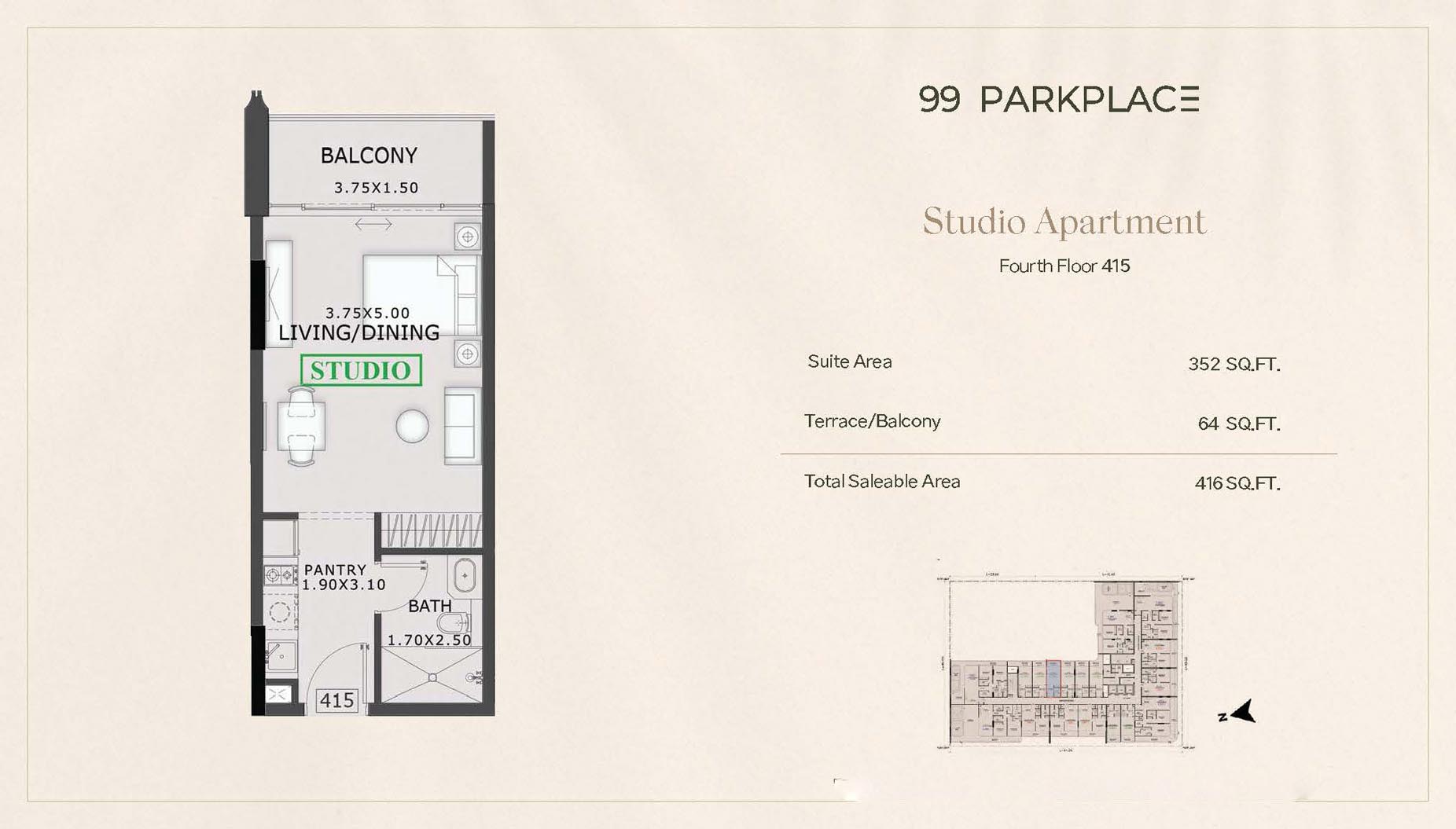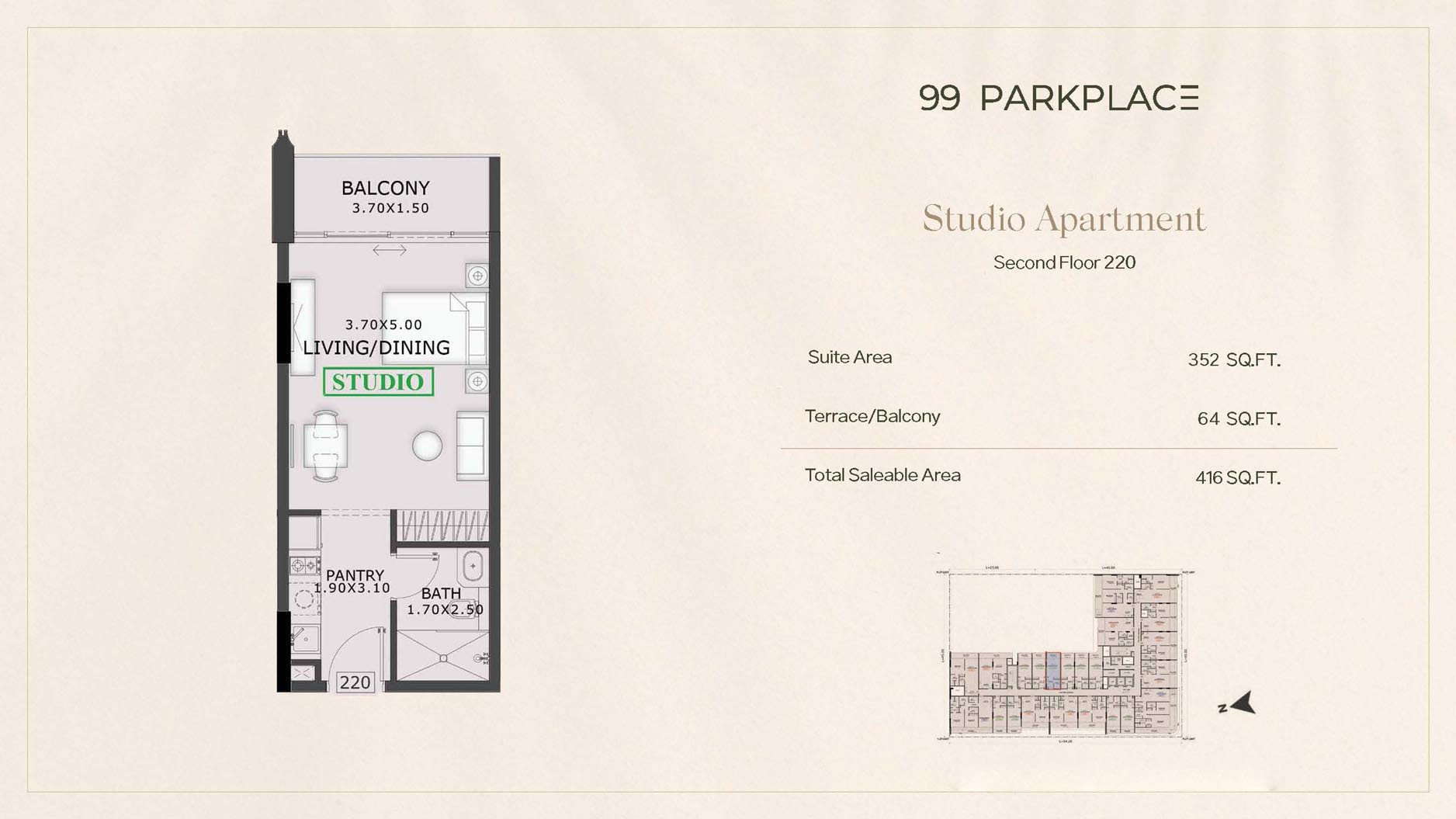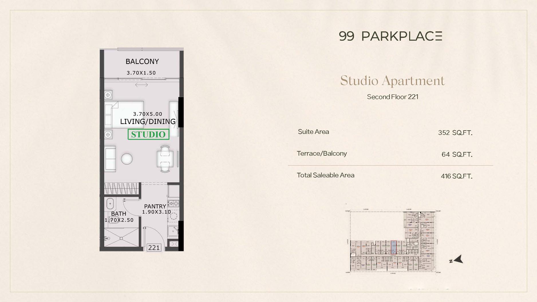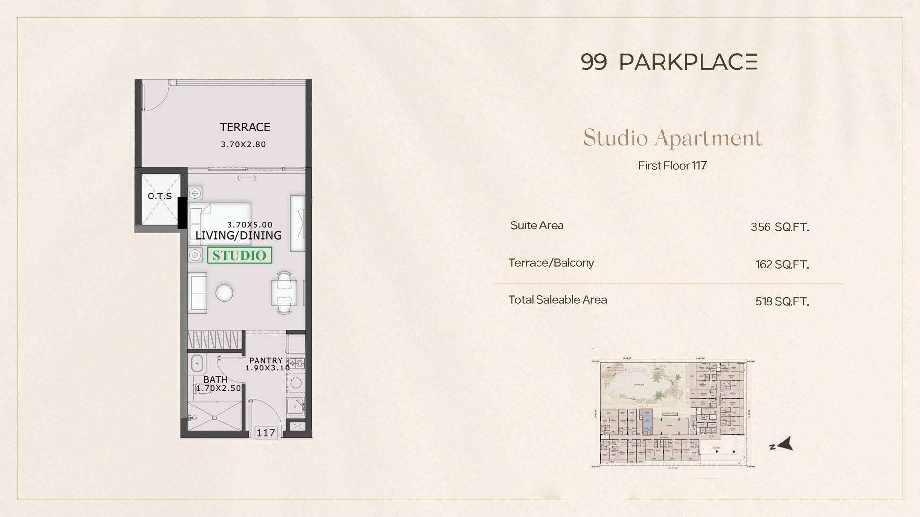 Tabeer 99 Park Place offers an innovative floor plans of studio 1, 2 bedroom apartments, ensuring that each unit is meticulously crafted to provide maximum comfort and functionality for its residents.