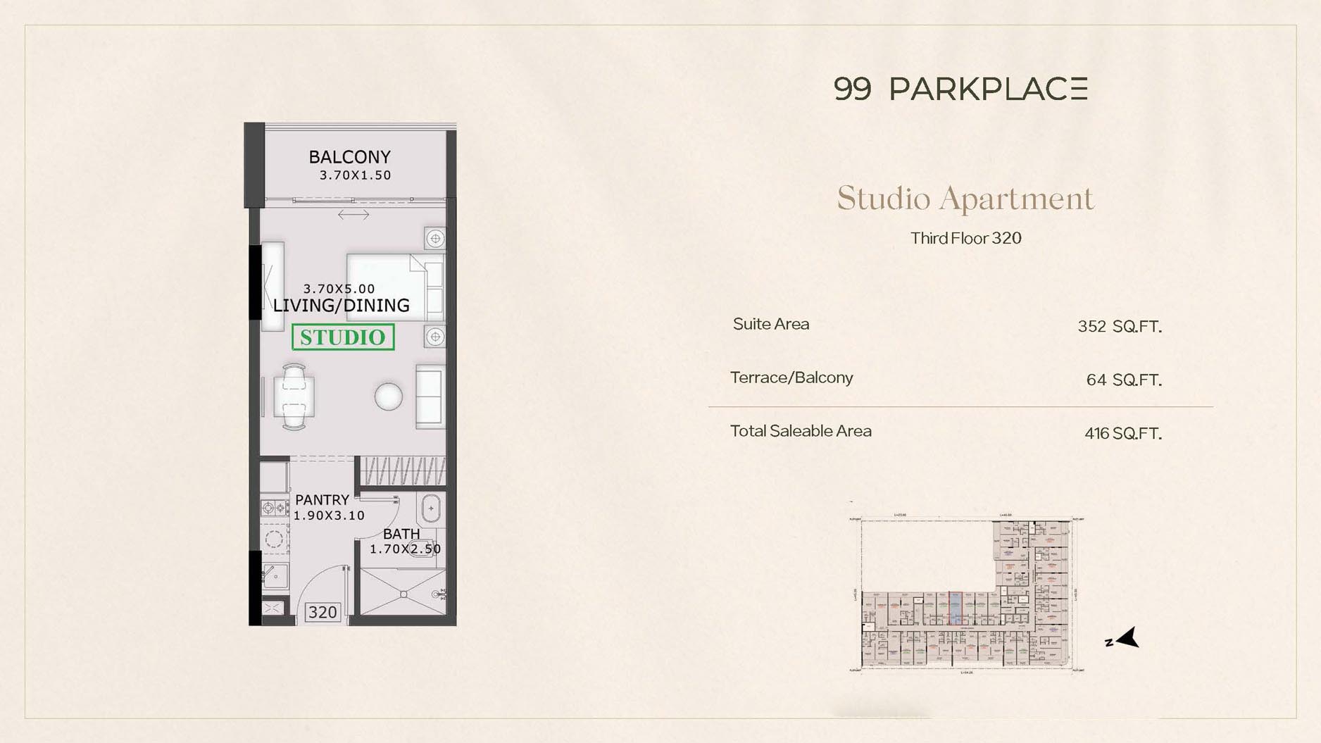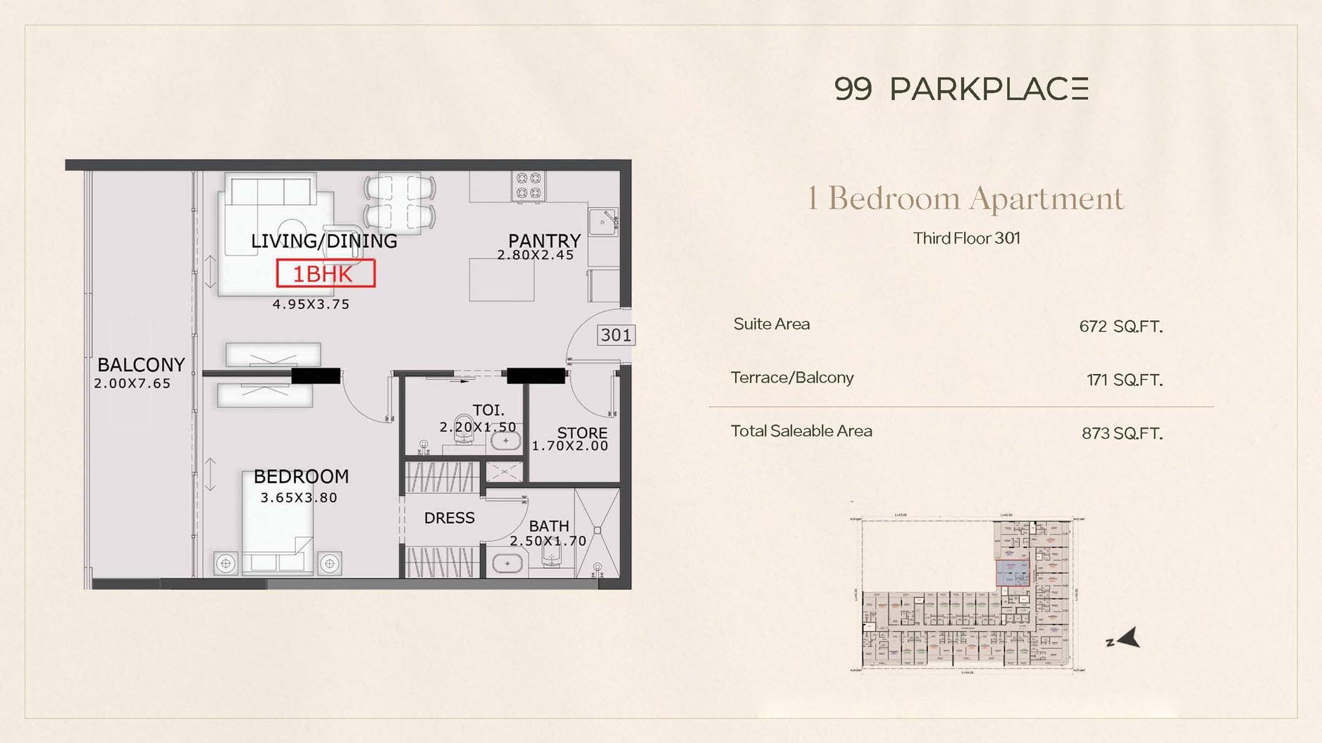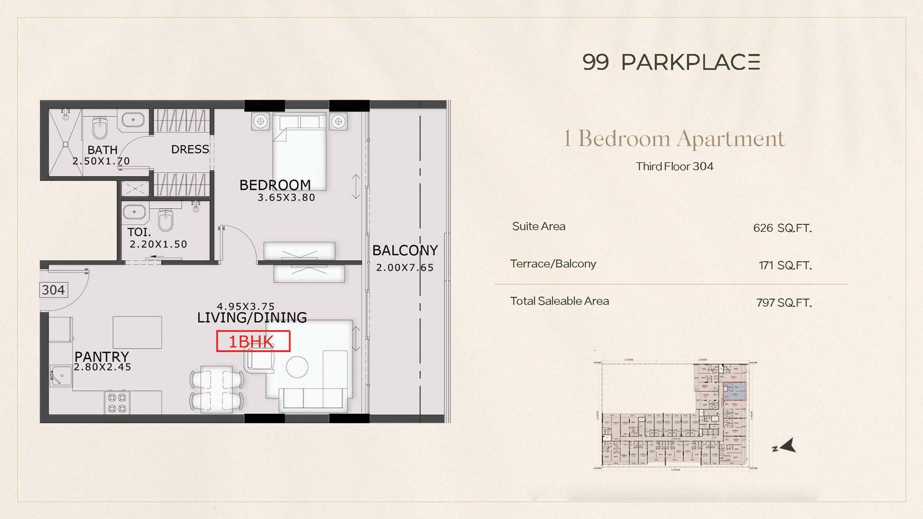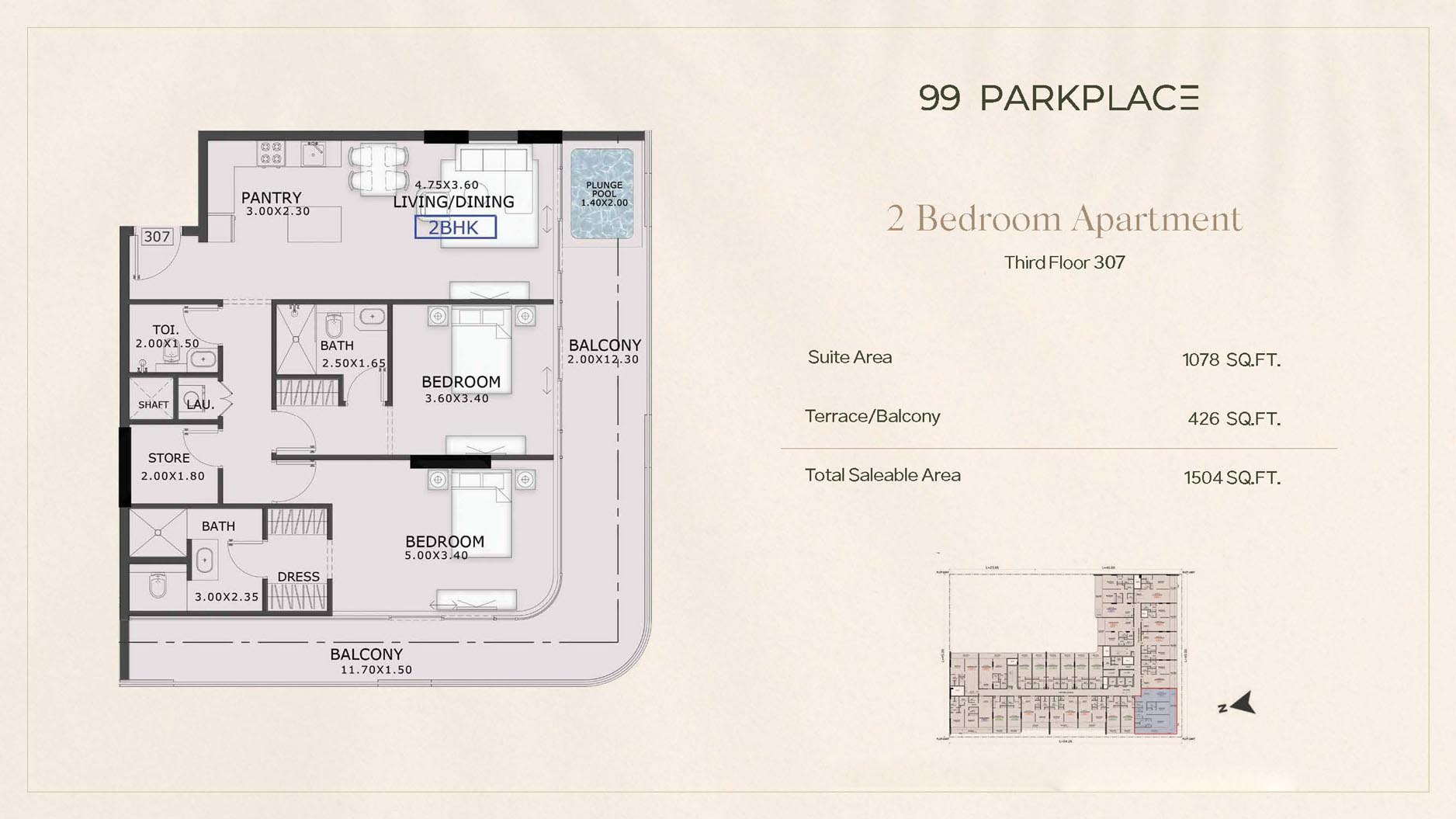 Tabeer 99 Park Place offers an innovative floor plans of studio 1, 2 bedroom apartments, ensuring that each unit is meticulously crafted to provide maximum comfort and functionality for its residents.