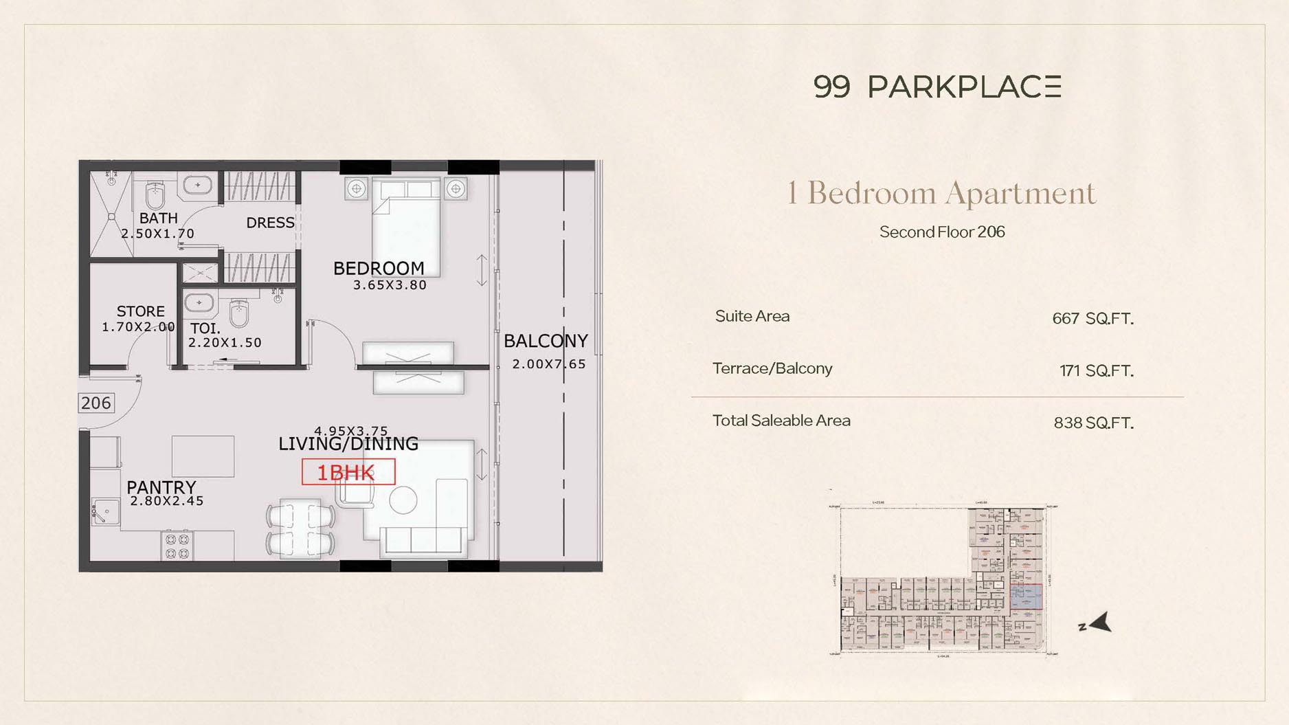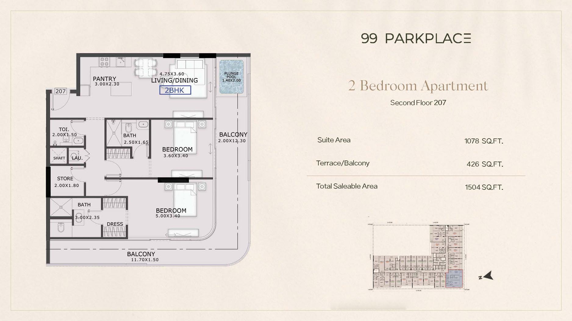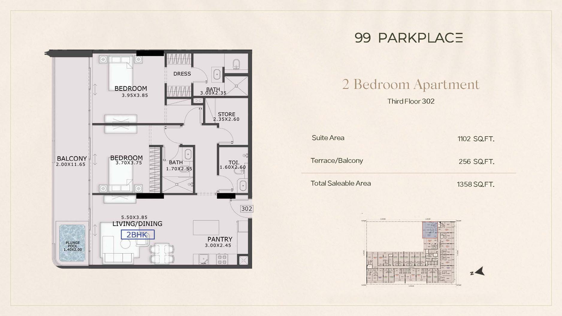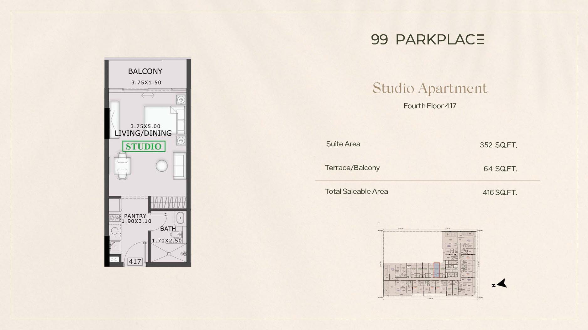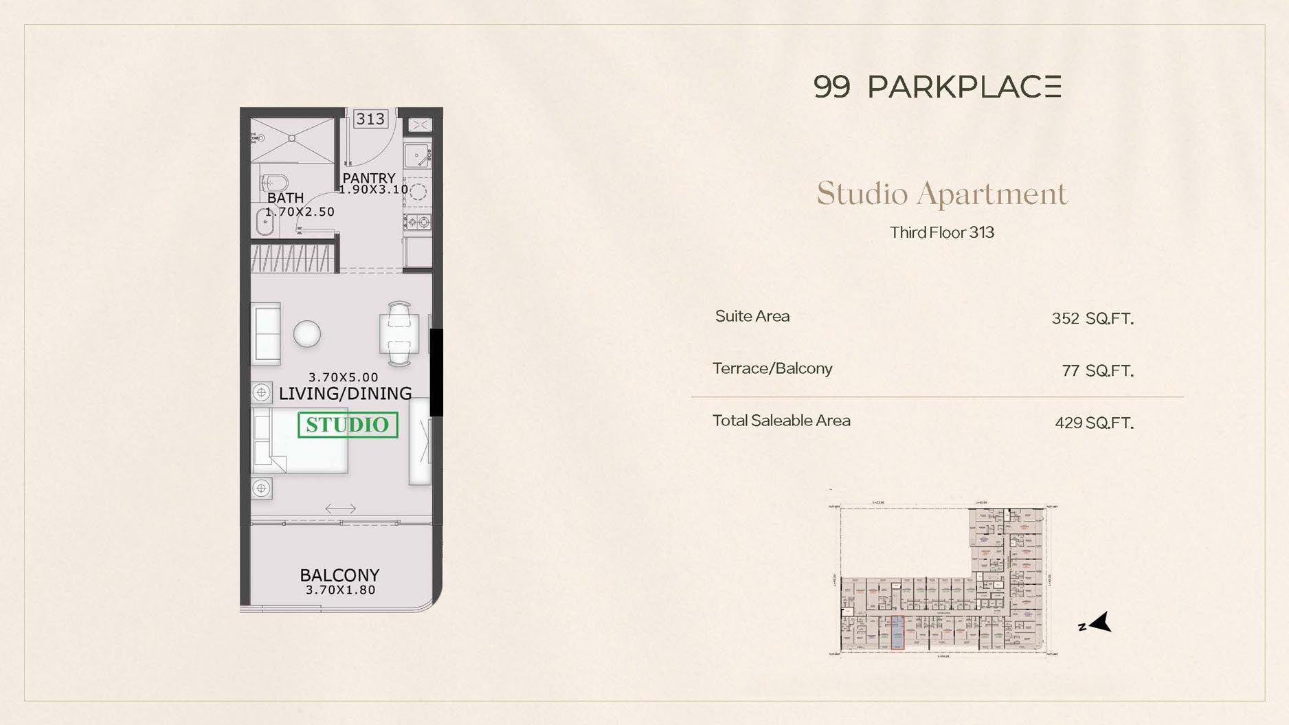Tabeer 99 Park Place offers an innovative floor plans of studio 1, 2 bedroom apartments, ensuring that each unit is meticulously crafted to provide maximum comfort and functionality for its residents.