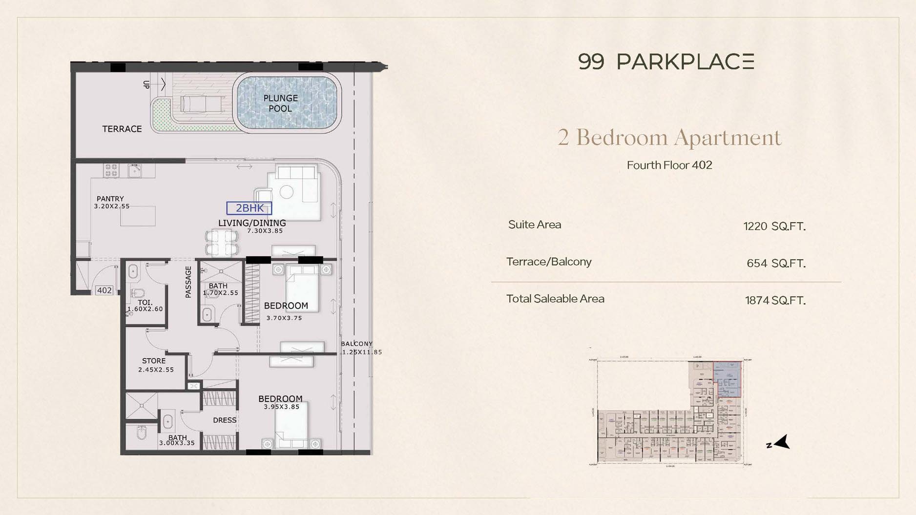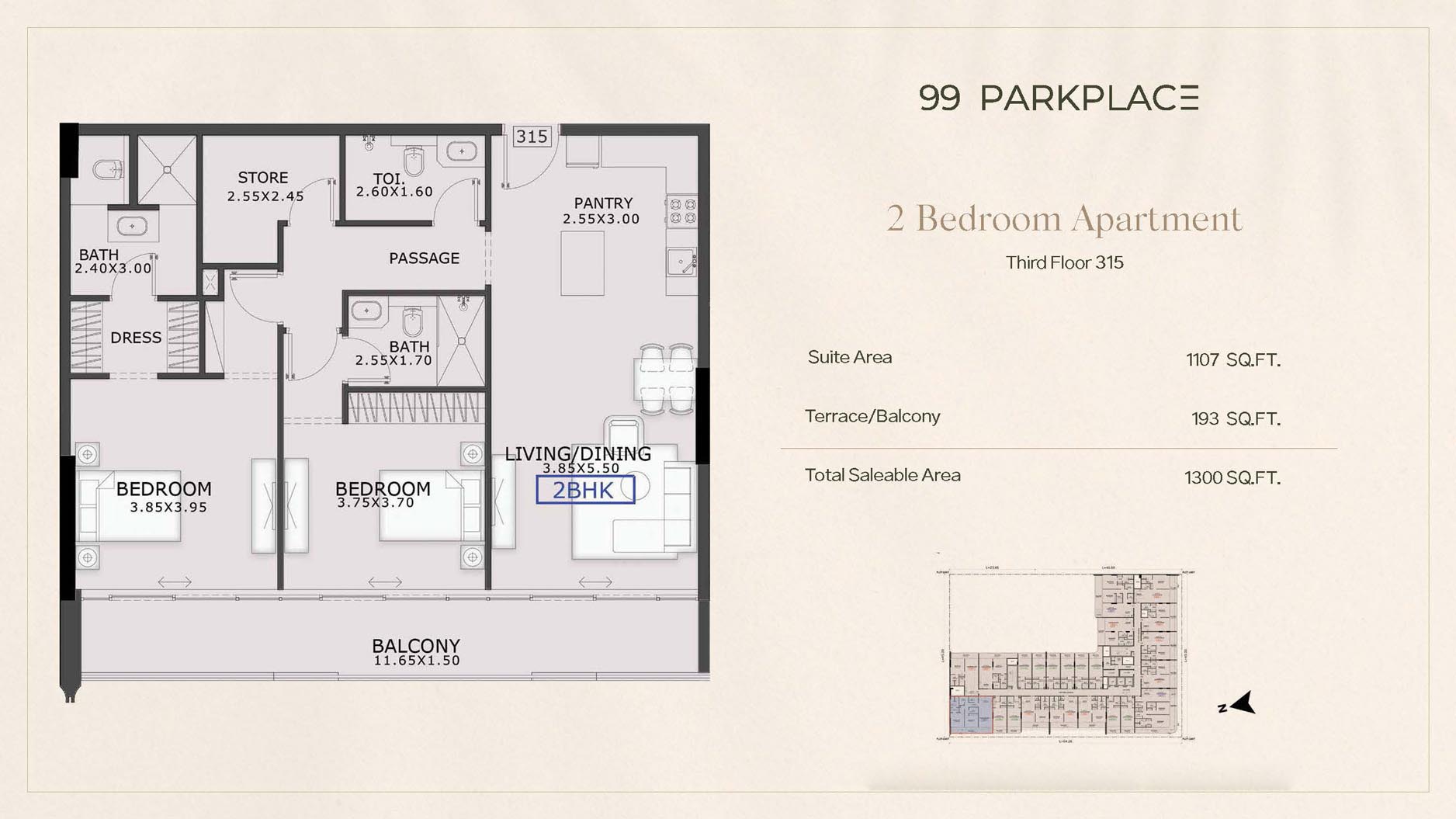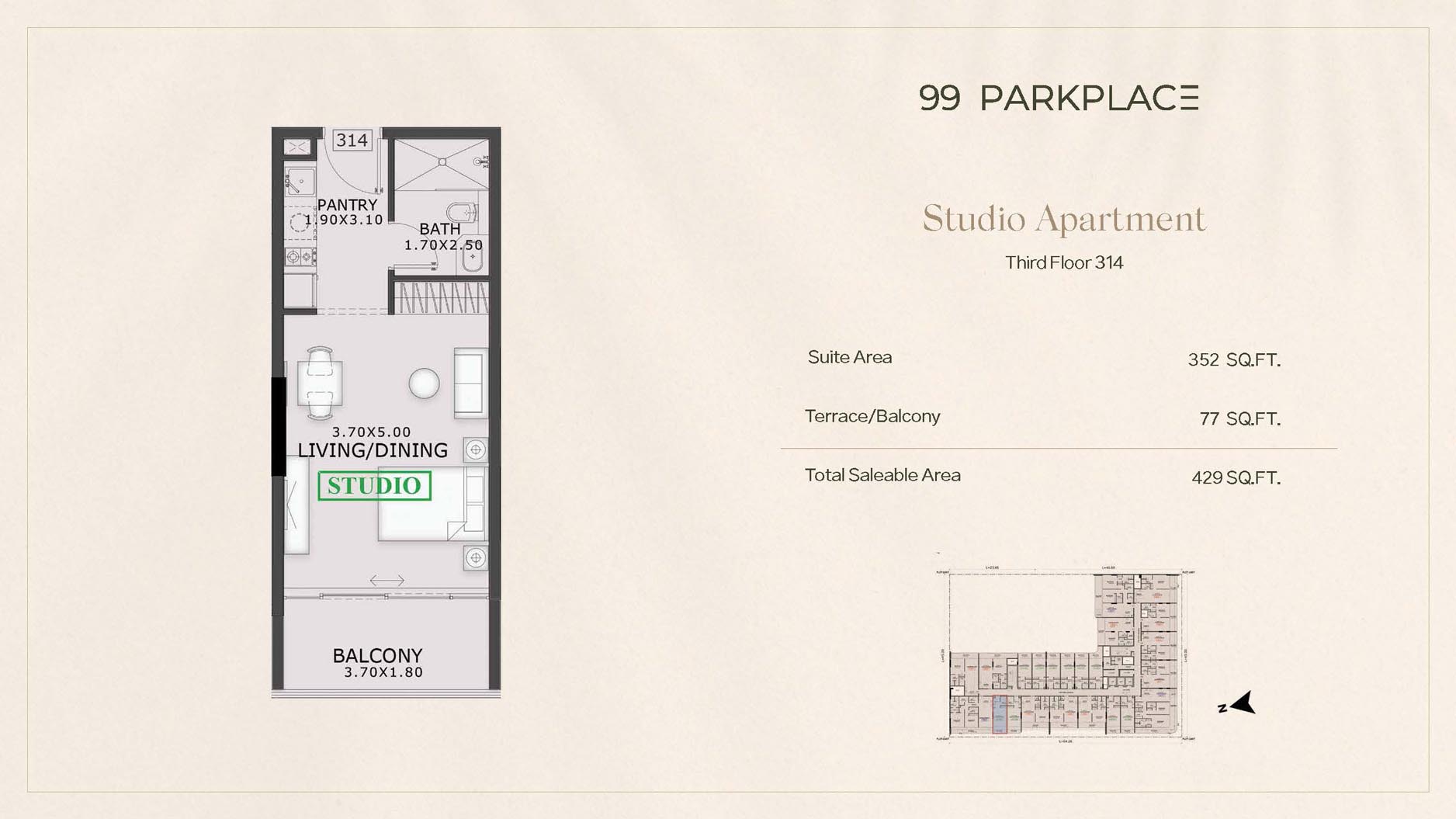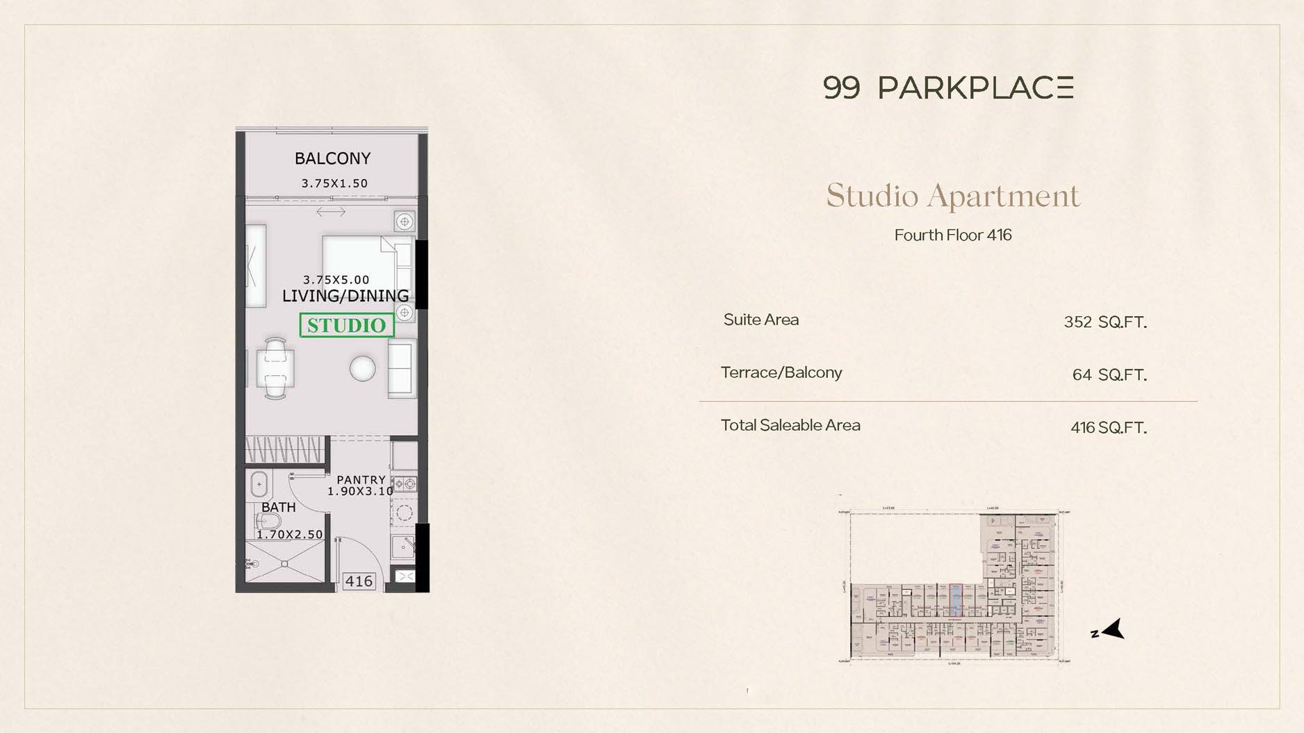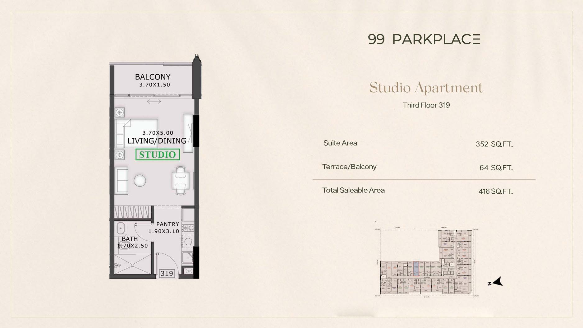 Tabeer 99 Park Place offers an innovative floor plans of studio 1, 2 bedroom apartments, ensuring that each unit is meticulously crafted to provide maximum comfort and functionality for its residents.