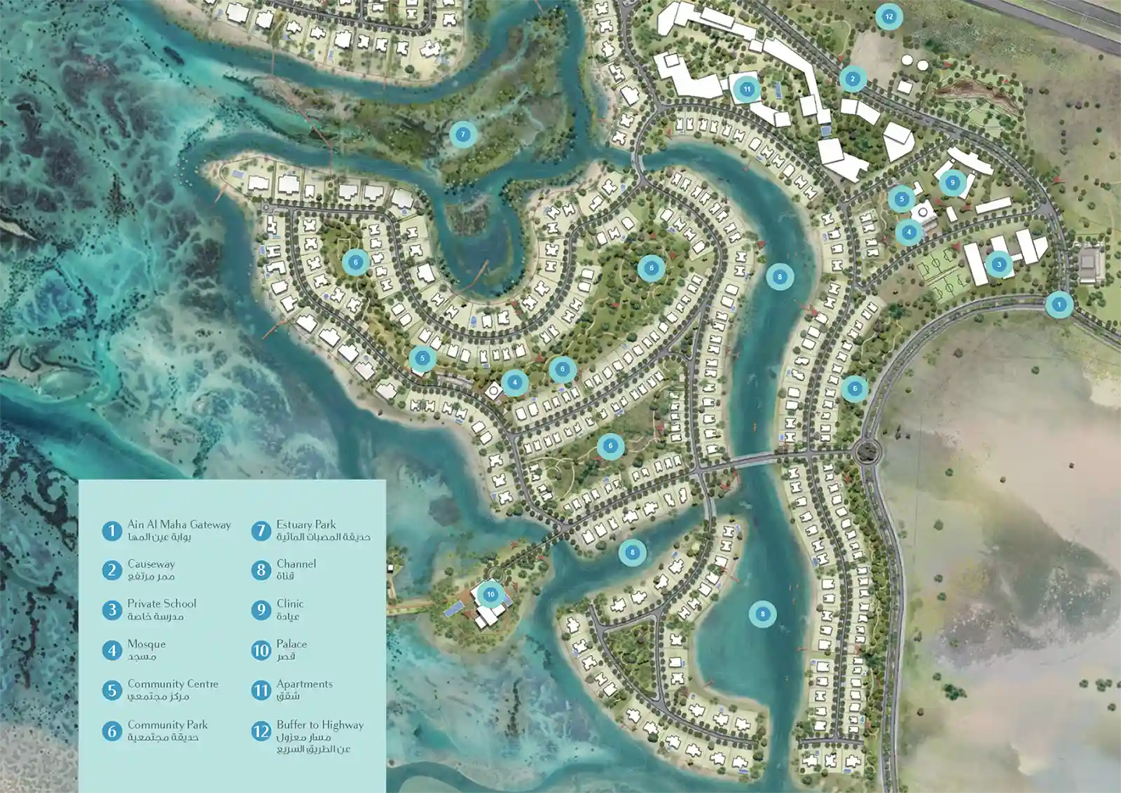 Ain Al Maha at Al Jubail Island brings the ecstasy of a vibrant bayfront living developed by Lead Development in Abu Dhabi, with chic 4 to 6-bedroom villas. Revealing a welcome like no other within this flourishing and vibrant destination. This island is a prime location that offers unmatched standards of living, where the city-life vibrancy and tranquillity of a precious island come together to form a community with endless offerings. Embracing a beautiful nature reserve, this floating heaven exposes harmonious sceneries, lifestyle amenities, and a curated corner for a lively and enticing lifestyle that offers instant connectivity, a safe and urban suburb, and a wellness-focused modern environment.