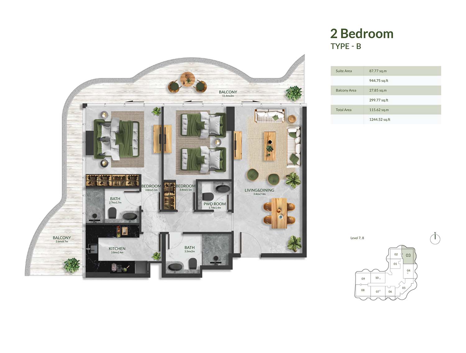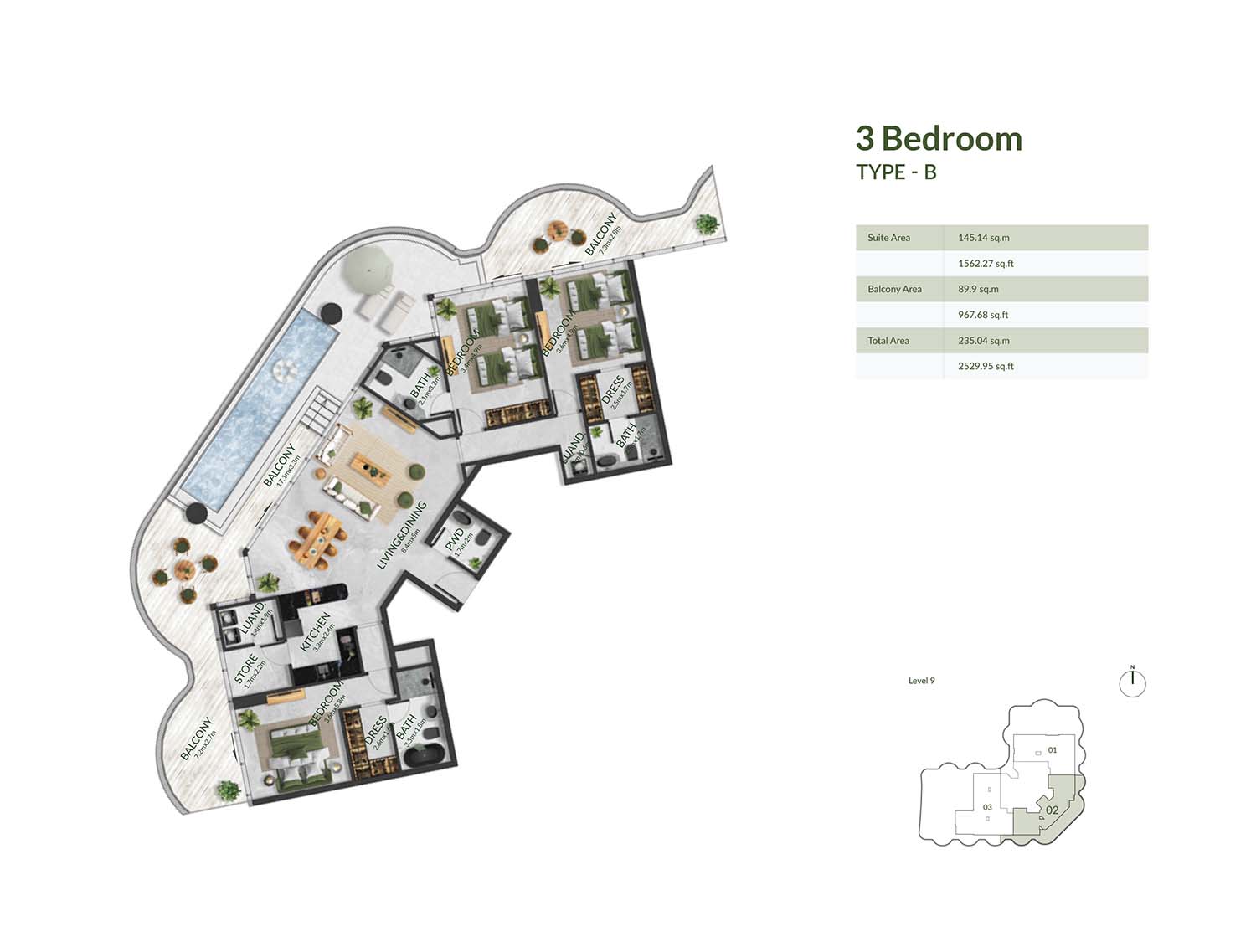 Aqua Maya is a trendy 9-storey residential masterstroke precisely complemented with 1, 2, 3, & 4-bedroom luxury apartments with purposeful floor plans. Here, unit plans are convenient, open, and stylish, perfect for having a daily routine full of ease and comfort. Each unit comes with open layouts, huge windows, and balconies with shapes like sea waves that offer an instant link between nature and private spaces. The sustainable features of soundproof walls, humidity-controlled cooling technology and thermostats in living & bedrooms ensure a beautiful and functional ambience for the well-being of residents.