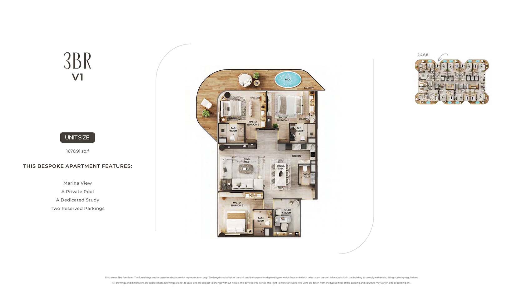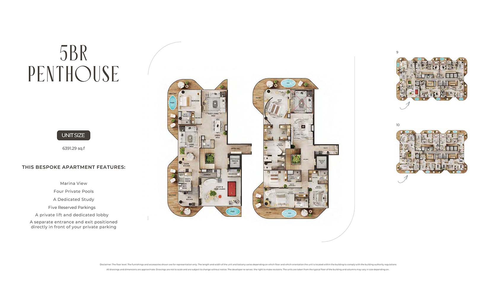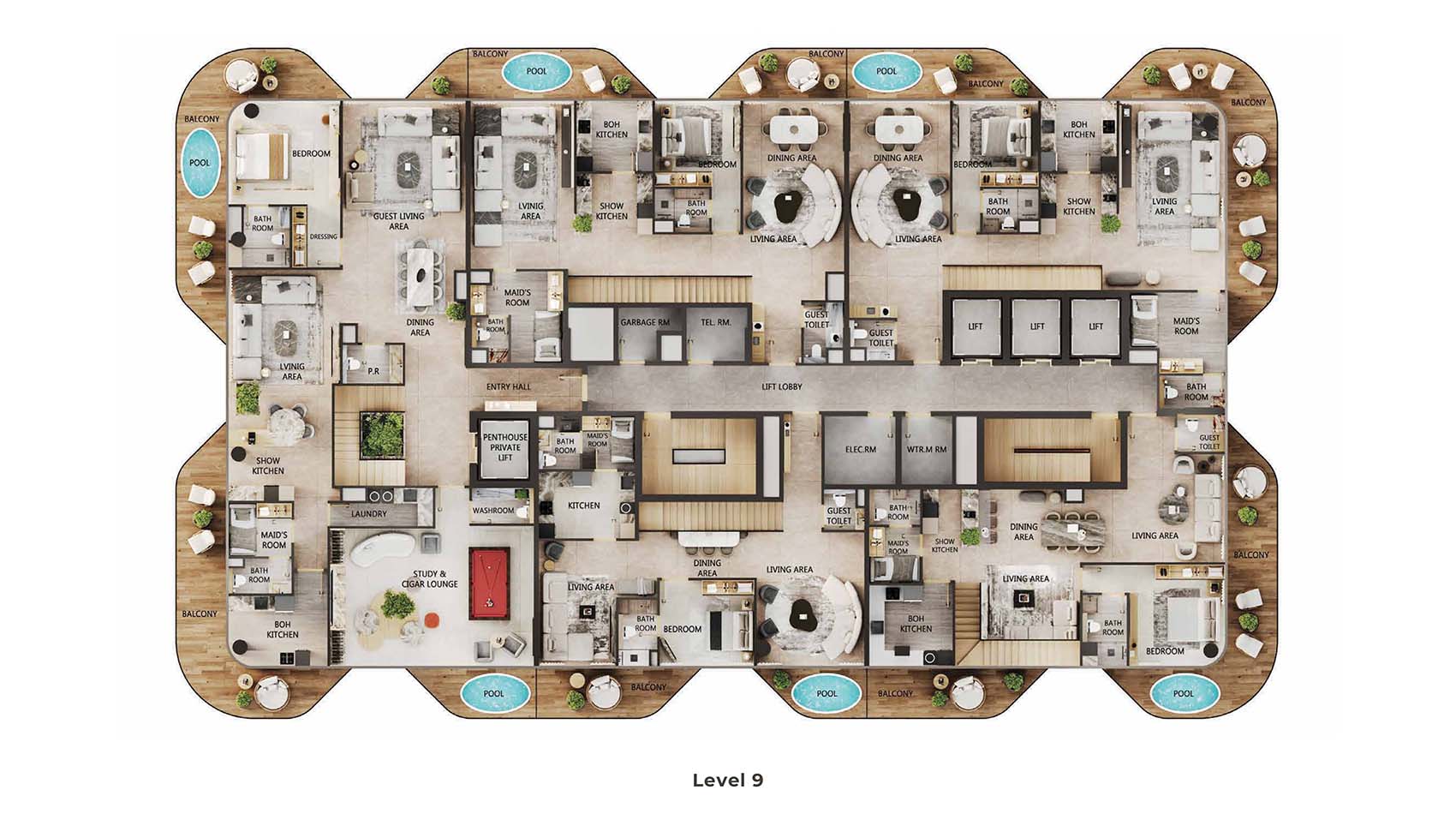 - Premium development with 1 to 3-bedroom apartments and 4 & 5-bedroom penthouses.