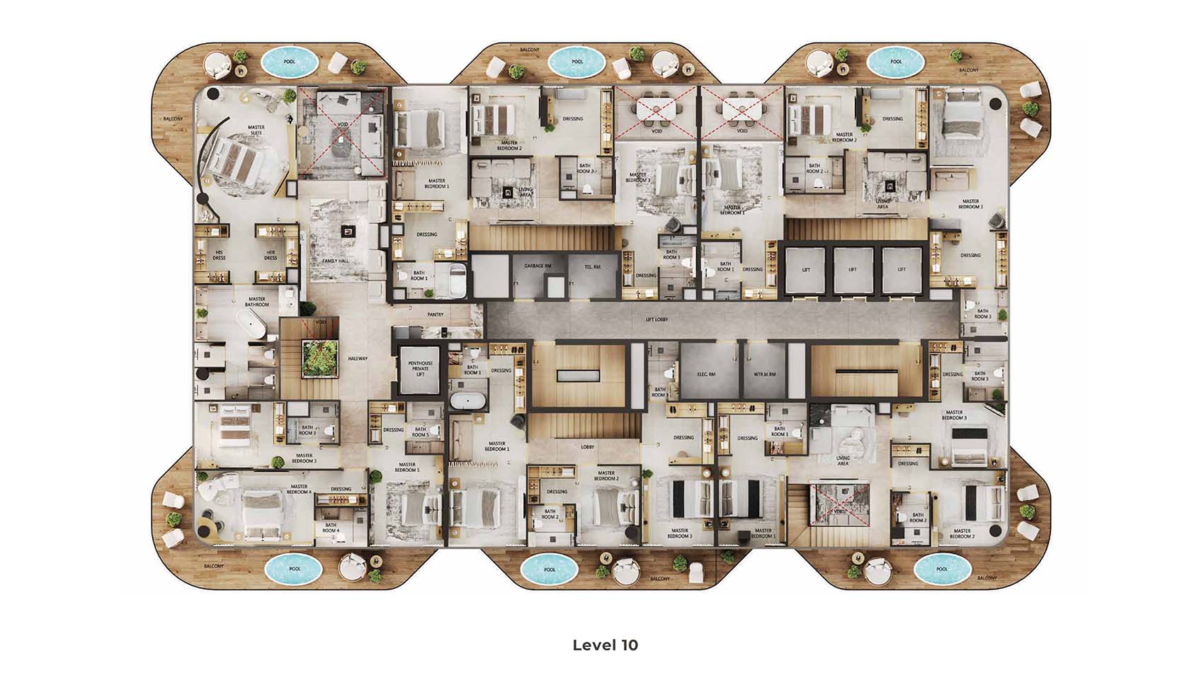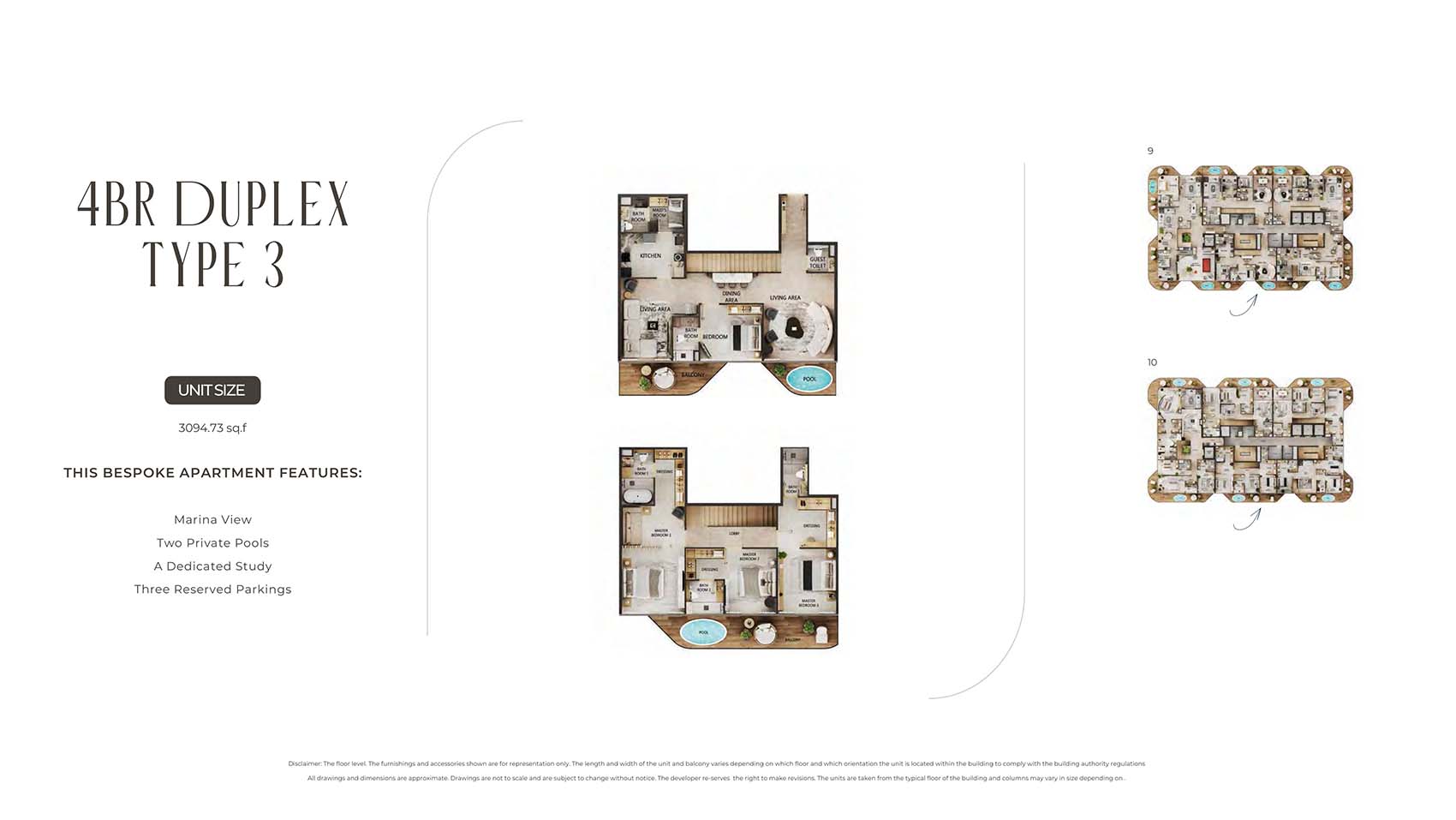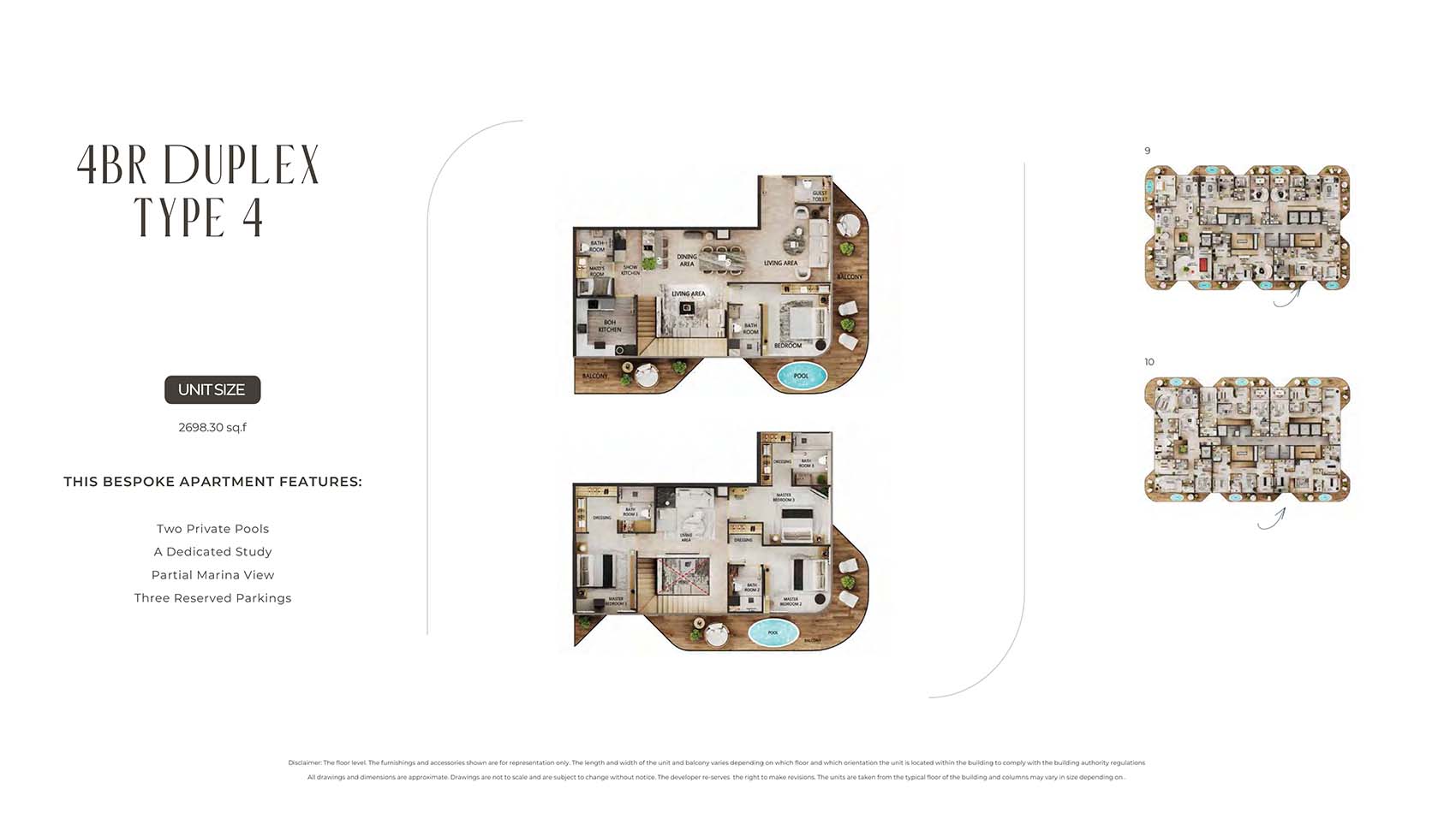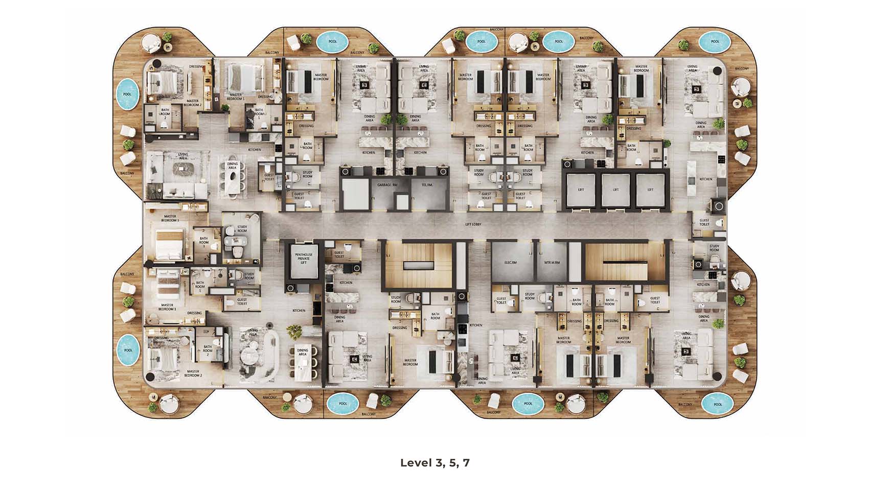 The floor plan of Arya Residences is varied with sleek 1, 2 & 3-bedroom apartments and palatial 4 & 5-bedroom penthouses in the line-up, with each presented in its own unique sophistication and space clarity. Topping this are the five-bedroom penthouse with their sprawling sky high havens including their own sky pools, soaring ceilings, oversize terraces, and a complete wraparound view of marina and skyline. These properties have been the epitome of architectural masterpiece, which offers an unequalled living and luxury lifestyle.