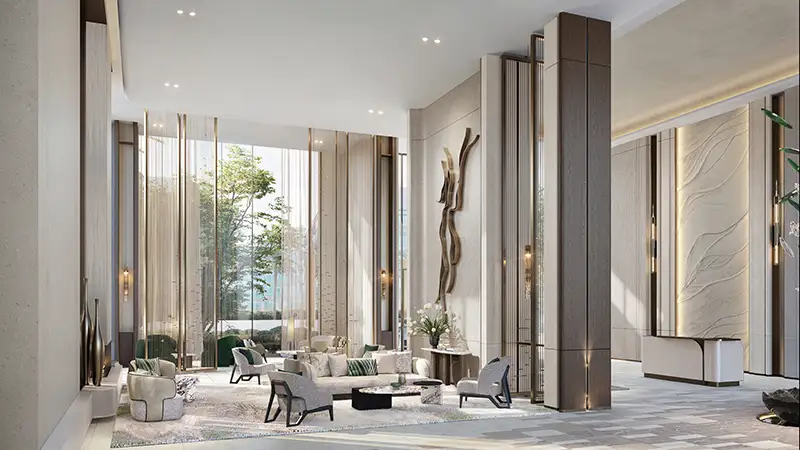 Carried out of a unique imagination, this sky-rising gem is designed by Studio Skidmore, Owings & Merrill. Inspired by the flexibility and beauty of a desert flower, this tower has been planned by The SOM, which is the team of architects who designed the global icon of Burj Khalifa. The facade reflects the evolving and contemporary bustle of the locality, while the curved balconies are an imitation of petals with a glass-made open facade to enhance their dynamic and organic form. Each unit is placed with an interactive open design that connects the residents to the canvas of the impressive surroundings.