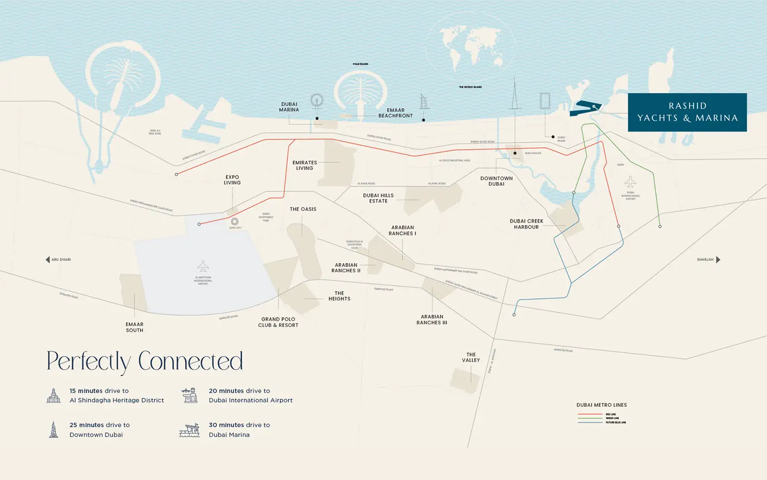 - Positioned at the Marina Promenade adorned with greenery, retail, shipping, and dining outlets with direct access to the wet berth of world-class Yacht Club