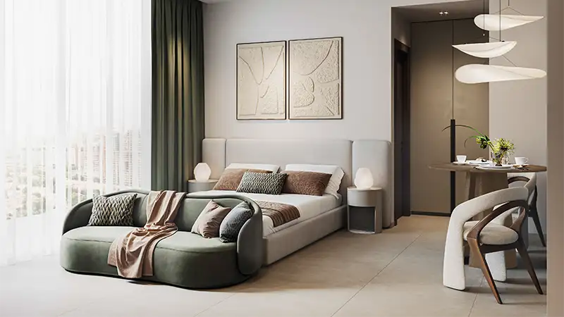 The premier class interiors of the façade tend into aspect of the palette beyond decoration, that mould mood and rhythm. Invigorating khaki and setting oranges inspiring mornings and energize afternoons as the soothing neutrals put areas on the evening grading levels. This is a façade that lively nature of Dubai Sports City without overwhelming the senses of completely, where the interior design concept is inspired by a wellness lifestyle. The lightning, temperature, music and home security applications are controlled by smart home system that are initiative, whereas the smart locks are key less with virtual key. With the mix of varied style apartments layouts, residents are free to choose as per their requirement – whether setting a new home, scaling living spaces or seeking a look and leave pied-a-terre that still feels richly appointed.