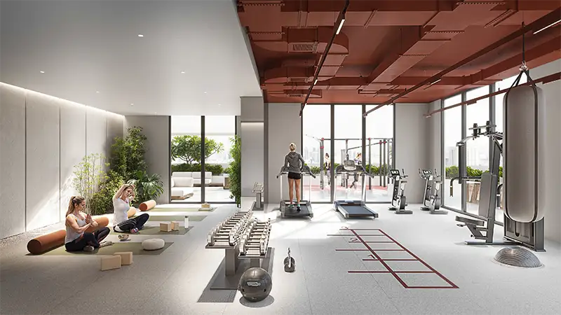 The development comes with complete amenities suite for families and individuals, carefully zoned and programmed to transform yourself into something meaningful. Strat with a graceful lobby that boarders the line when you enter the first step, head to the pool and the sun-loungers deck, where you enjoy relaxed afternoon, and kids have their own kids pool, indoor playroom and outdoor playground. Wellness is not included but as designed into the façade, through a complete gymnasium, running track, yoga and meditation lawns, and outdoor CrossFit area whose activities beckon you to sweat, refocus and thus repeat for greater result. Even more out of ordinary practices are elevated, be it a good time in the sauna or quiet evening in the BBQ lounge outdoor in the open air.