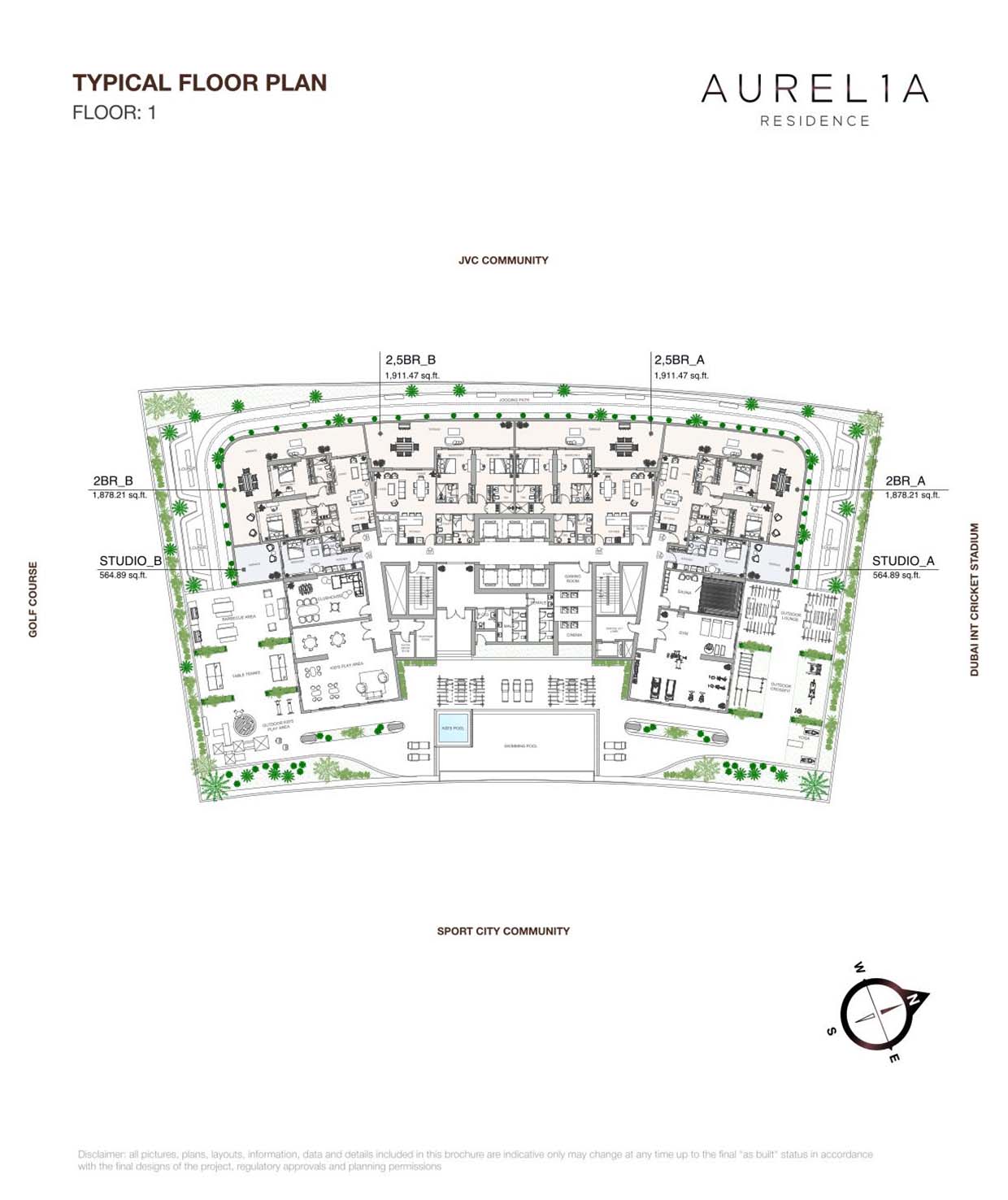 Aurel1a Residence at Dubai Sports City is a premier residential development by the renowned Object 1 Developments lined with studios, 1, 2 & 3-bedroom apartments. The high-rise development circle targets people that enjoy meaningful days and quiet evenings. The towering recognizable structure in the skyline directs the face of sun rays in all directions and generates an environment that is both contemporary and classical. One notices the nature of this building in the moment of the entrance: active but calm, energetic but relaxing. Restructuring premium and luxury apartments arranged to the vibrant urban lifestyle for an active life, where energy collides with comfort. The façade is designed in a way offering all amenities of the lifestyle with the modern style giving a community of a stylish and motivating atmosphere.