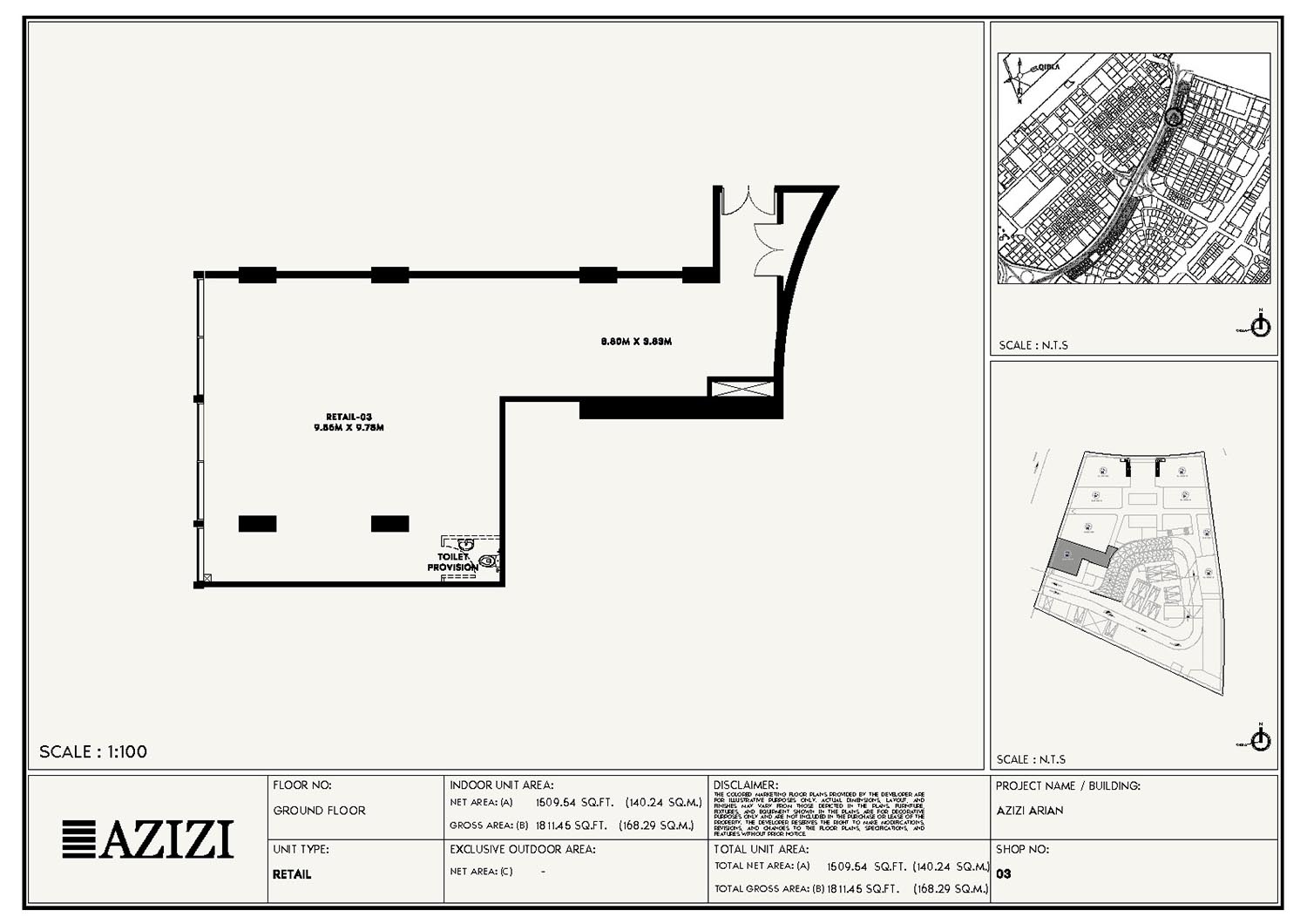 | Ground Floor | Unit Plan | Shop No 03 (Retail) | 1811.45 Sq Ft | Retail Space |