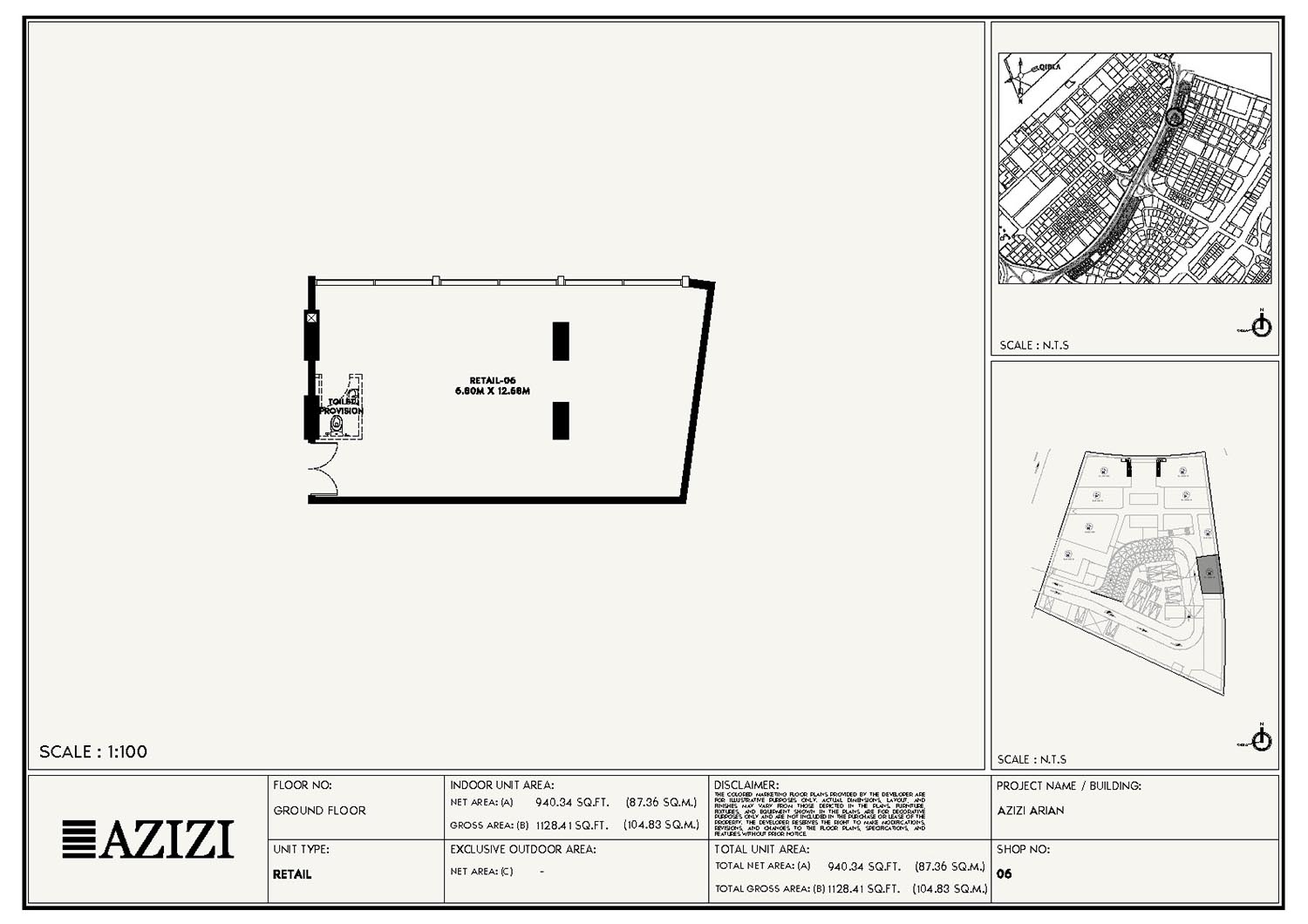 | Ground Floor | Unit Plan | Shop No 06 (Retail) | 1128.41 Sq Ft | Retail Space |