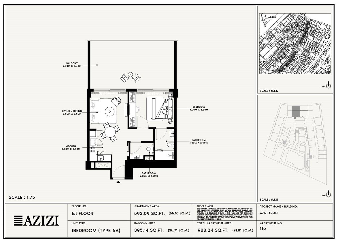 | 1st Floor | 1 Bedroom | Unit 115 (Type 6A) | 988.24 Sq Ft | Apartment |