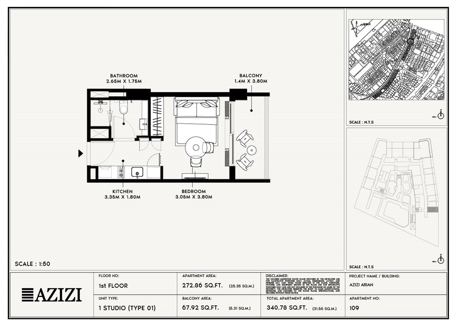 | 1st Floor | Studio | Unit 109 (Type 01) | 340.78 Sq Ft | Apartment |