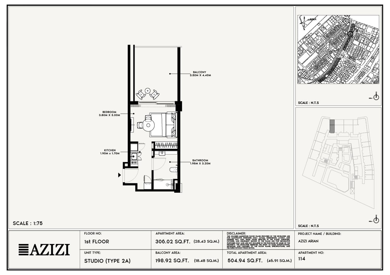 | 1st Floor | Studio | Unit 114 (Type 2A) | 504.94 Sq Ft | Apartment |