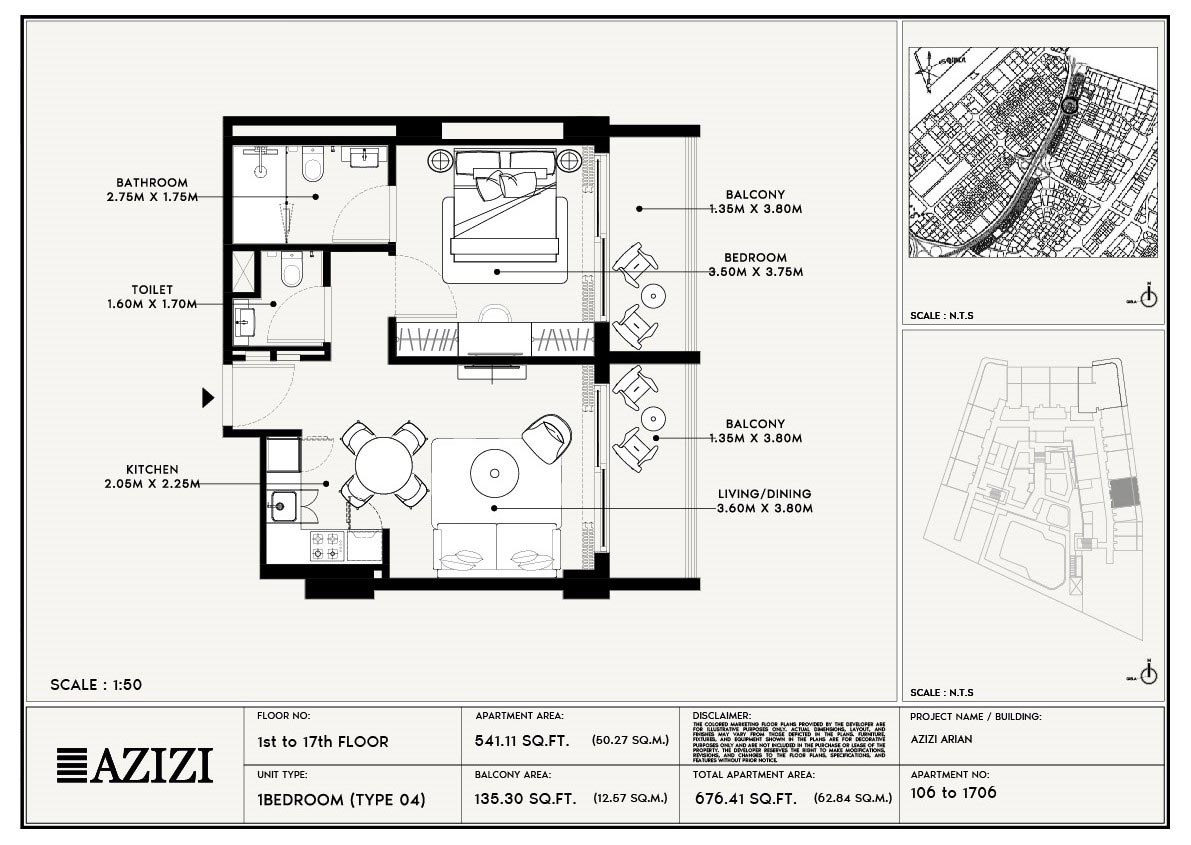 | 1st To 17th Floor | 1 Bedroom | Unit 106 To 1706 (Type 04) | 676.41 Sq Ft | Apartment |