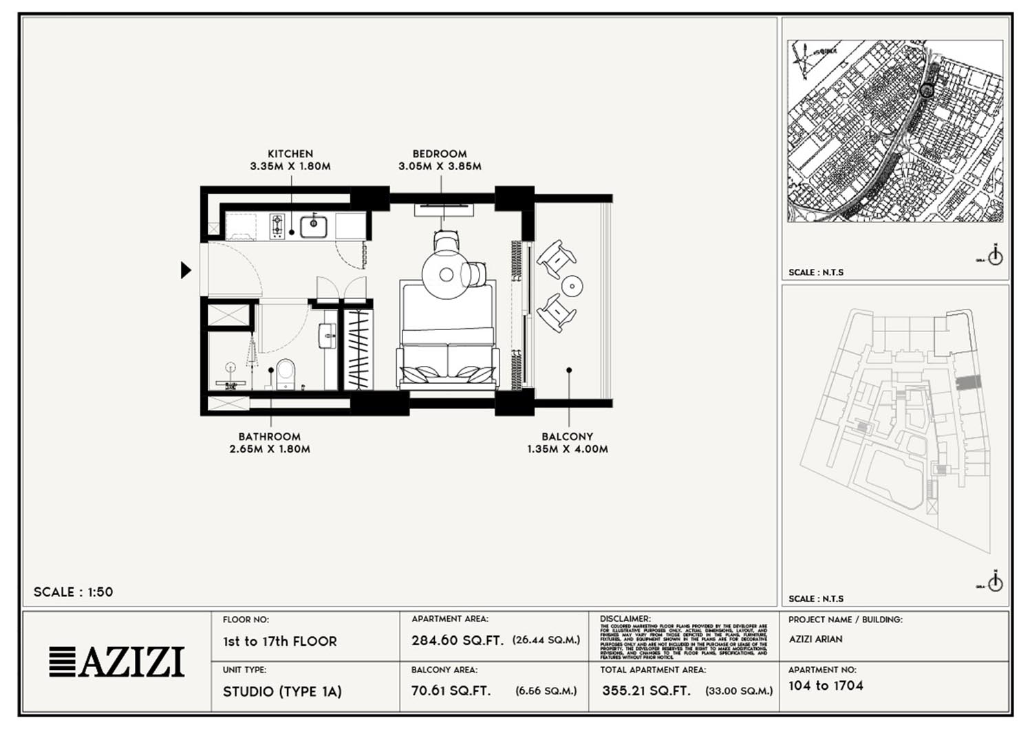 | 1st To 17th Floor | Studio | Unit 104 To 1704 (Type 1A) | 355.21 Sq Ft | Apartment |