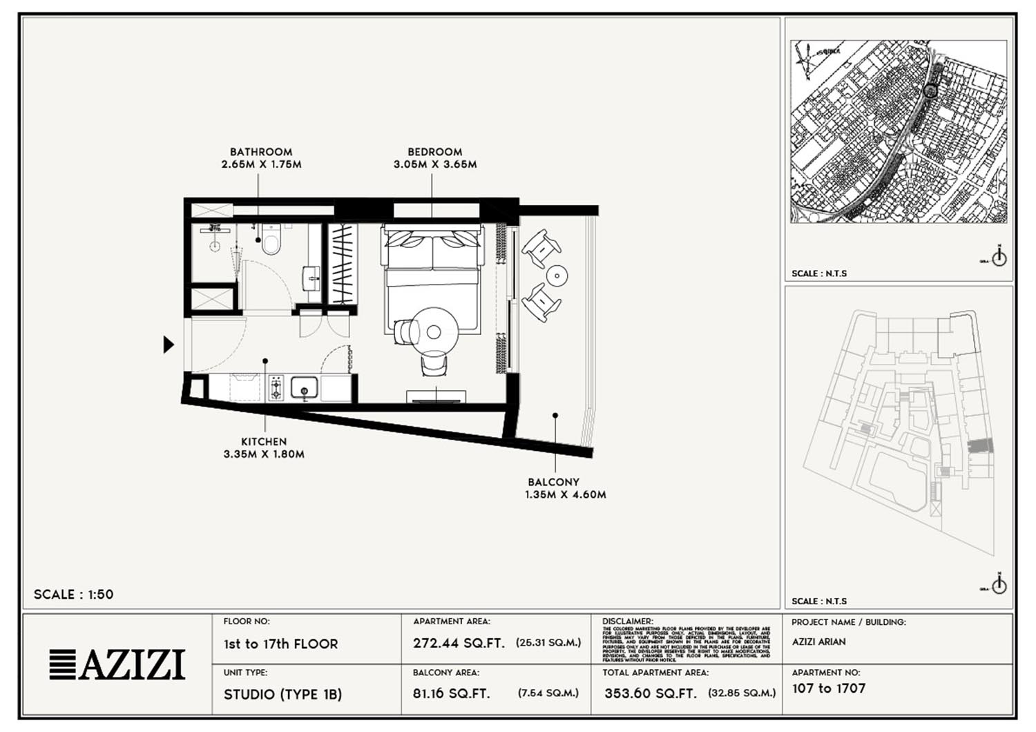 | 1st To 17th Floor | Studio | Unit 107 To 1707 (Type 1B) | 353.60 Sq Ft | Apartment |