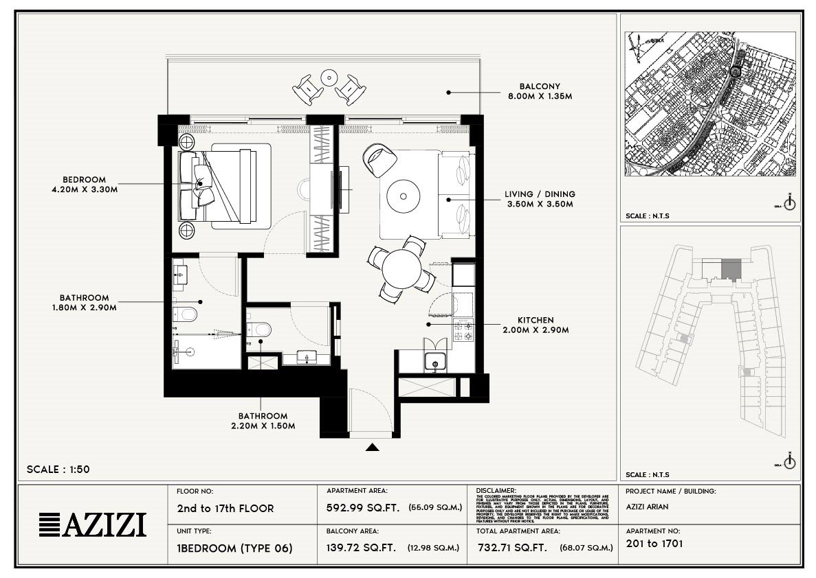 | 2nd To 17th Floor | 1 Bedroom | Unit 201 To 1701 (Type 06) | 732.71 Sq Ft | Apartment |