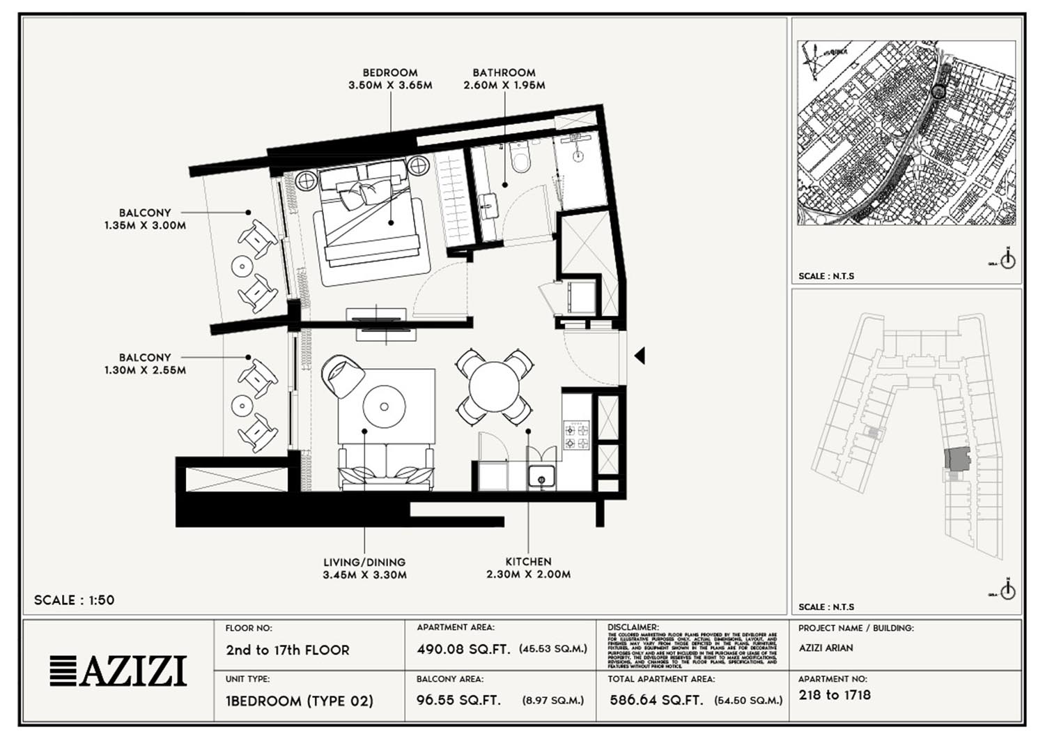 | 2nd To 17th Floor | 1 Bedroom | Unit 218 To 1718 (Type 02) | 586.64 Sq Ft | Apartment |