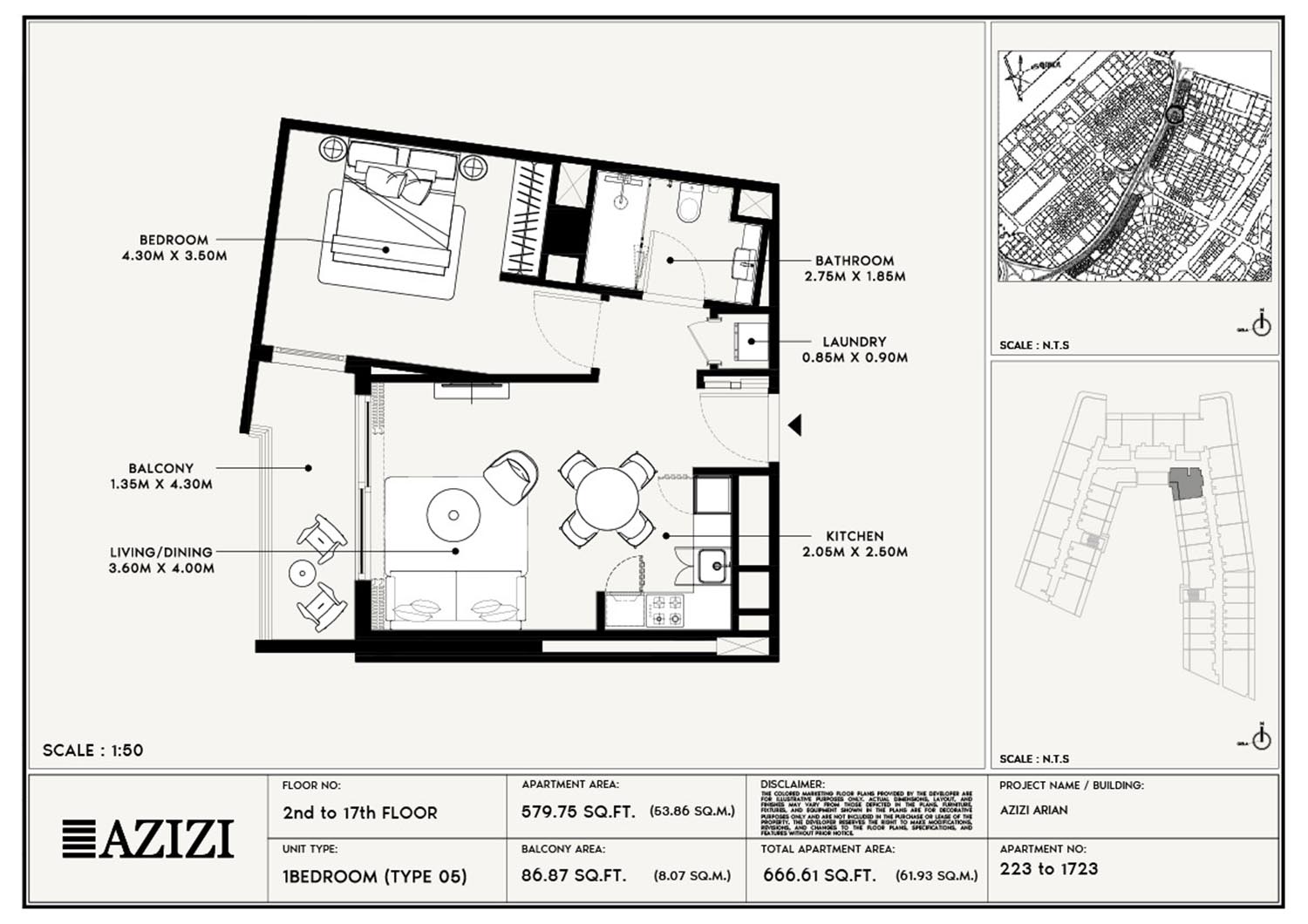 | 2nd To 17th Floor | 1 Bedroom | Unit 223 To 1723 (Type 05) | 666.61 Sq Ft | Apartment |
