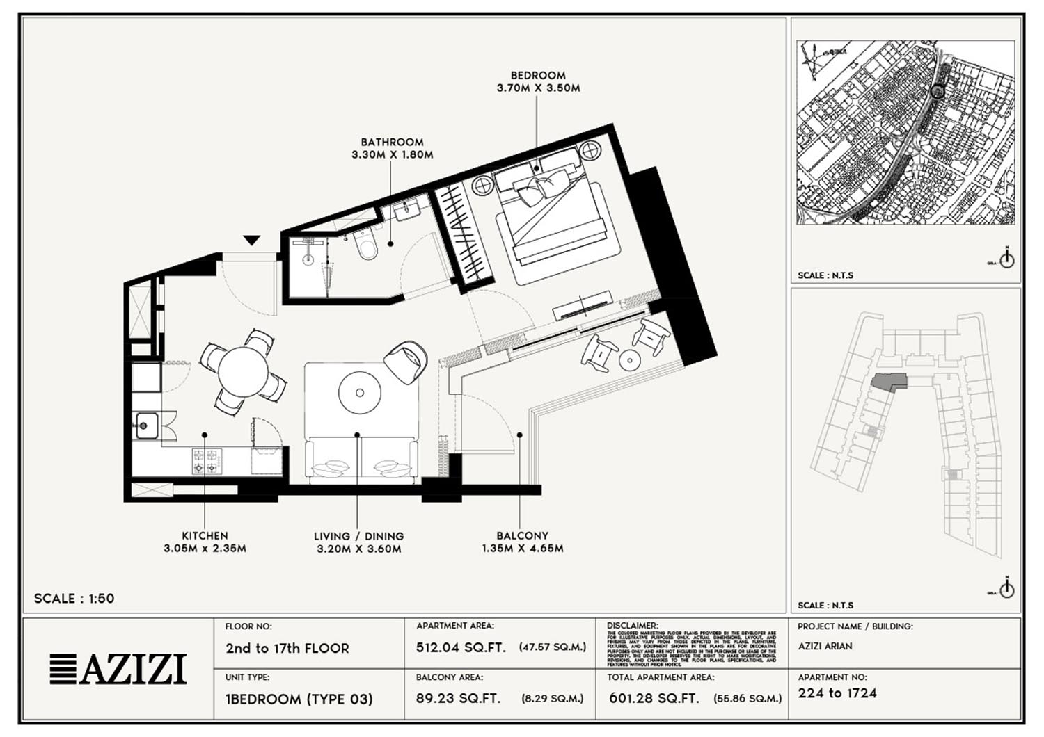 | 2nd To 17th Floor | 1 Bedroom | Unit 224 To 1724 (Type 03) | 601.28 Sq Ft | Apartment |