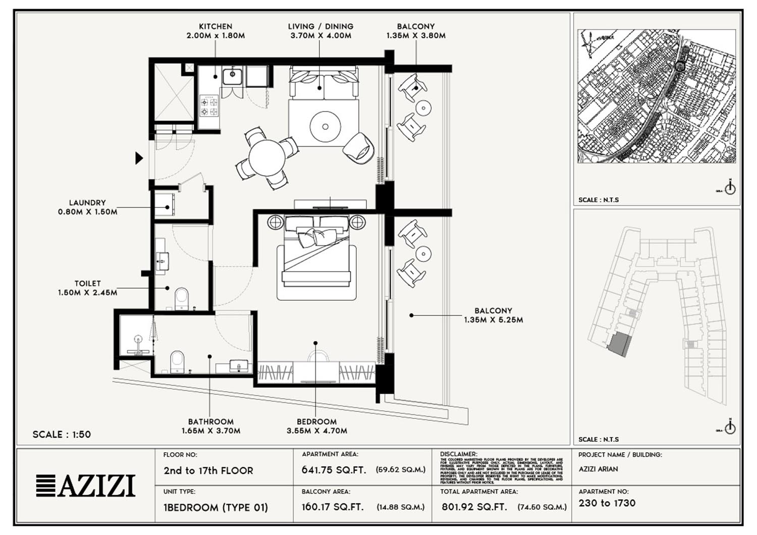 | 2nd To 17th Floor | 1 Bedroom | Unit 230 To 1730 (Type 01) | 801.92 Sq Ft | Apartment |