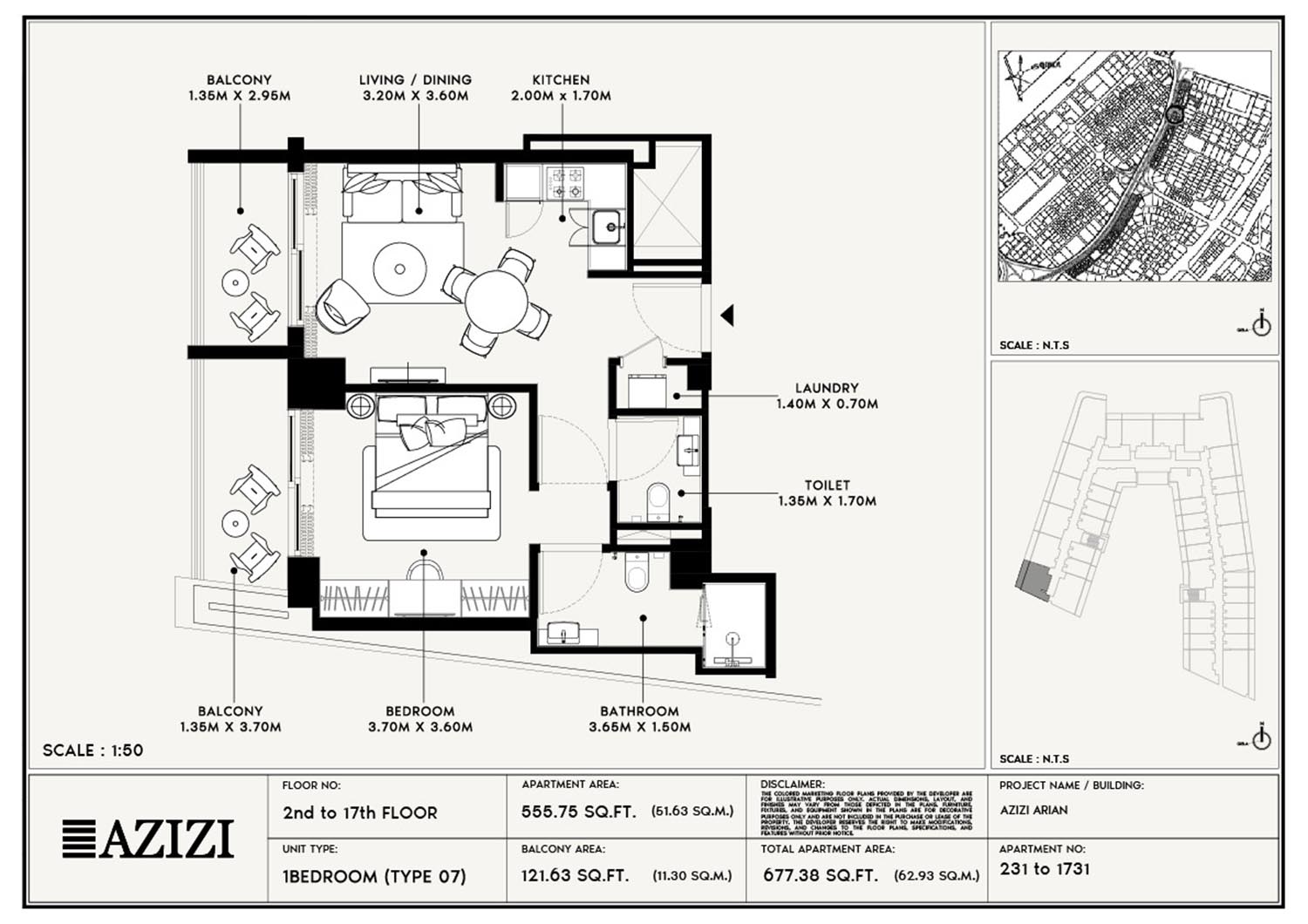| 2nd To 17th Floor | 1 Bedroom | Unit 231 To 1731 (Type 07) | 677.38 Sq Ft | Apartment |