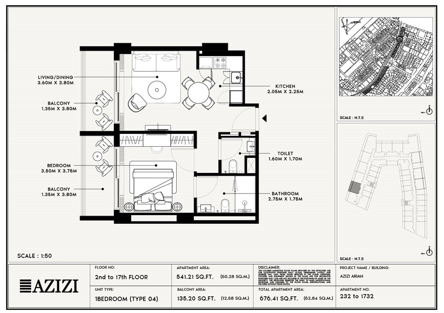 | 2nd To 17th Floor | 1 Bedroom | Unit 232 To 1732 (Type 04) | 676.41 Sq Ft | Apartment |