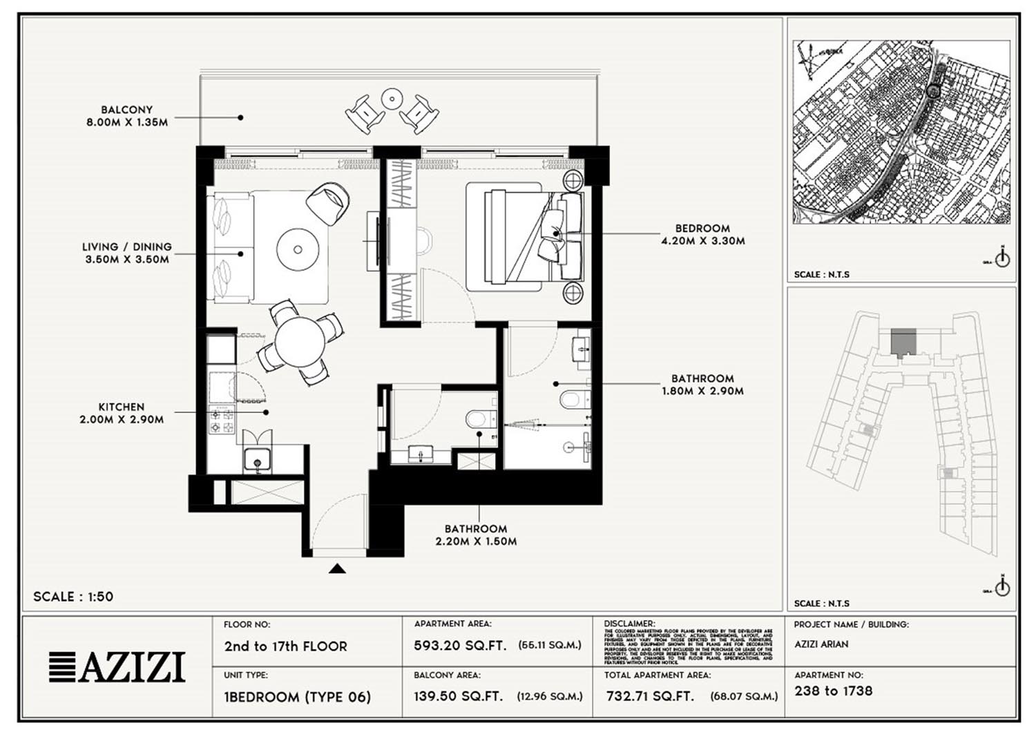 | 2nd To 17th Floor | 1 Bedroom | Unit 238 To 1738 (Type 06) | 732.71 Sq Ft | Apartment |