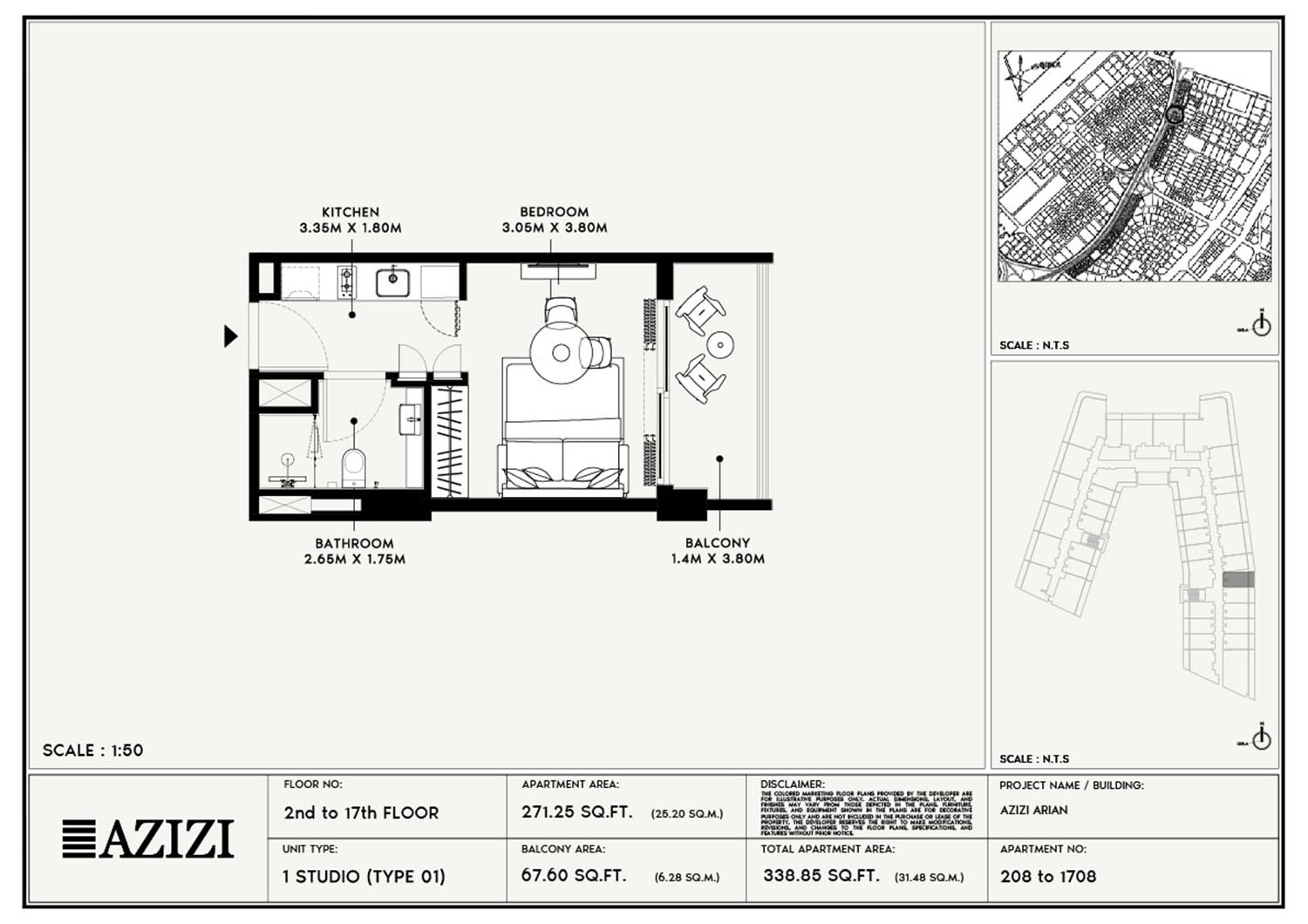 | 2nd To 17th Floor | Studio | Unit 208 To 1708 (Type 01) | 338.85 Sq Ft | Apartment |