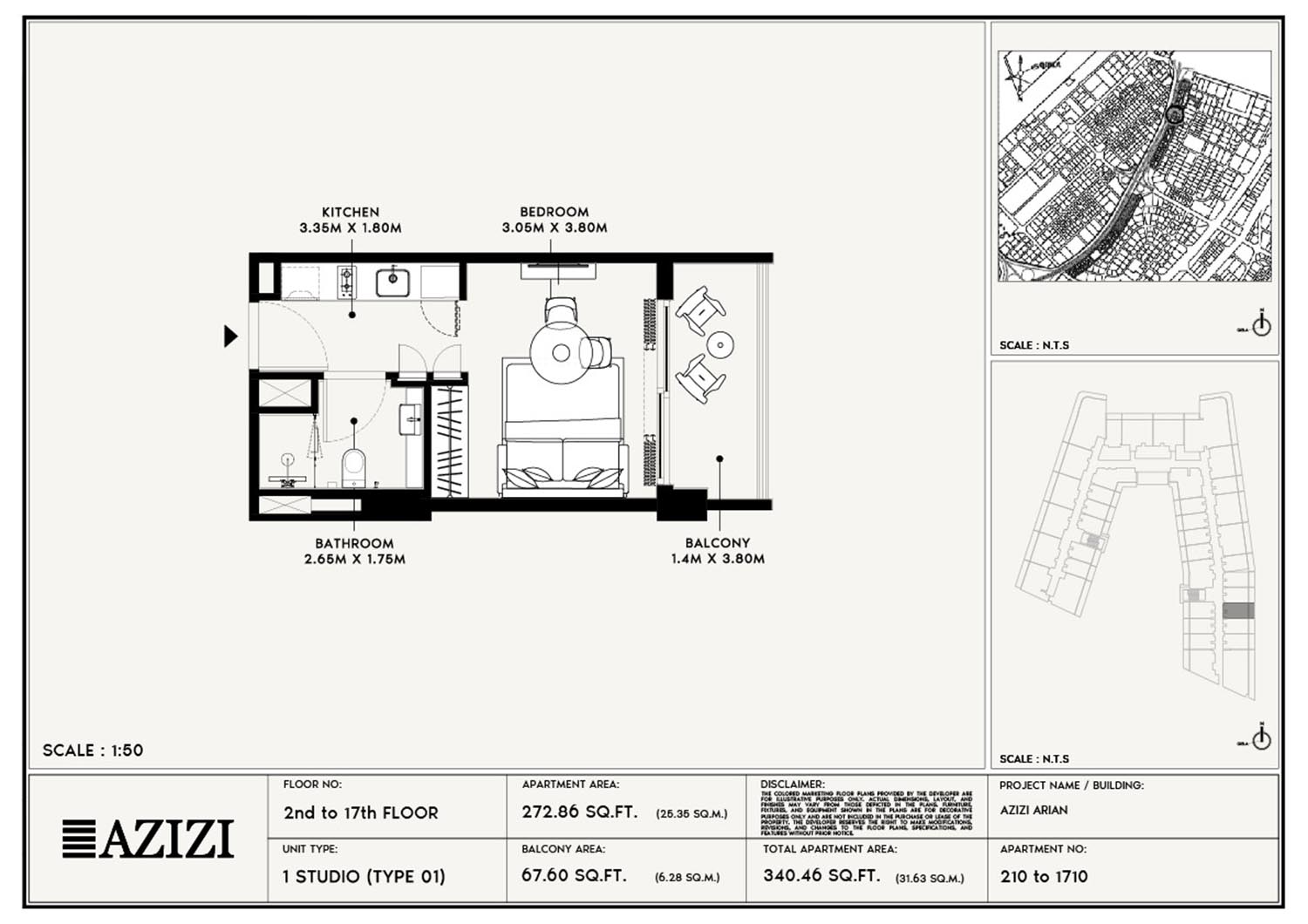| 2nd To 17th Floor | Studio | Unit 225 To 1725 (Type 01) | 340.46 Sq Ft | Apartment |
