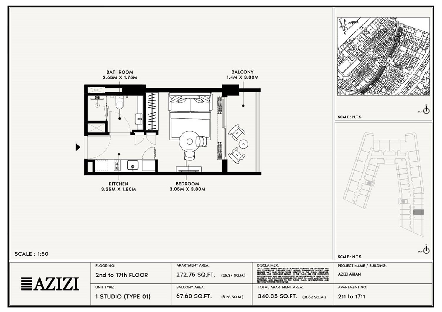 | 2nd To 17th Floor | Studio | Unit 211 To 1711 (Type 01) | 340.35 Sq Ft | Apartment |