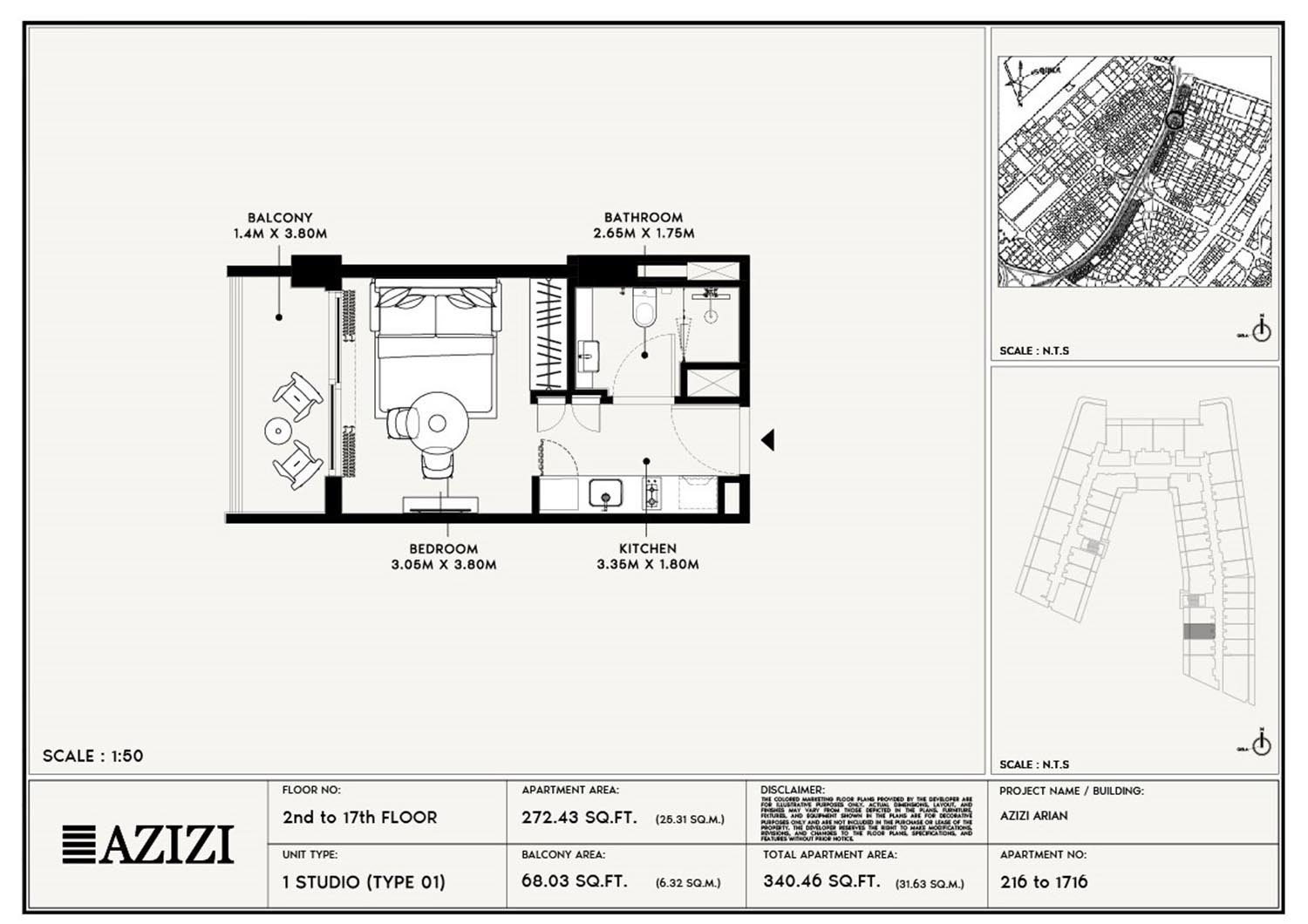 | 2nd To 17th Floor | Studio | Unit 216 To 1716 (Type 01) | 340.46 Sq Ft | Apartment |