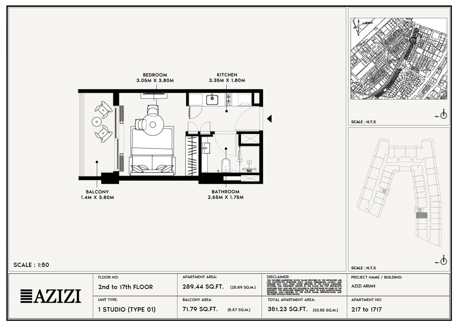 | 2nd To 17th Floor | Studio | Unit 217 To 1717 (Type 01) | 361.23 Sq Ft | Apartment |