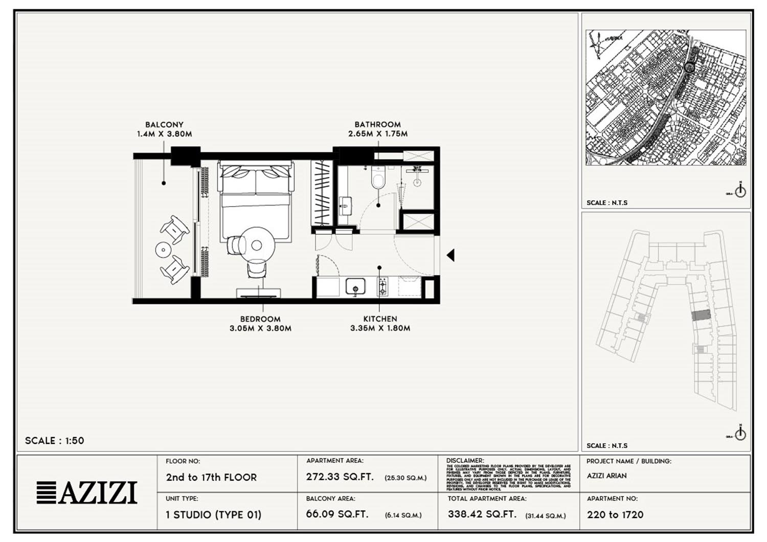 | 2nd To 17th Floor | Studio | Unit 220 To 1720 (Type 01) | 338.42 Sq Ft | Apartment |