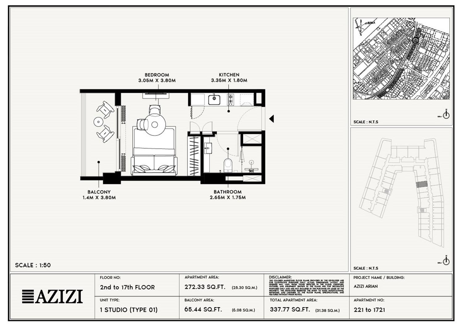 | 2nd To 17th Floor | Studio | Unit 221 To 1721 (Type 01) | 337.77 Sq Ft | Apartment |