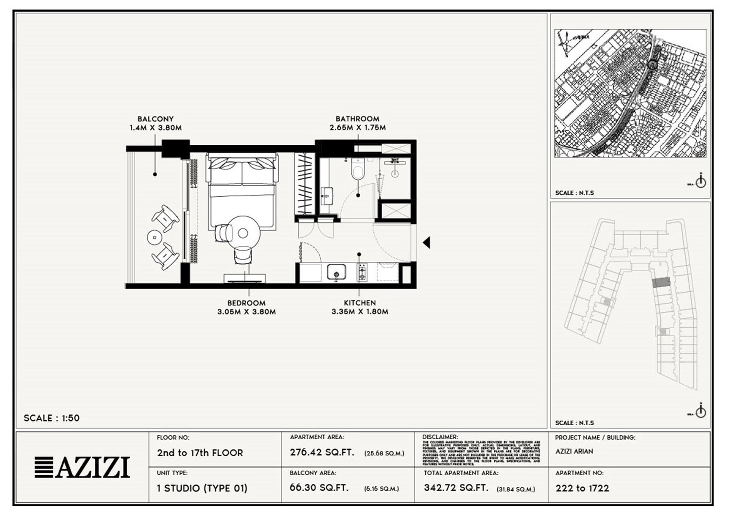 | 2nd To 17th Floor | Studio | Unit 222 To 1722 (Type 01) | 342.72 Sq Ft | Apartment |