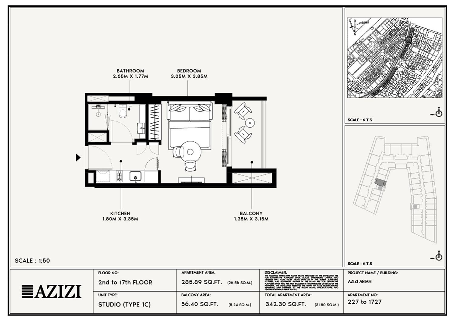| 2nd To 17th Floor | Studio | Unit 227 To 1727 (Type 1C) | 342.30 Sq Ft | Apartment |