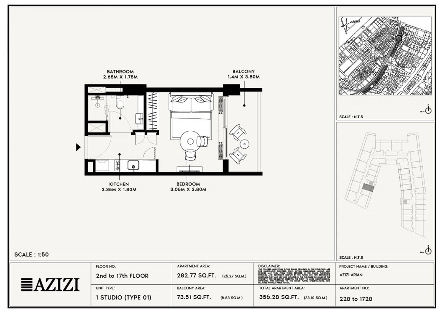 | 2nd To 17th Floor | Studio | Unit 228 To 1728 (Type 01) | 356.28 Sq Ft | Apartment |