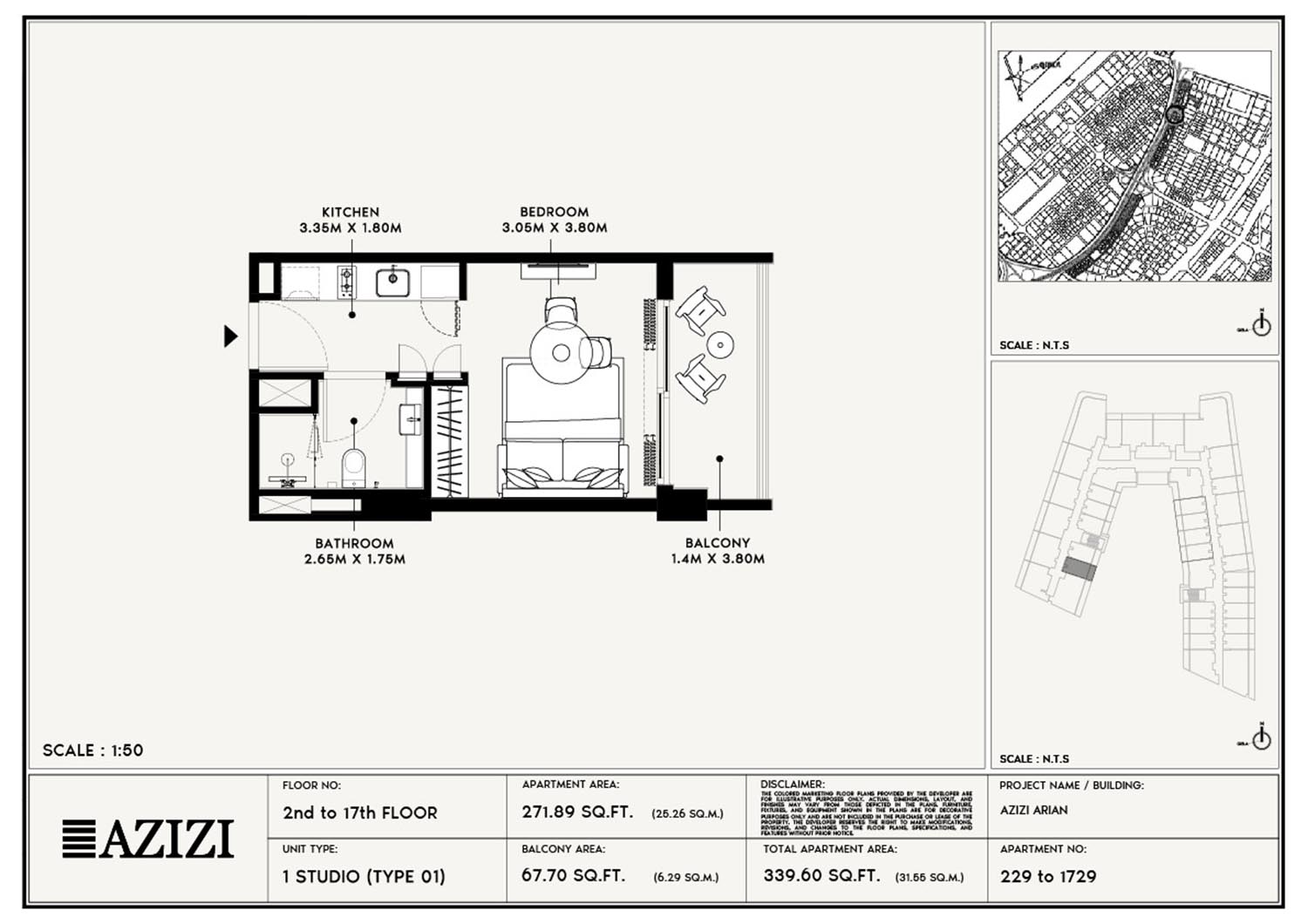 | 2nd To 17th Floor | Studio | Unit 229 To 1729 (Type 01) | 339.60 Sq Ft | Apartment |