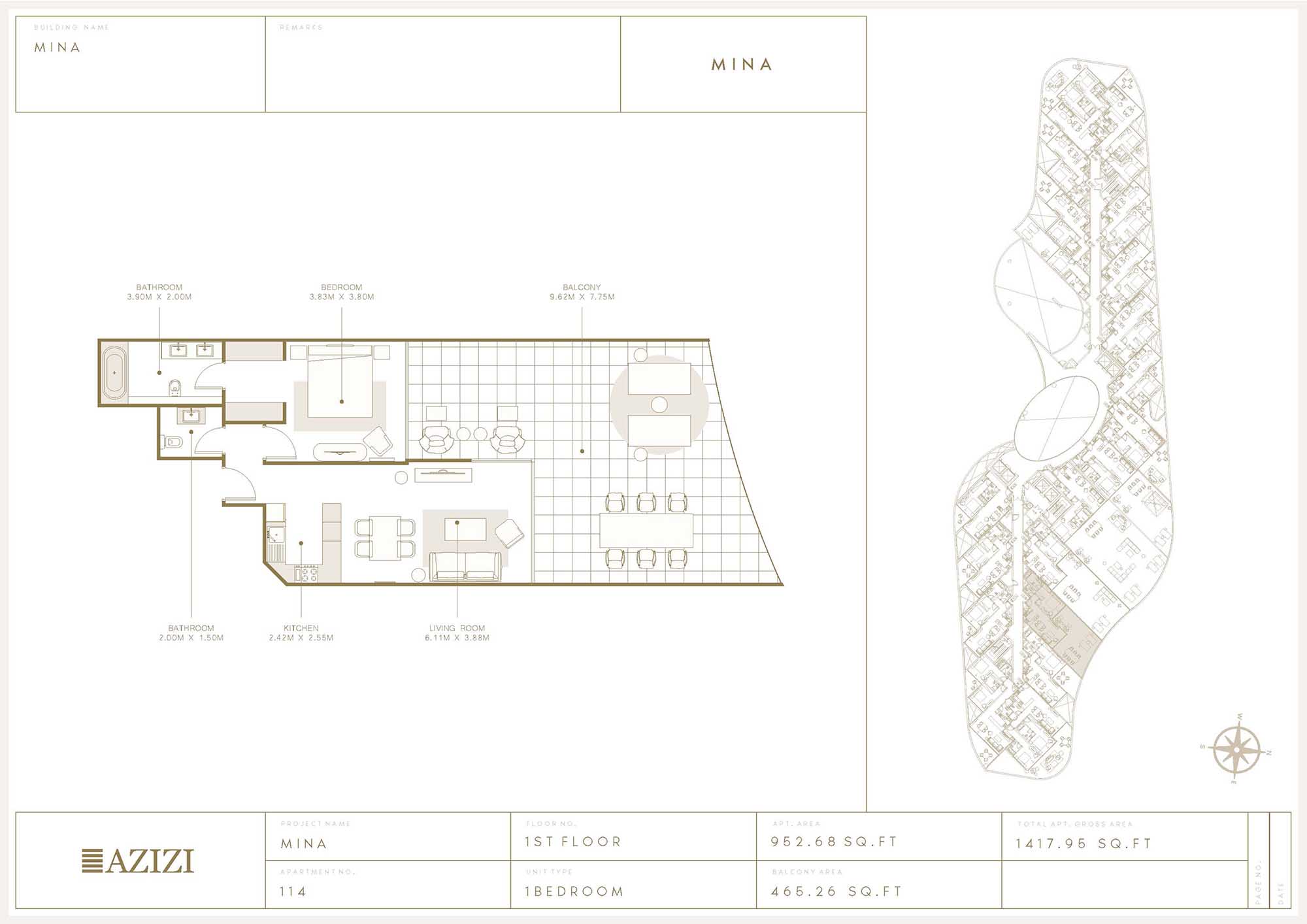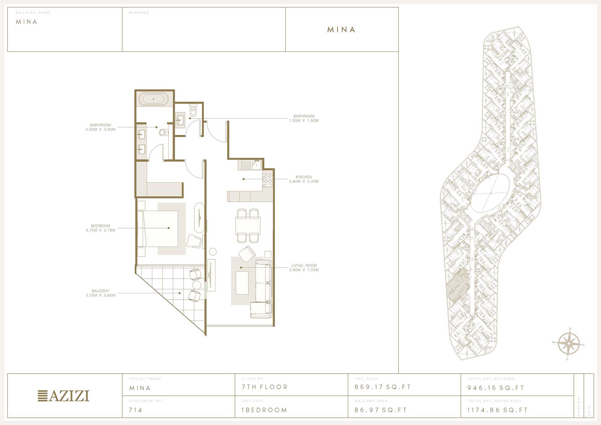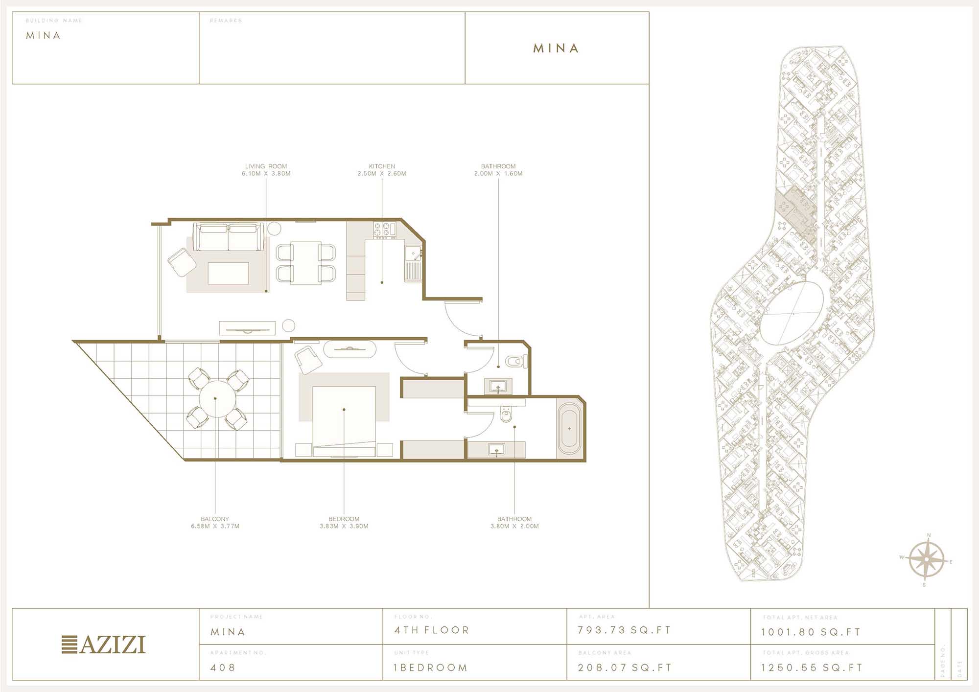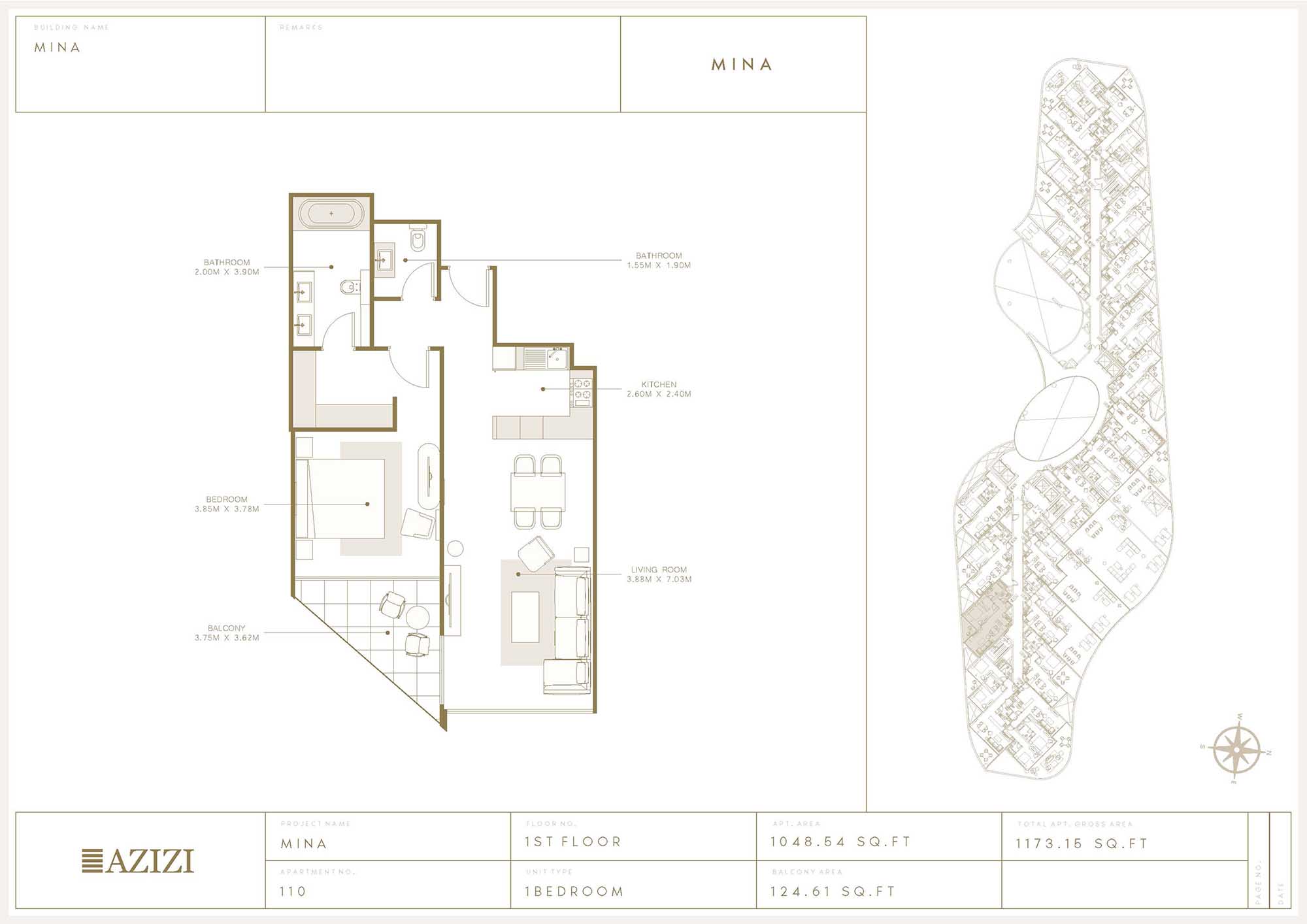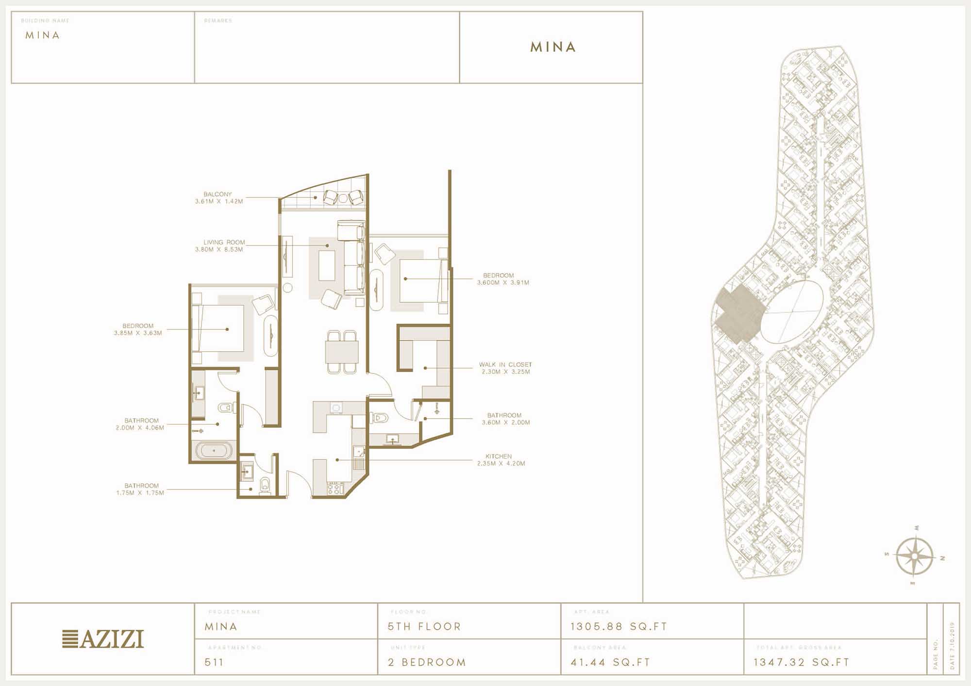 Azizi Mina provides spacious floor plan options offering waterfront designed 1 & 2-bedroom apartments and penthouses located in the serene community of the Palm Jumeirah. The development offers a total no of 178 elegant designed waterfront homes that further offers 120 one-bedroom, and 54 two-bedroom apartments along with four penthouses that are spread over an area of the total gross area of more than 2.3 hectares. While at the same time offers stunning views of the sea, deluxe amenities and interiors in a perfect backdrop of nature and style.