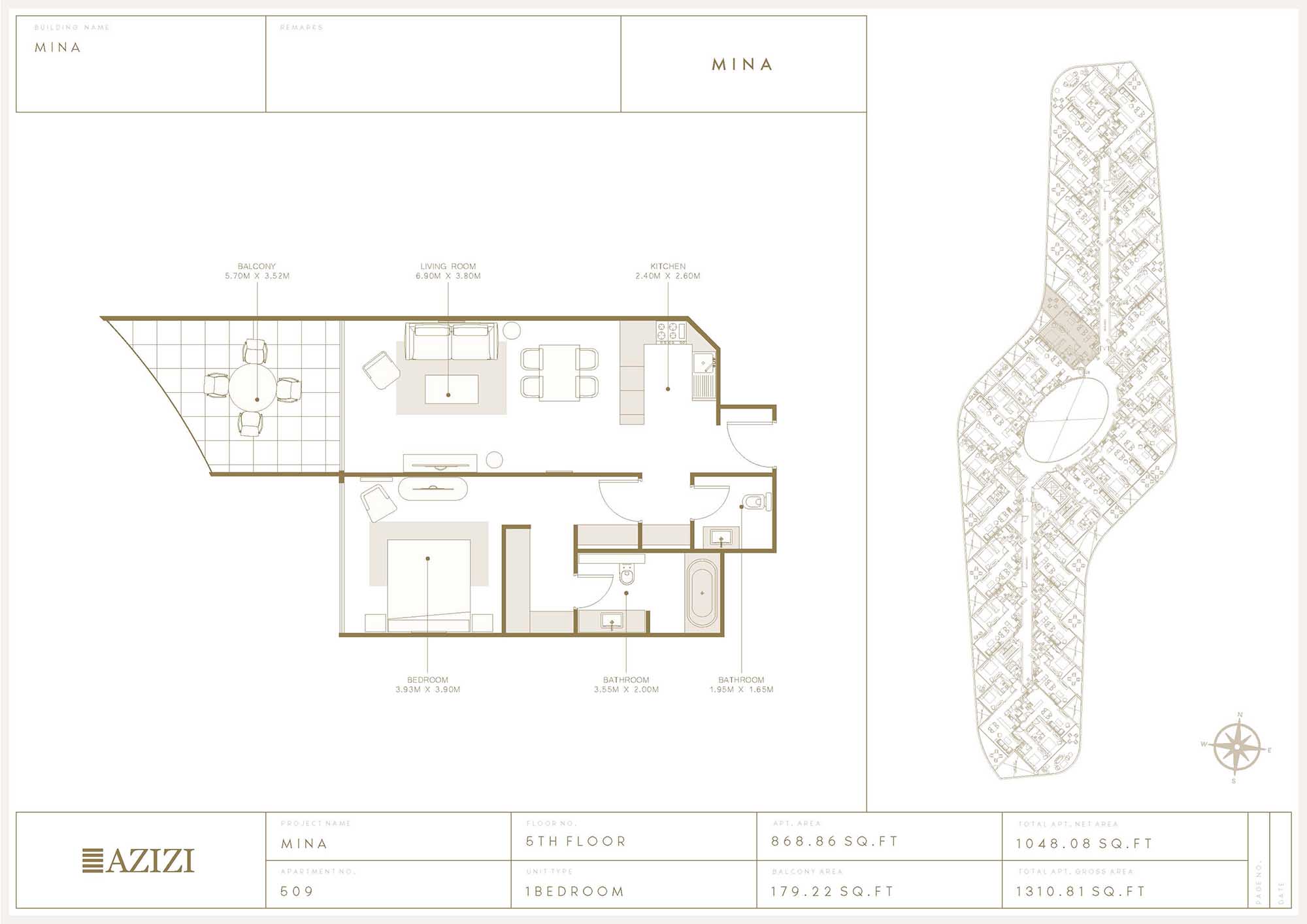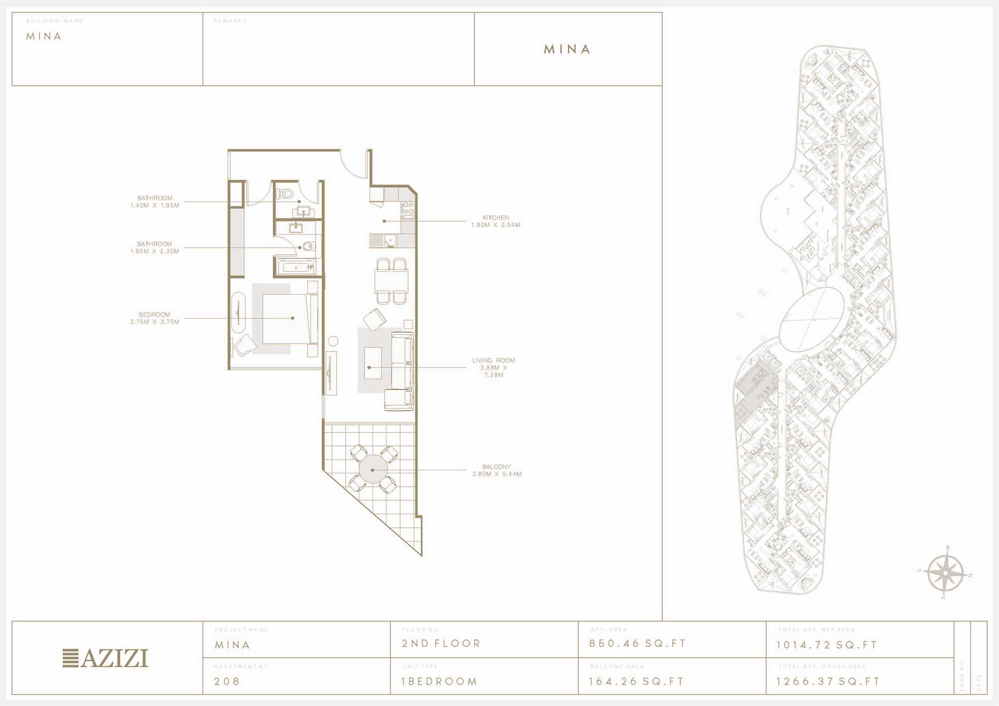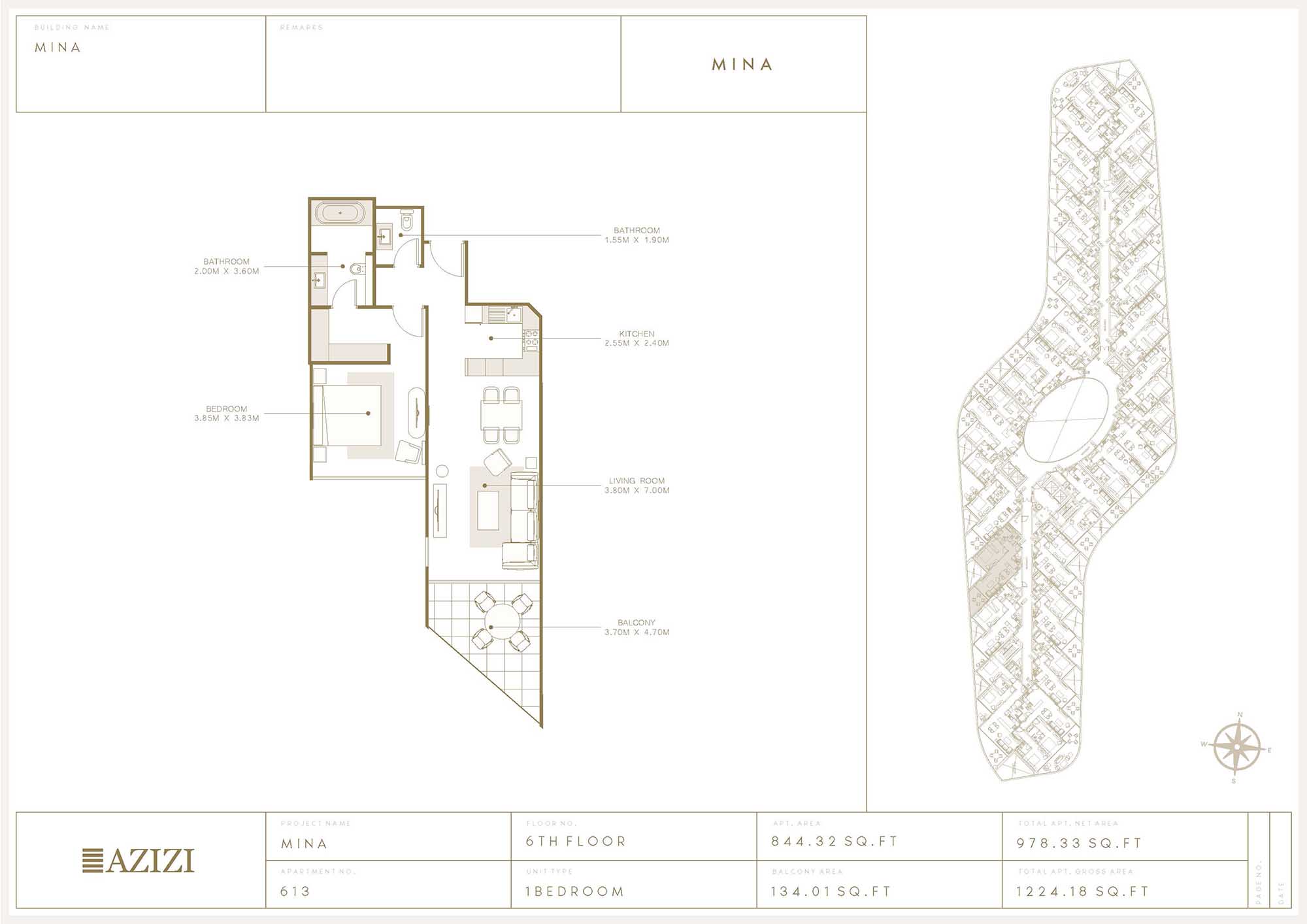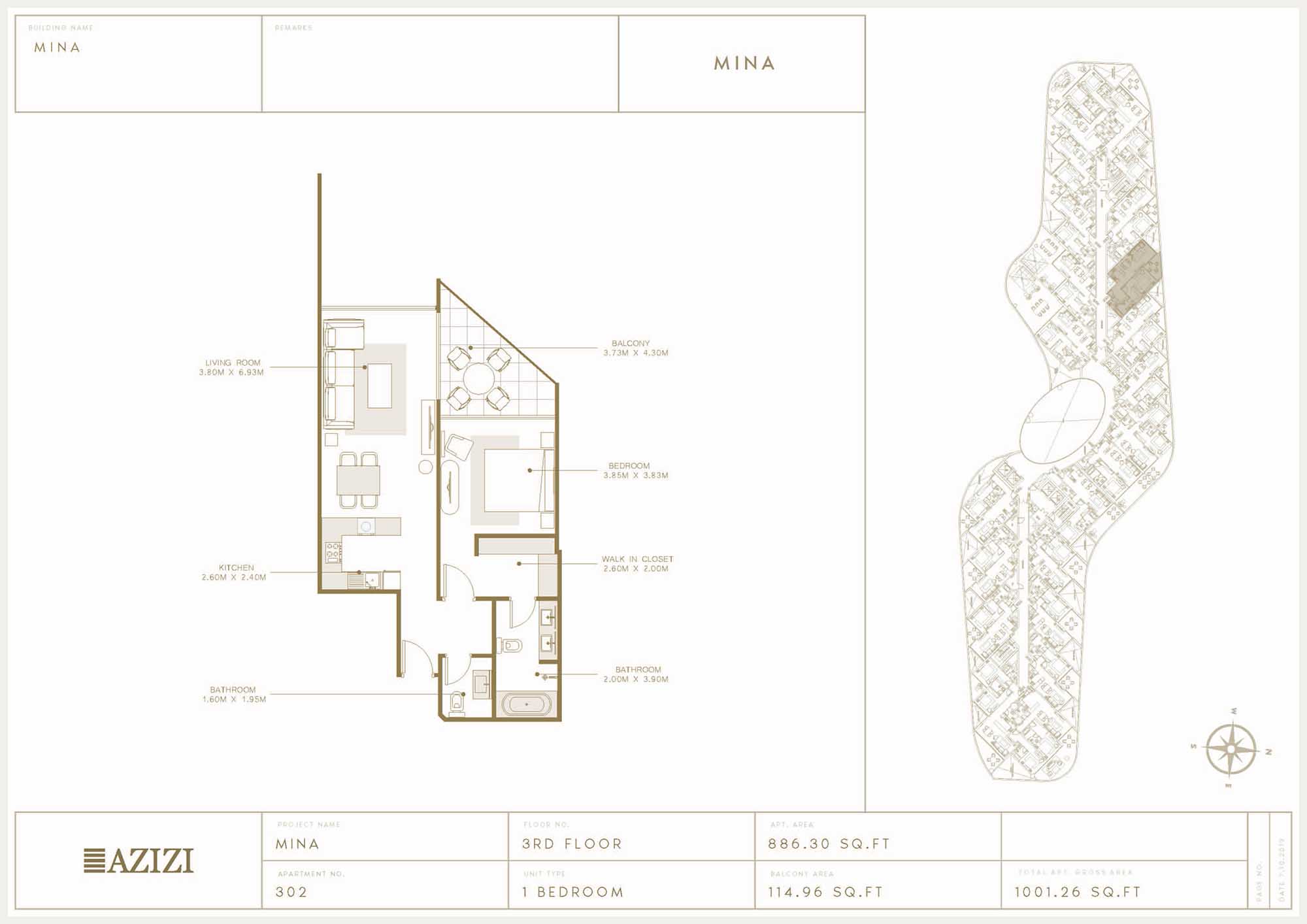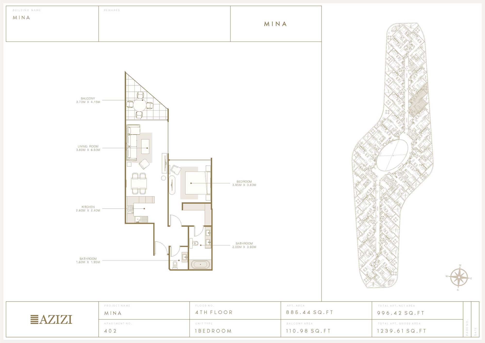 Azizi Mina provides spacious floor plan options offering waterfront designed 1 & 2-bedroom apartments and penthouses located in the serene community of the Palm Jumeirah. The development offers a total no of 178 elegant designed waterfront homes that further offers 120 one-bedroom, and 54 two-bedroom apartments along with four penthouses that are spread over an area of the total gross area of more than 2.3 hectares. While at the same time offers stunning views of the sea, deluxe amenities and interiors in a perfect backdrop of nature and style.