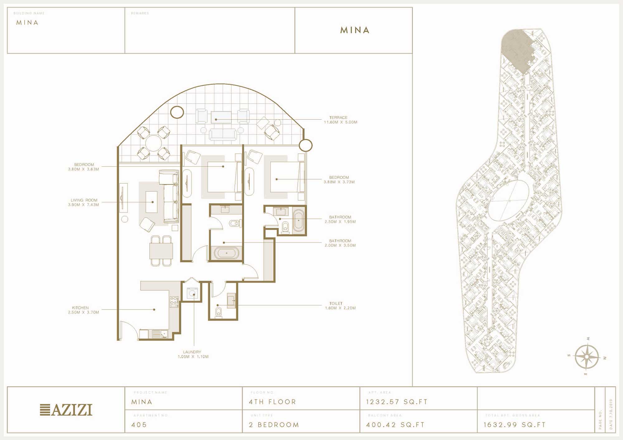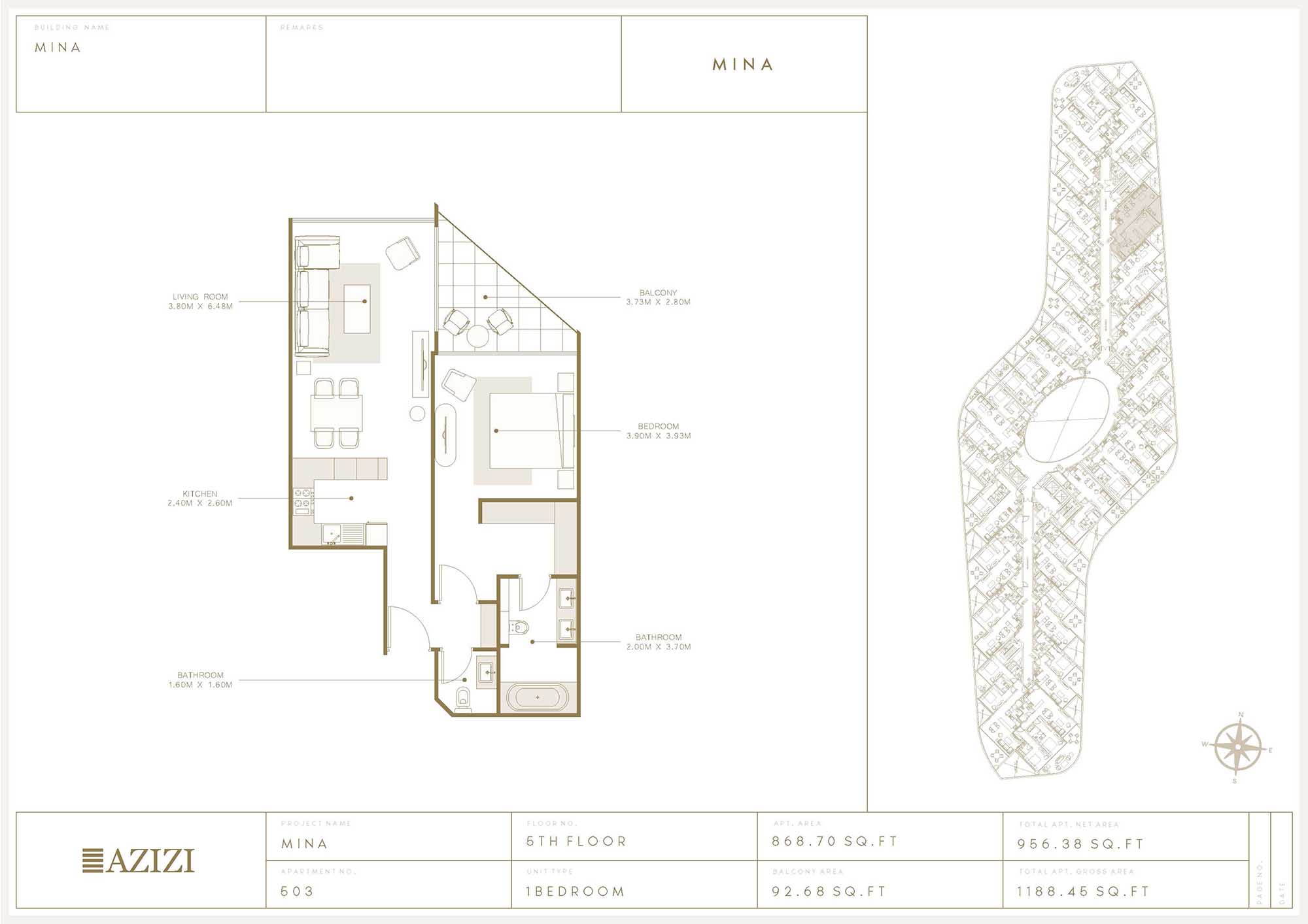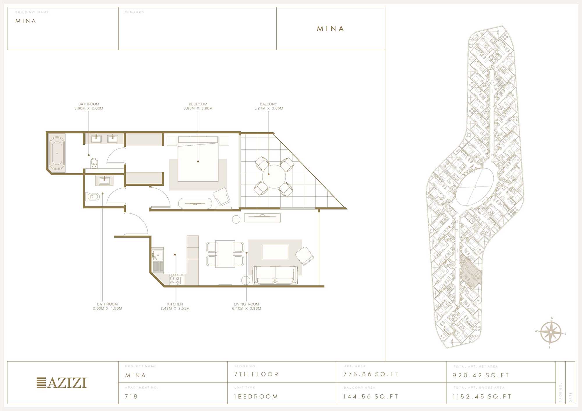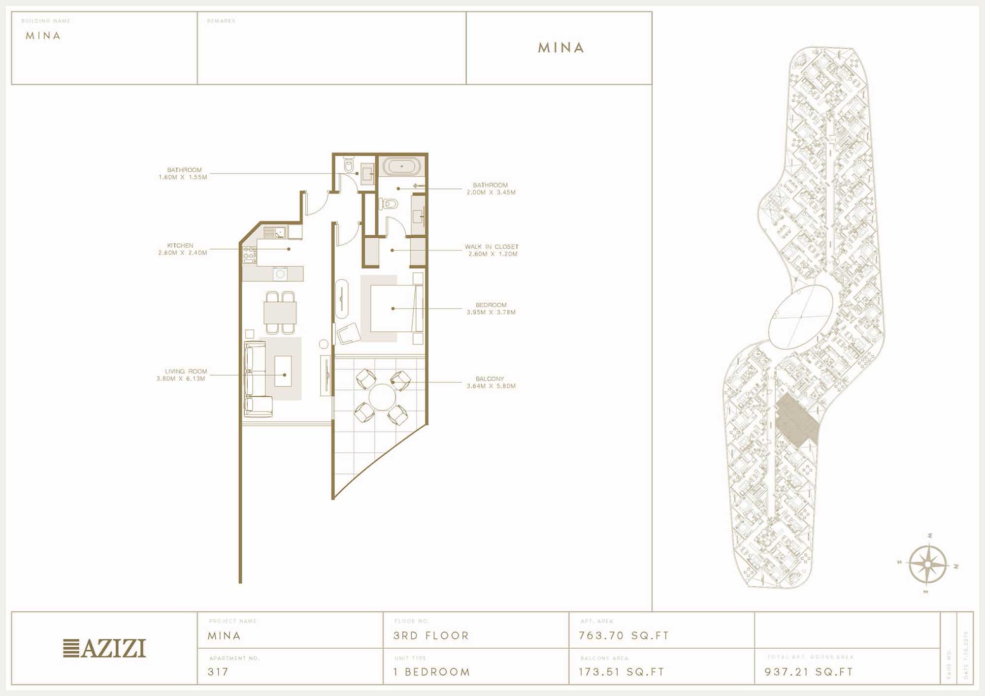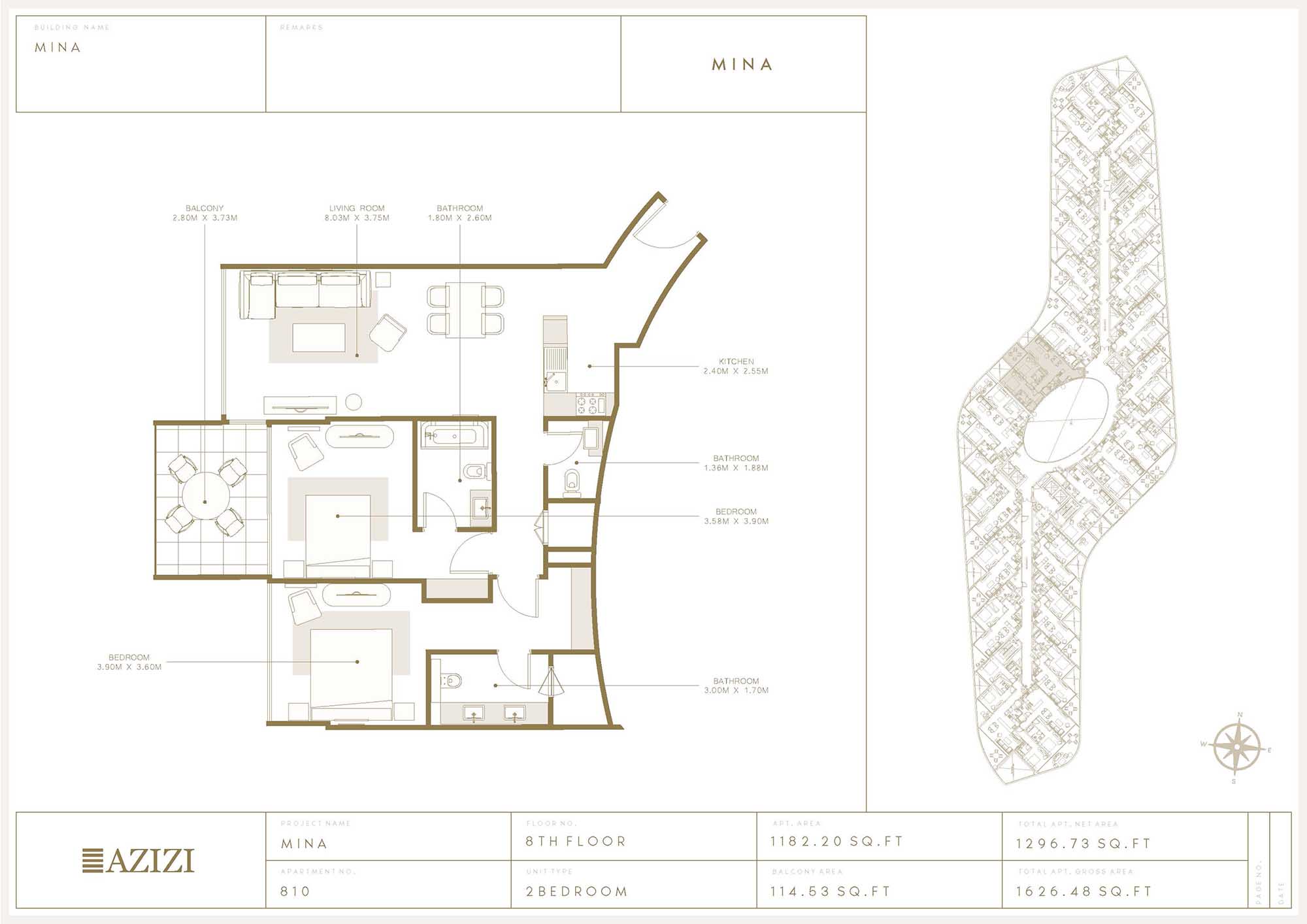 Azizi Mina provides spacious floor plan options offering waterfront designed 1 & 2-bedroom apartments and penthouses located in the serene community of the Palm Jumeirah. The development offers a total no of 178 elegant designed waterfront homes that further offers 120 one-bedroom, and 54 two-bedroom apartments along with four penthouses that are spread over an area of the total gross area of more than 2.3 hectares. While at the same time offers stunning views of the sea, deluxe amenities and interiors in a perfect backdrop of nature and style.