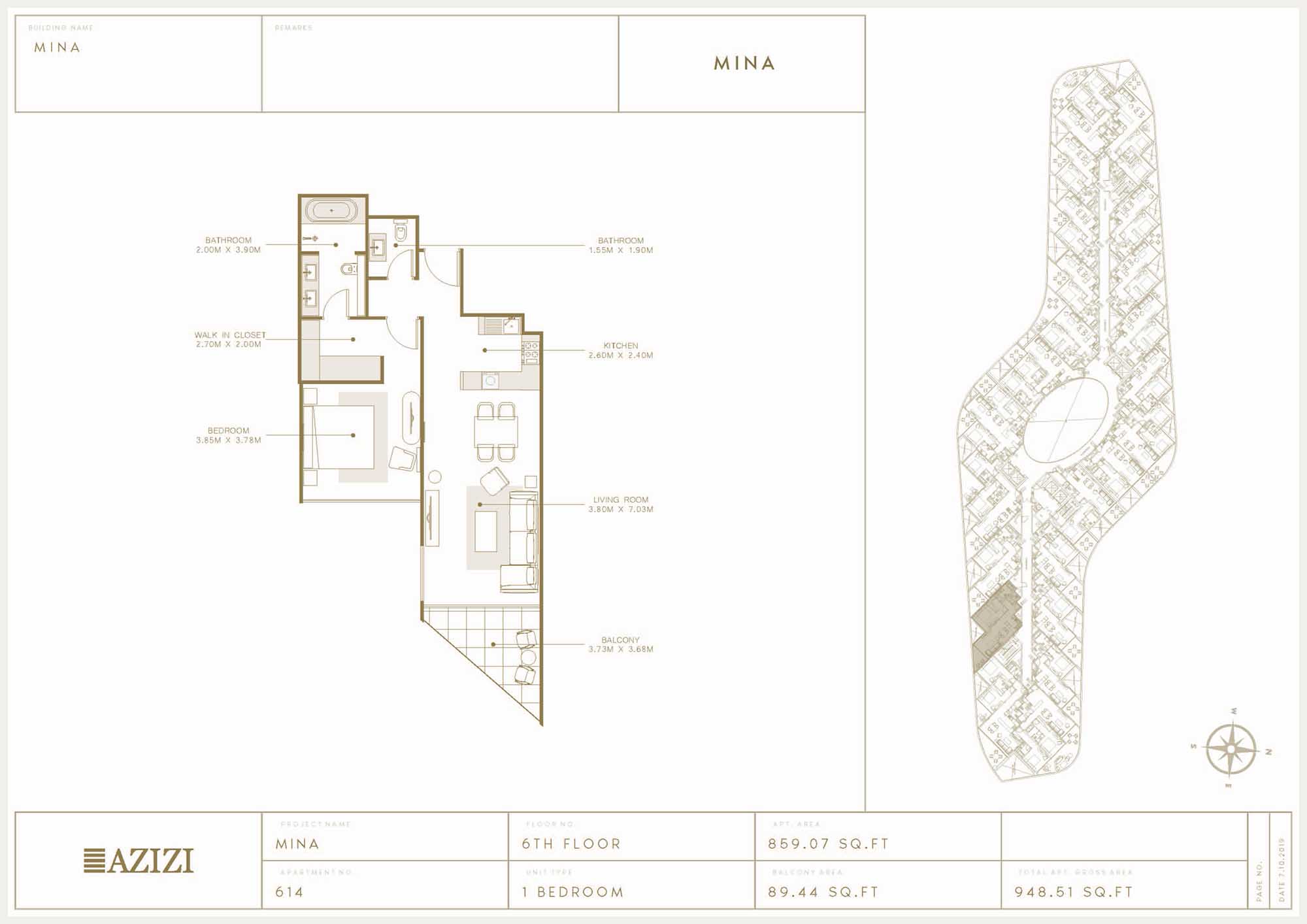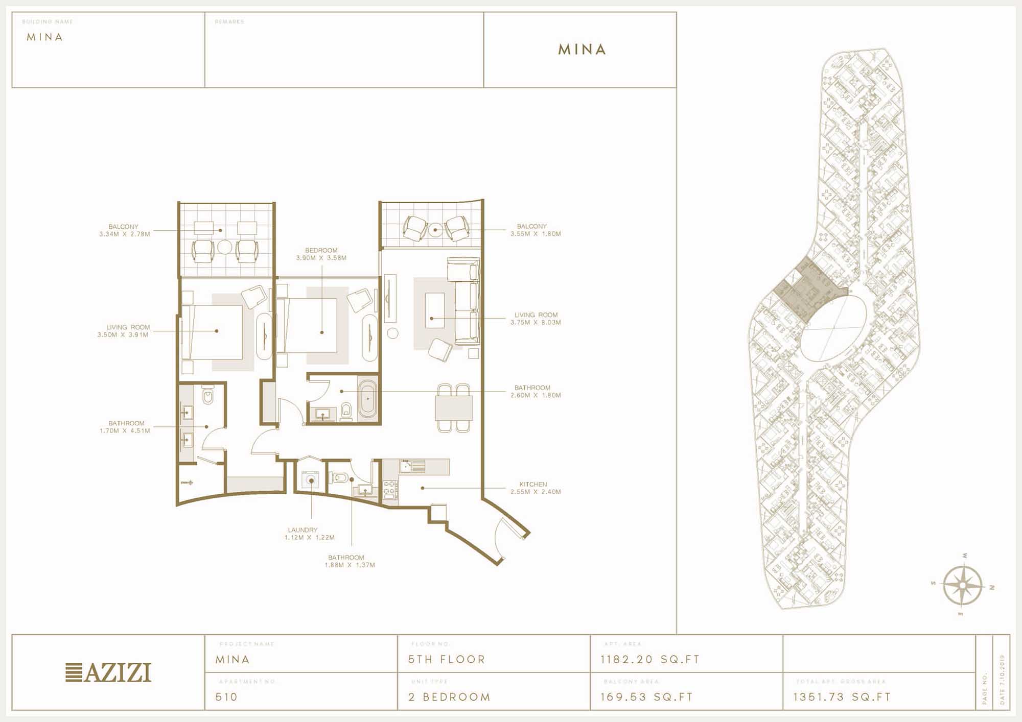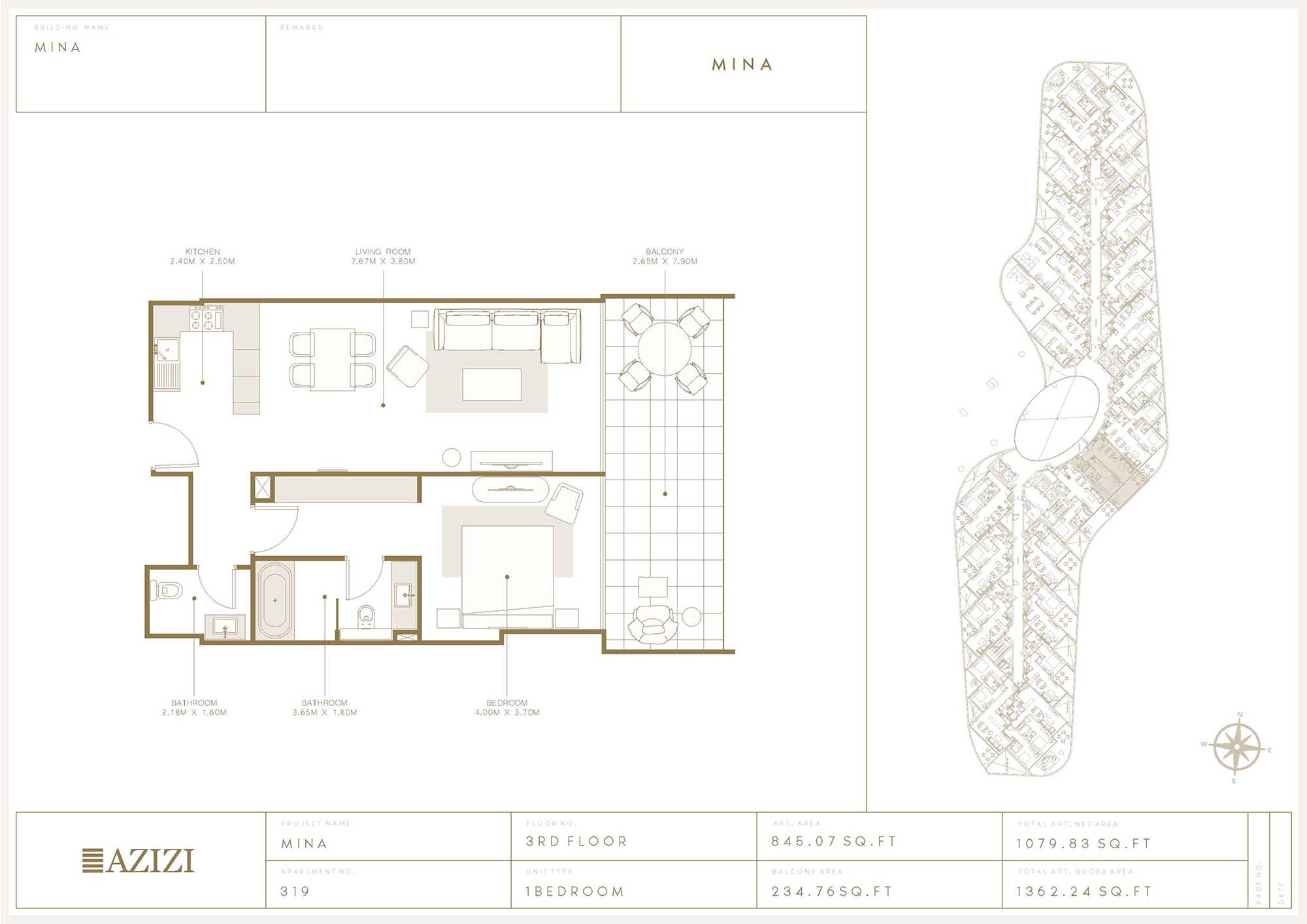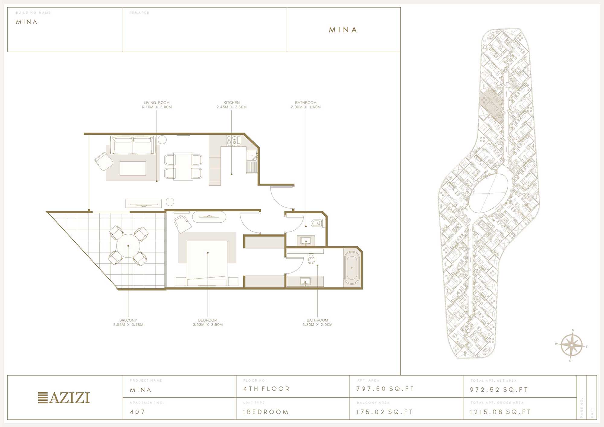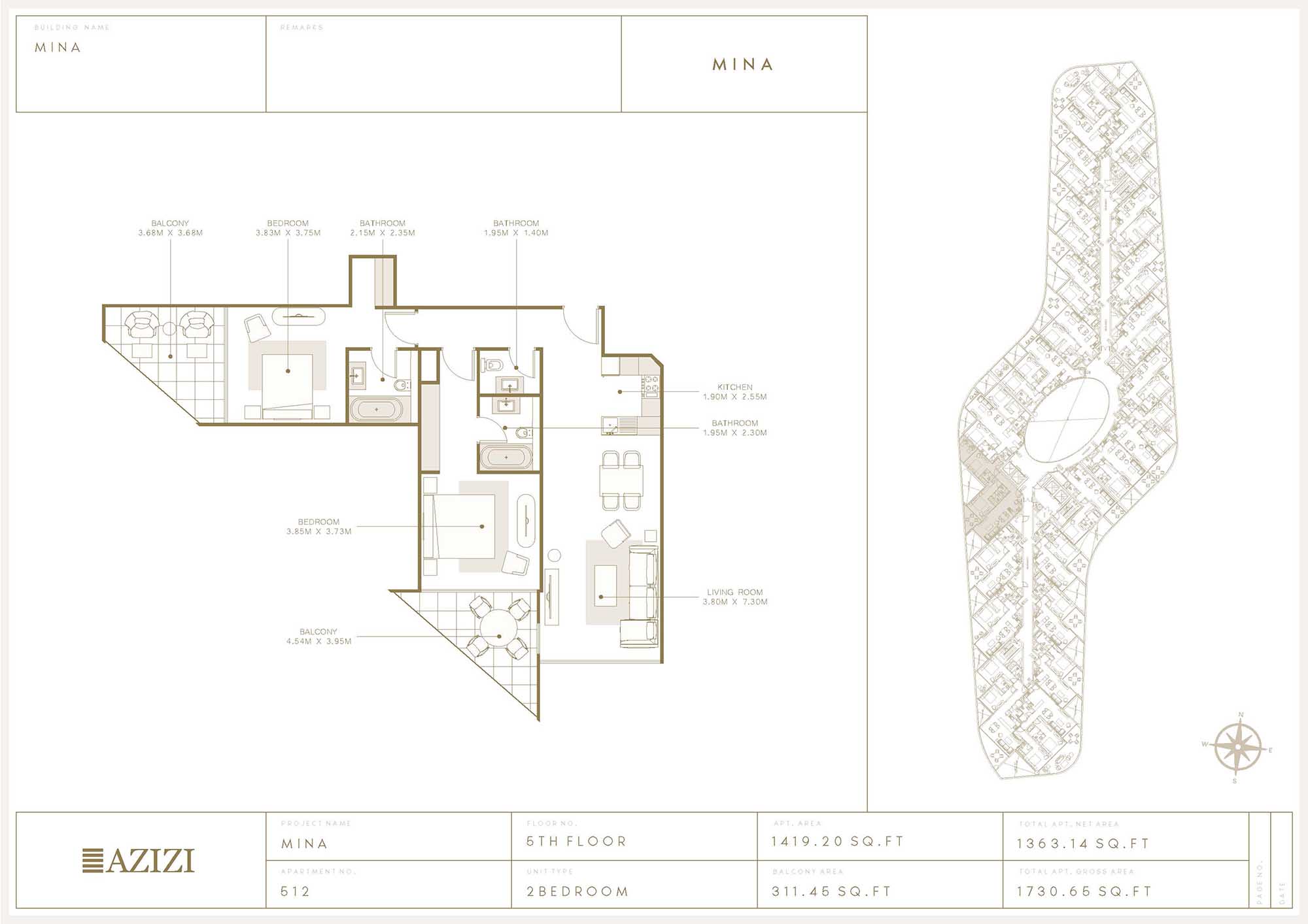 Azizi Mina provides spacious floor plan options offering waterfront designed 1 & 2-bedroom apartments and penthouses located in the serene community of the Palm Jumeirah. The development offers a total no of 178 elegant designed waterfront homes that further offers 120 one-bedroom, and 54 two-bedroom apartments along with four penthouses that are spread over an area of the total gross area of more than 2.3 hectares. While at the same time offers stunning views of the sea, deluxe amenities and interiors in a perfect backdrop of nature and style.