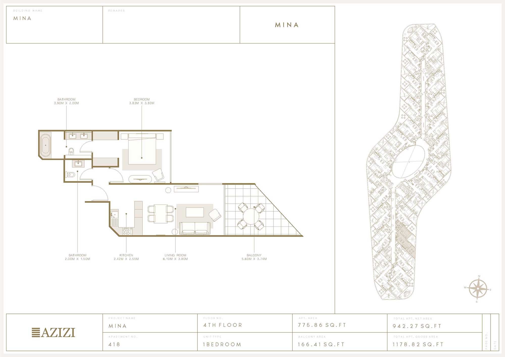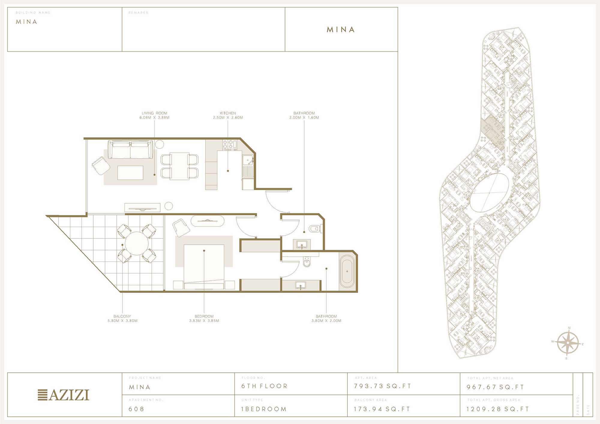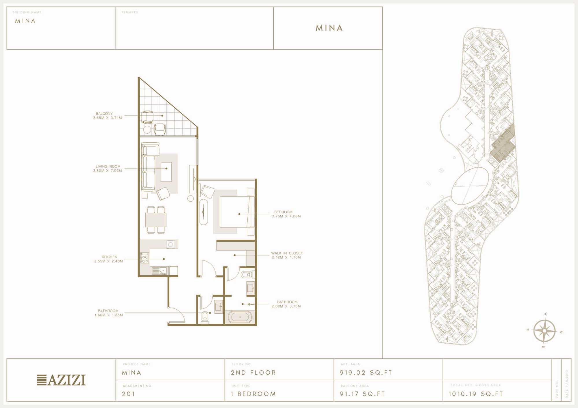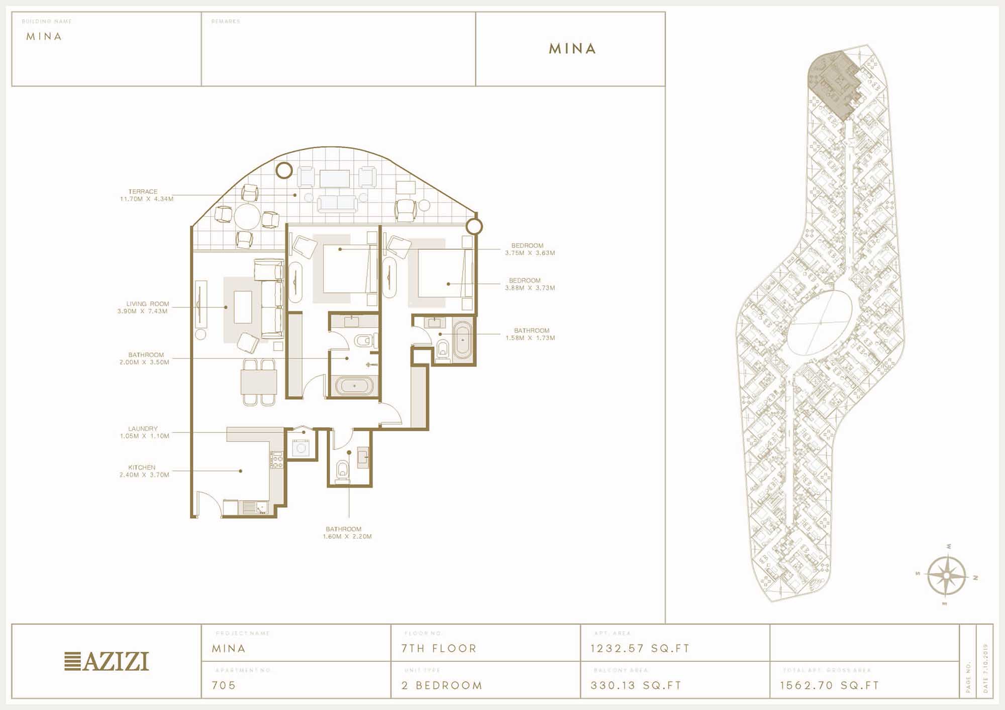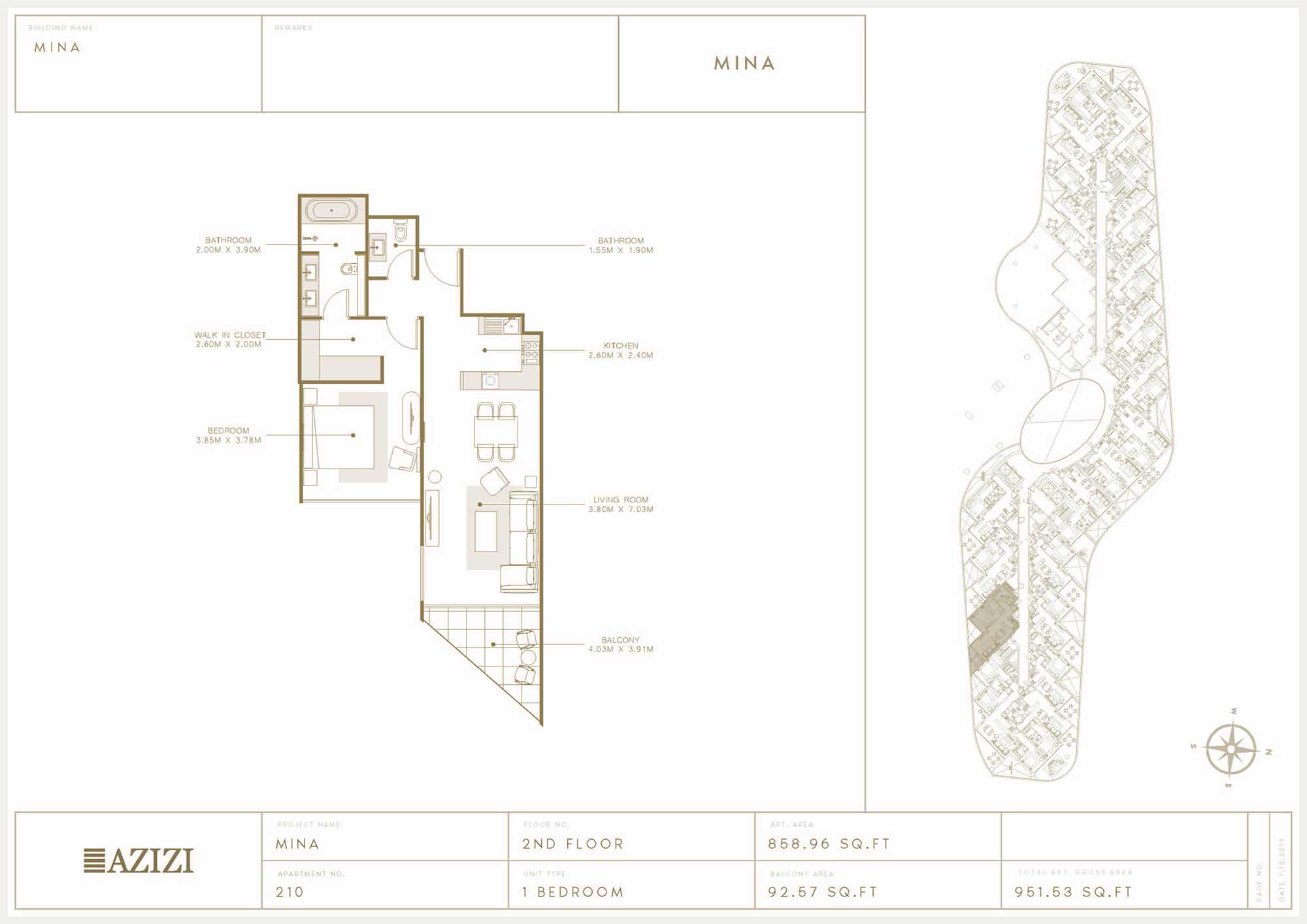 Azizi Mina provides spacious floor plan options offering waterfront designed 1 & 2-bedroom apartments and penthouses located in the serene community of the Palm Jumeirah. The development offers a total no of 178 elegant designed waterfront homes that further offers 120 one-bedroom, and 54 two-bedroom apartments along with four penthouses that are spread over an area of the total gross area of more than 2.3 hectares. While at the same time offers stunning views of the sea, deluxe amenities and interiors in a perfect backdrop of nature and style.