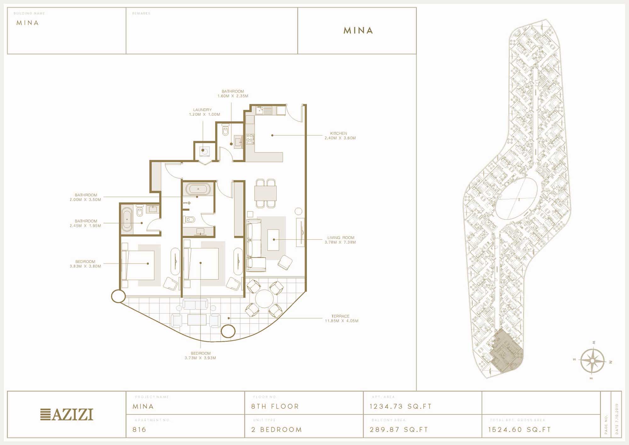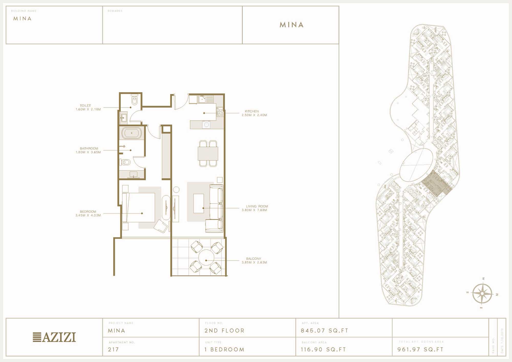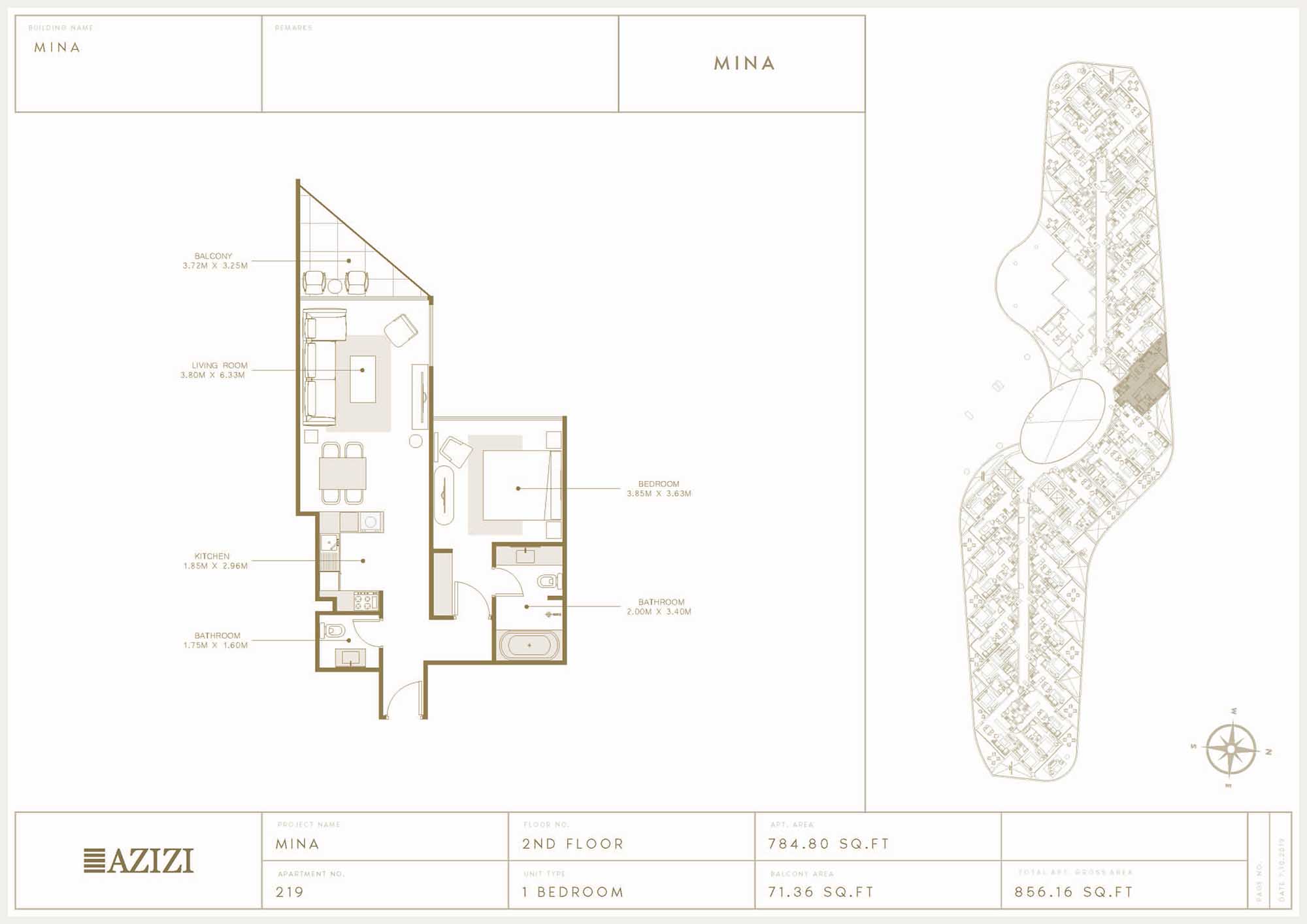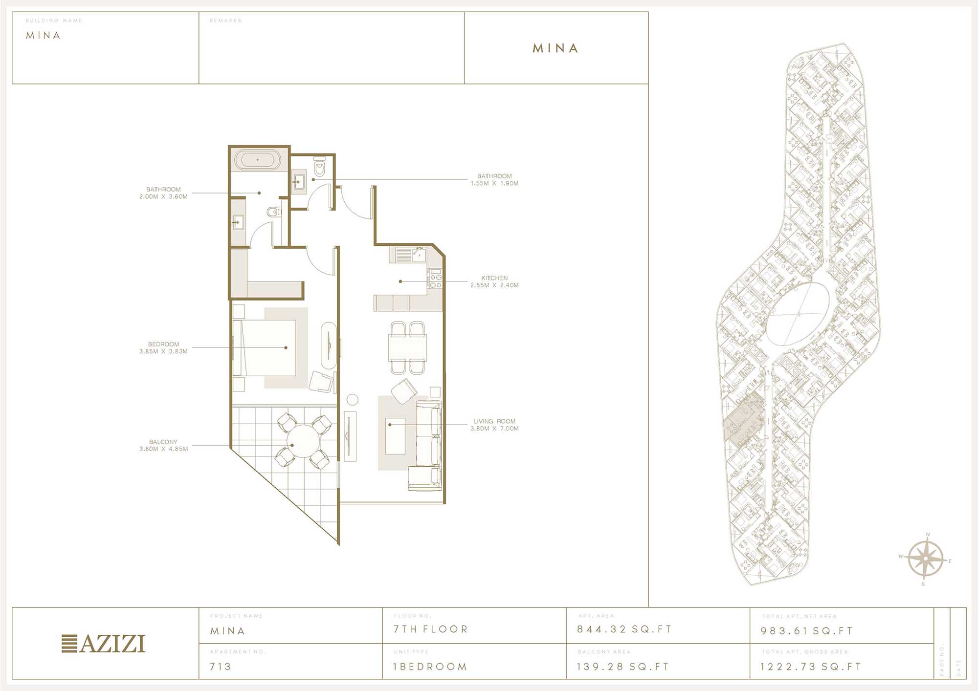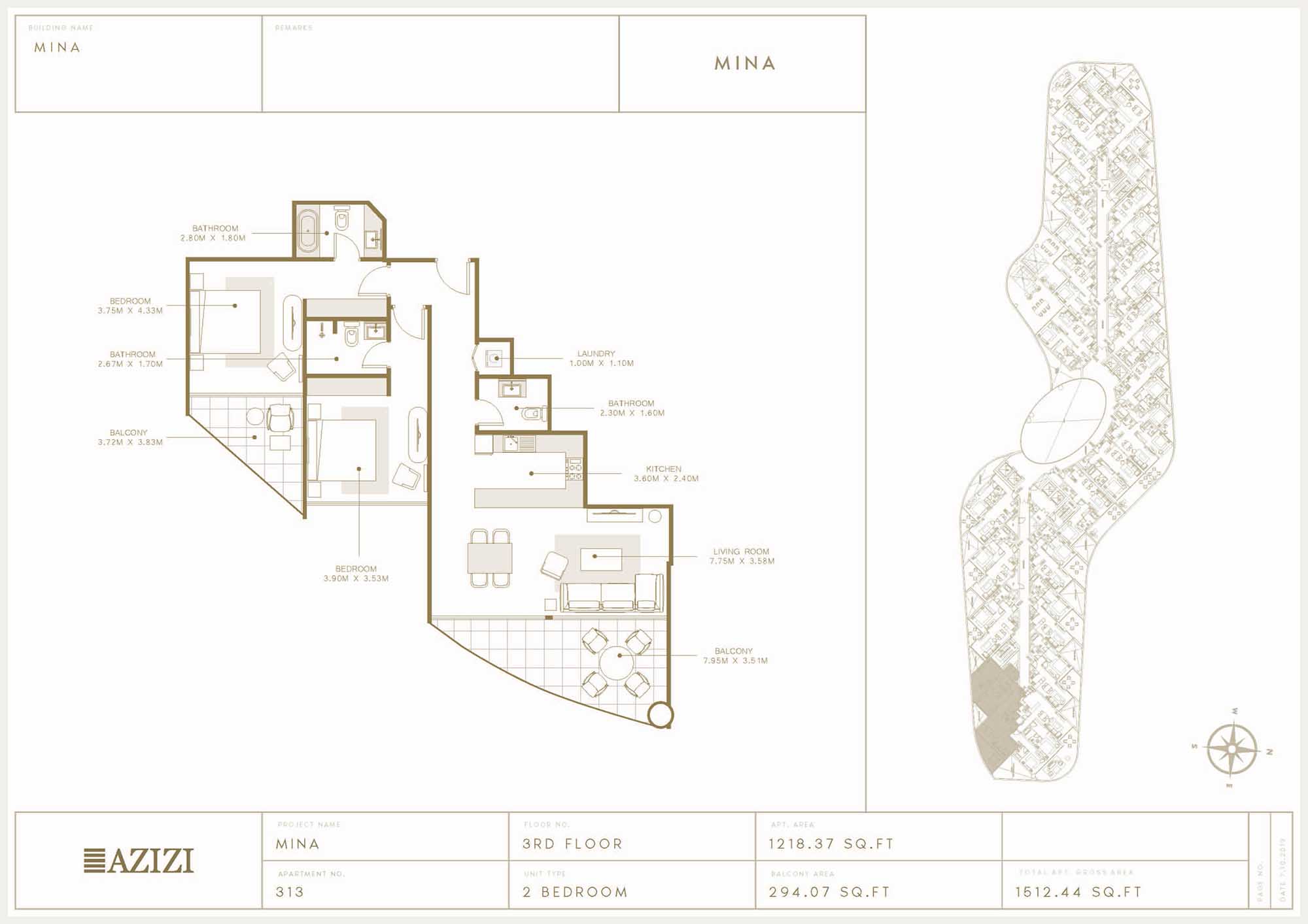 Azizi Mina provides spacious floor plan options offering waterfront designed 1 & 2-bedroom apartments and penthouses located in the serene community of the Palm Jumeirah. The development offers a total no of 178 elegant designed waterfront homes that further offers 120 one-bedroom, and 54 two-bedroom apartments along with four penthouses that are spread over an area of the total gross area of more than 2.3 hectares. While at the same time offers stunning views of the sea, deluxe amenities and interiors in a perfect backdrop of nature and style.