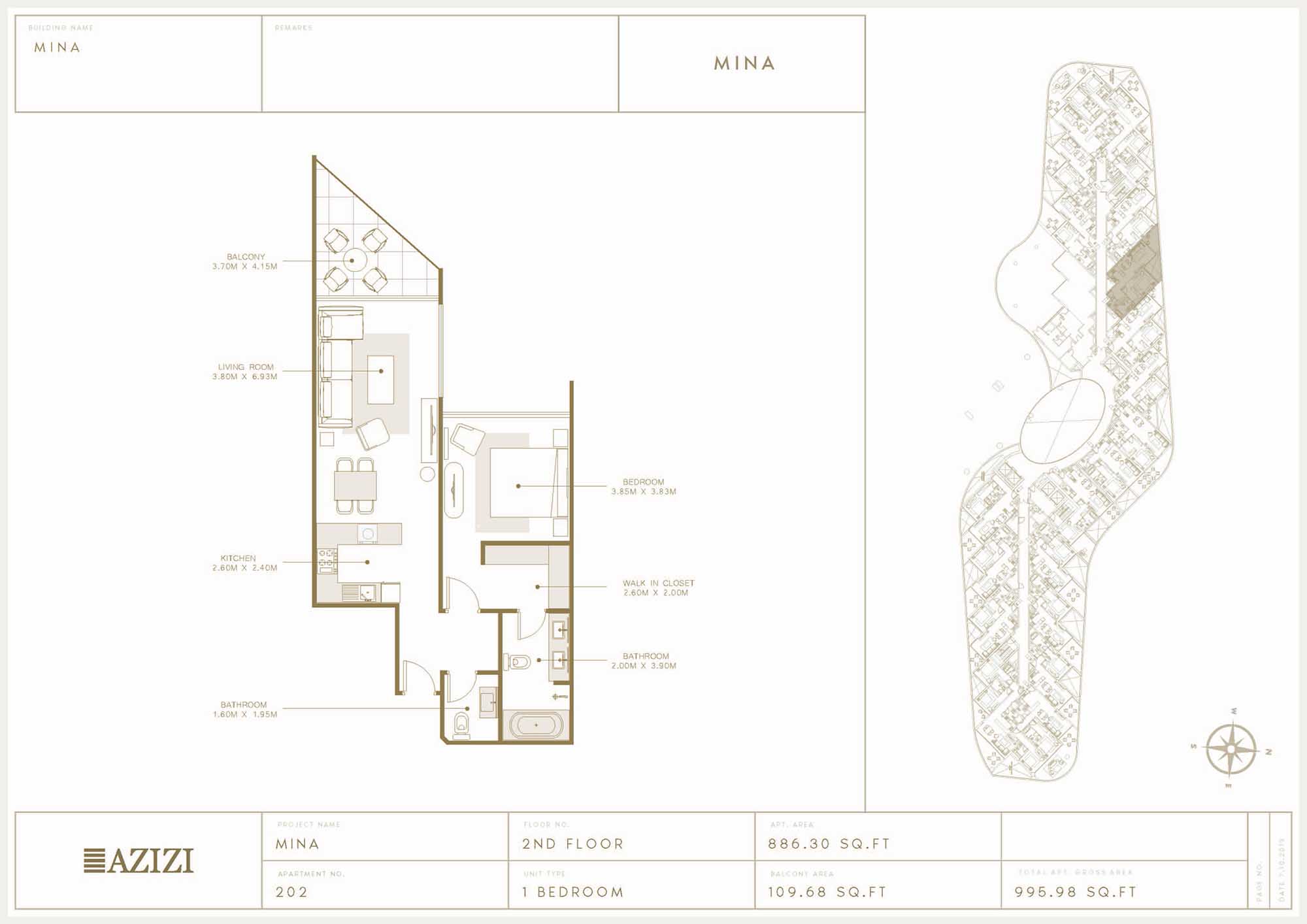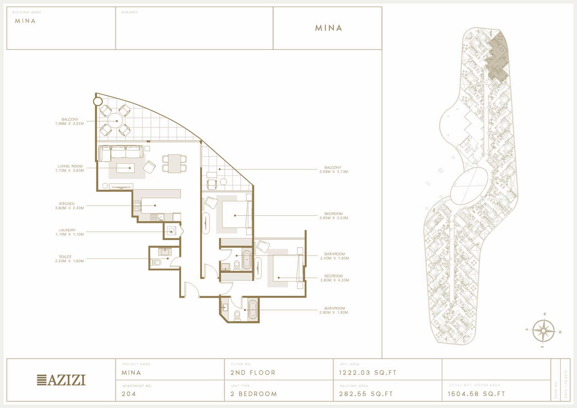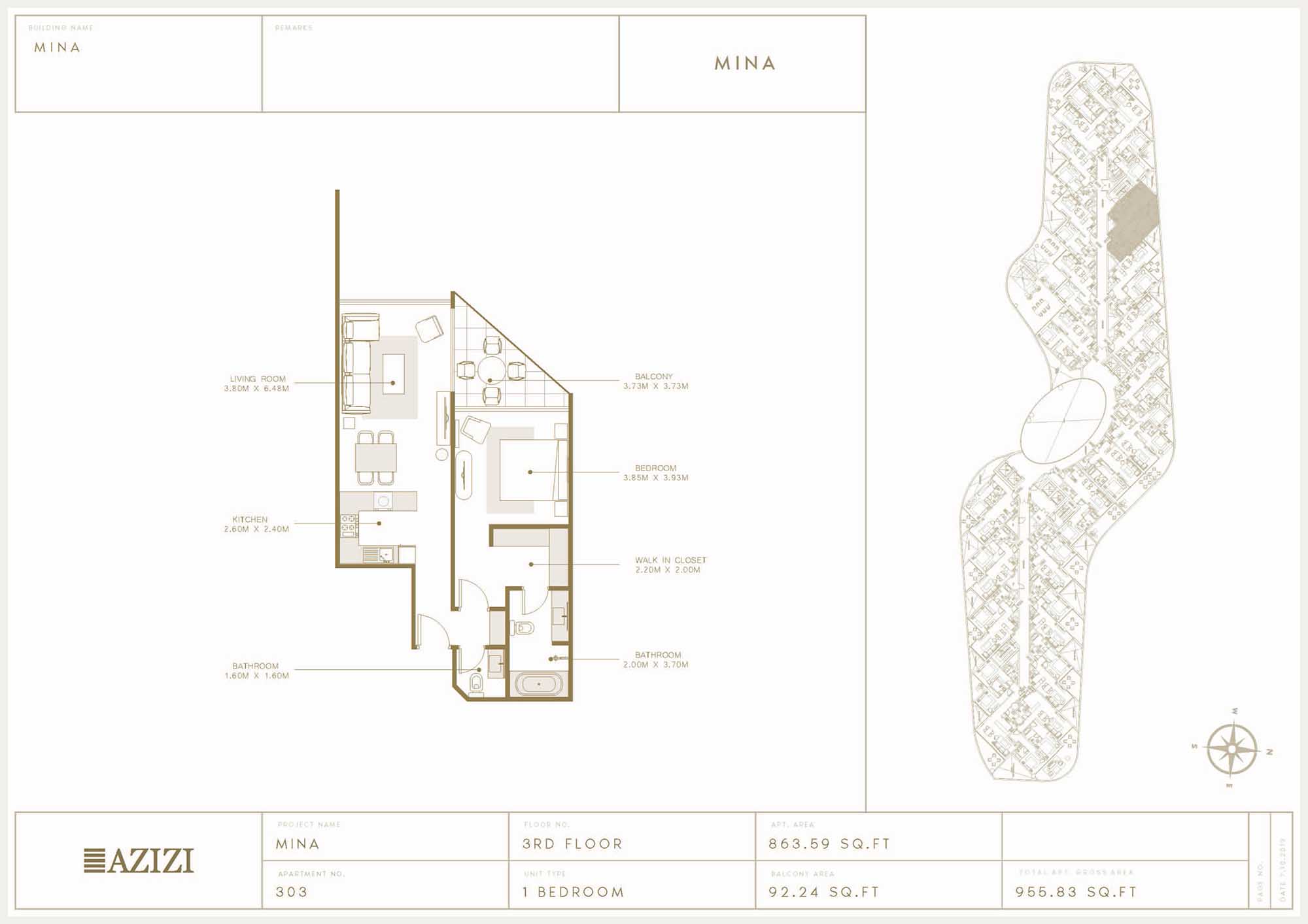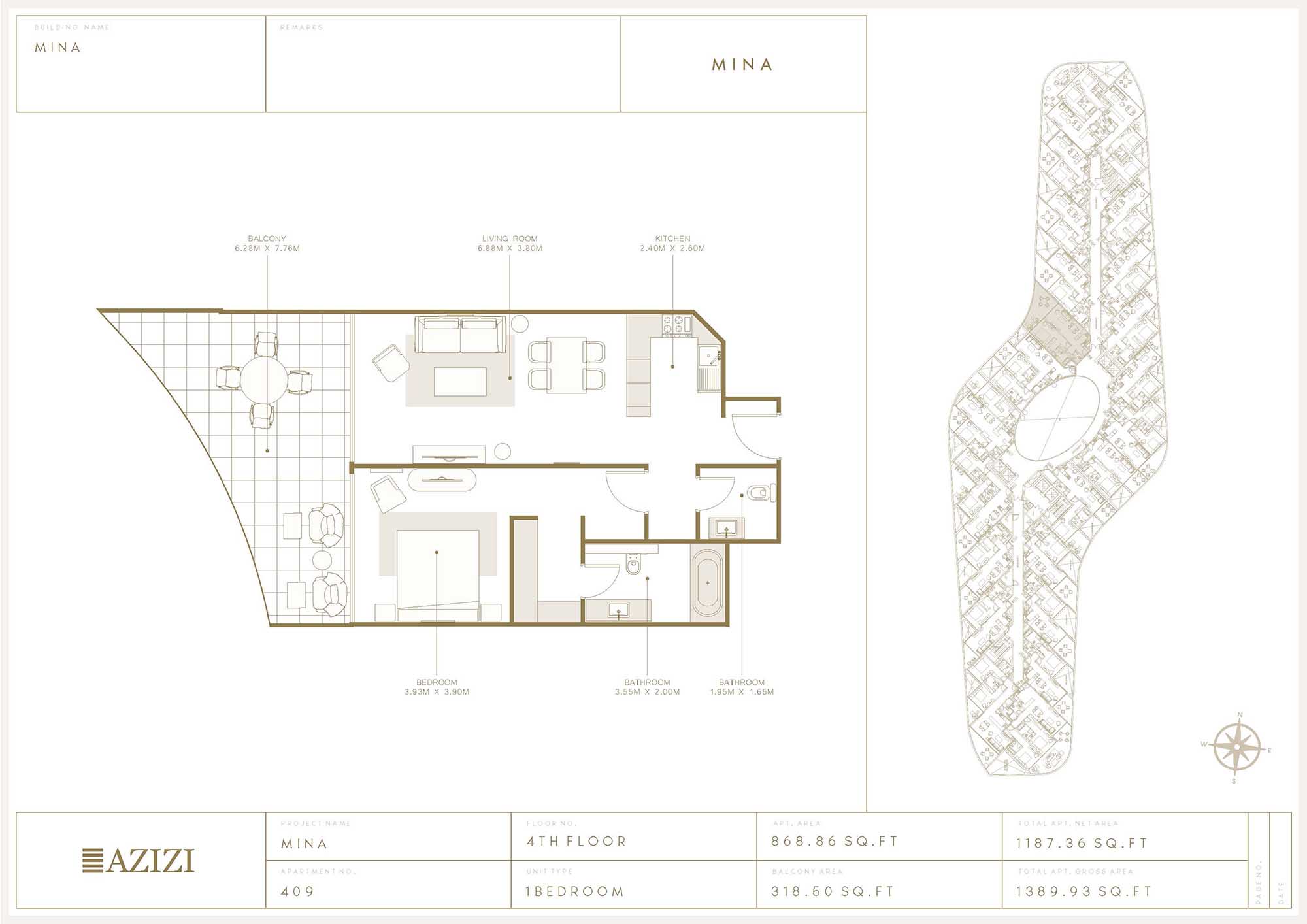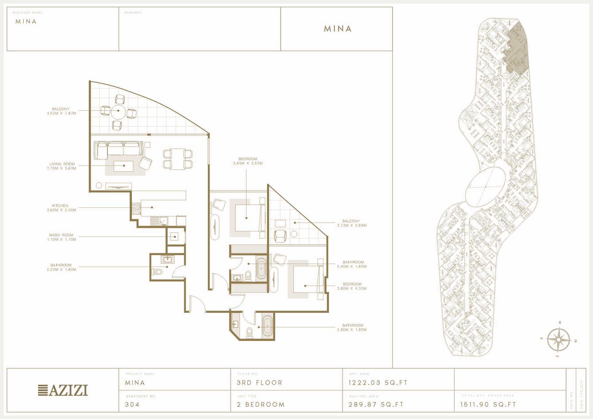 Azizi Mina provides spacious floor plan options offering waterfront designed 1 & 2-bedroom apartments and penthouses located in the serene community of the Palm Jumeirah. The development offers a total no of 178 elegant designed waterfront homes that further offers 120 one-bedroom, and 54 two-bedroom apartments along with four penthouses that are spread over an area of the total gross area of more than 2.3 hectares. While at the same time offers stunning views of the sea, deluxe amenities and interiors in a perfect backdrop of nature and style.