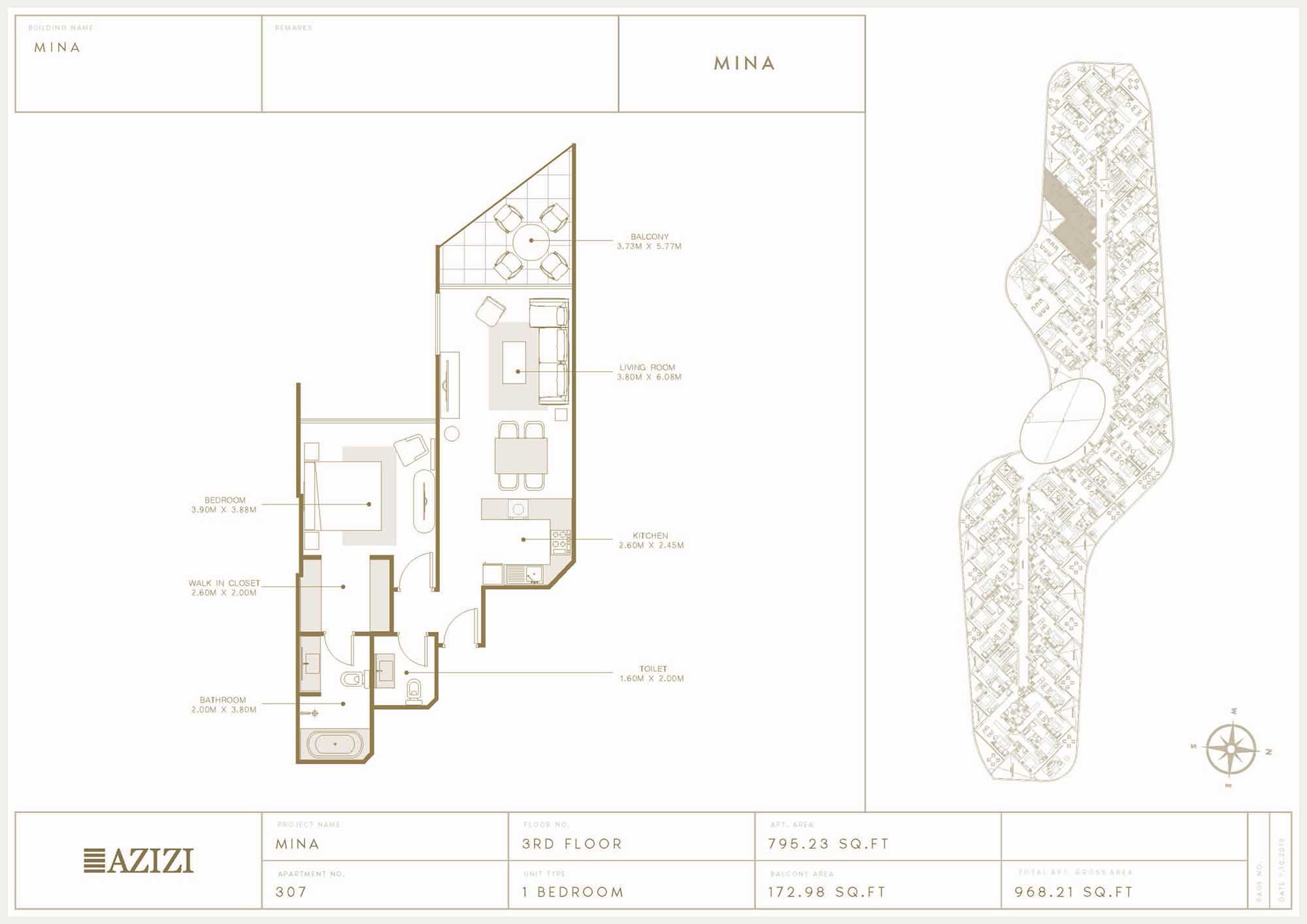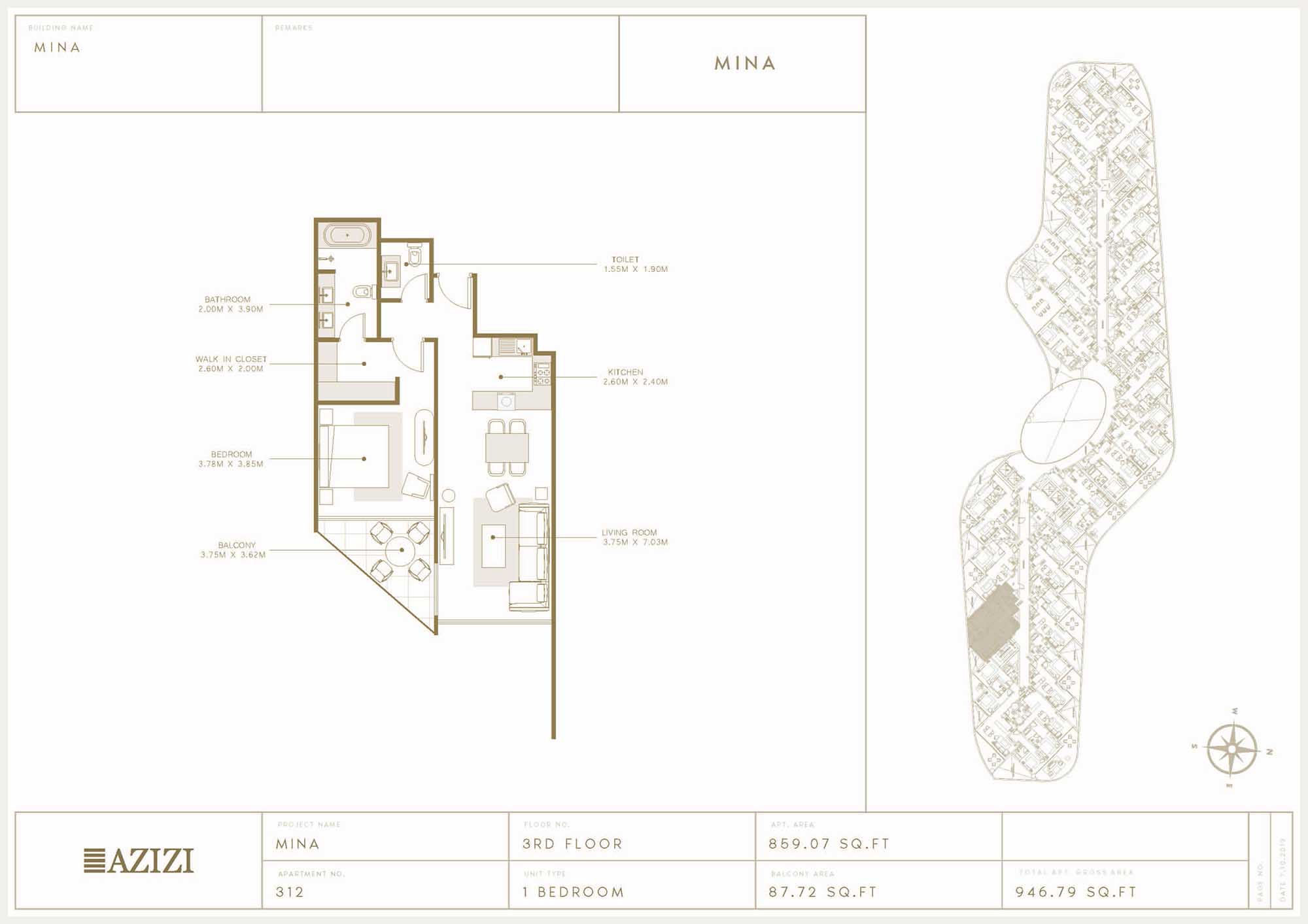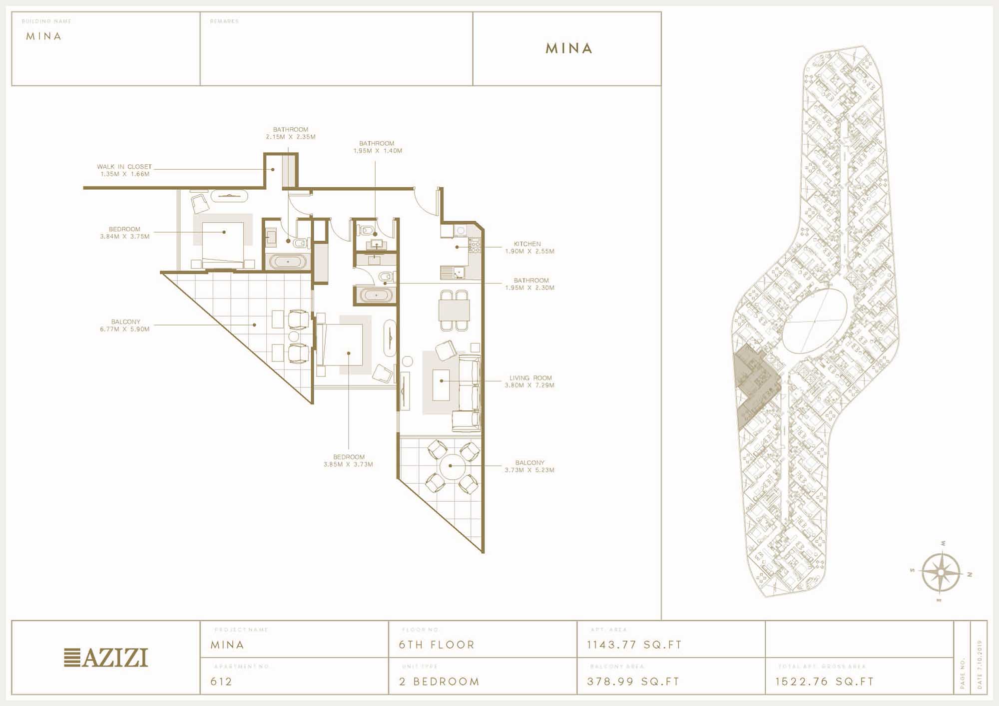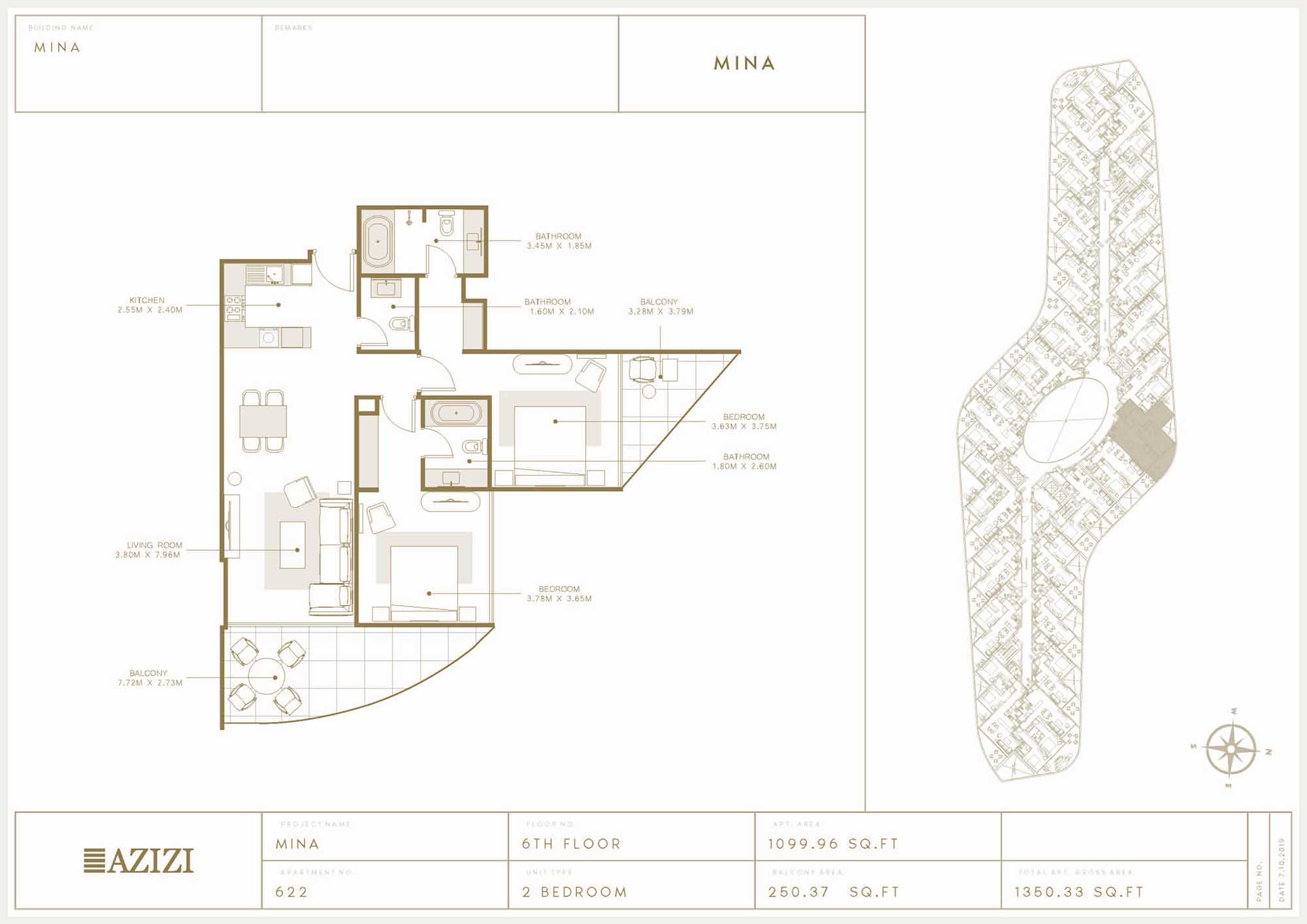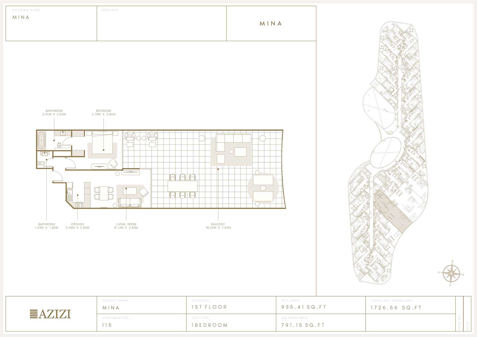 Azizi Mina provides spacious floor plan options offering waterfront designed 1 & 2-bedroom apartments and penthouses located in the serene community of the Palm Jumeirah. The development offers a total no of 178 elegant designed waterfront homes that further offers 120 one-bedroom, and 54 two-bedroom apartments along with four penthouses that are spread over an area of the total gross area of more than 2.3 hectares. While at the same time offers stunning views of the sea, deluxe amenities and interiors in a perfect backdrop of nature and style.