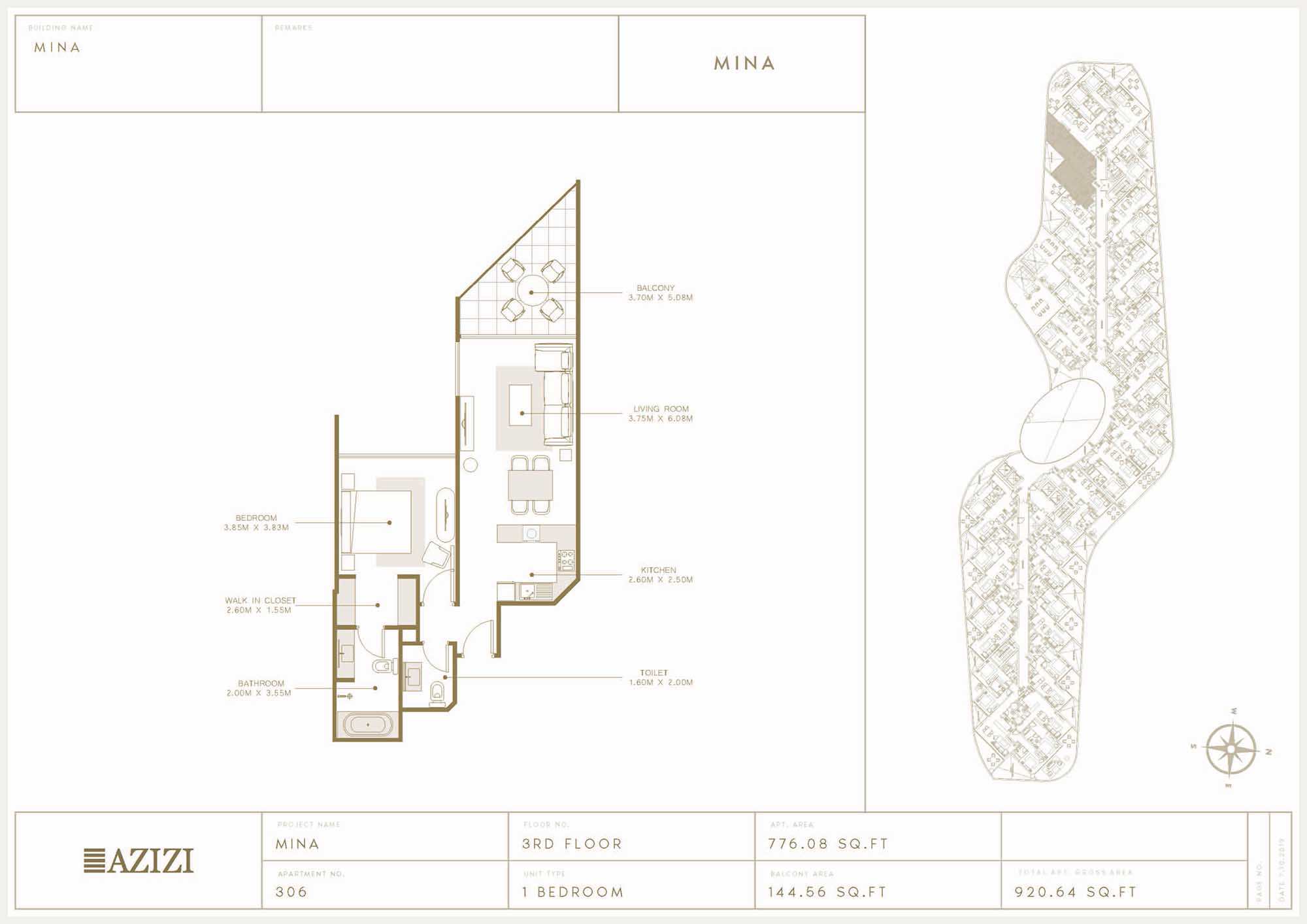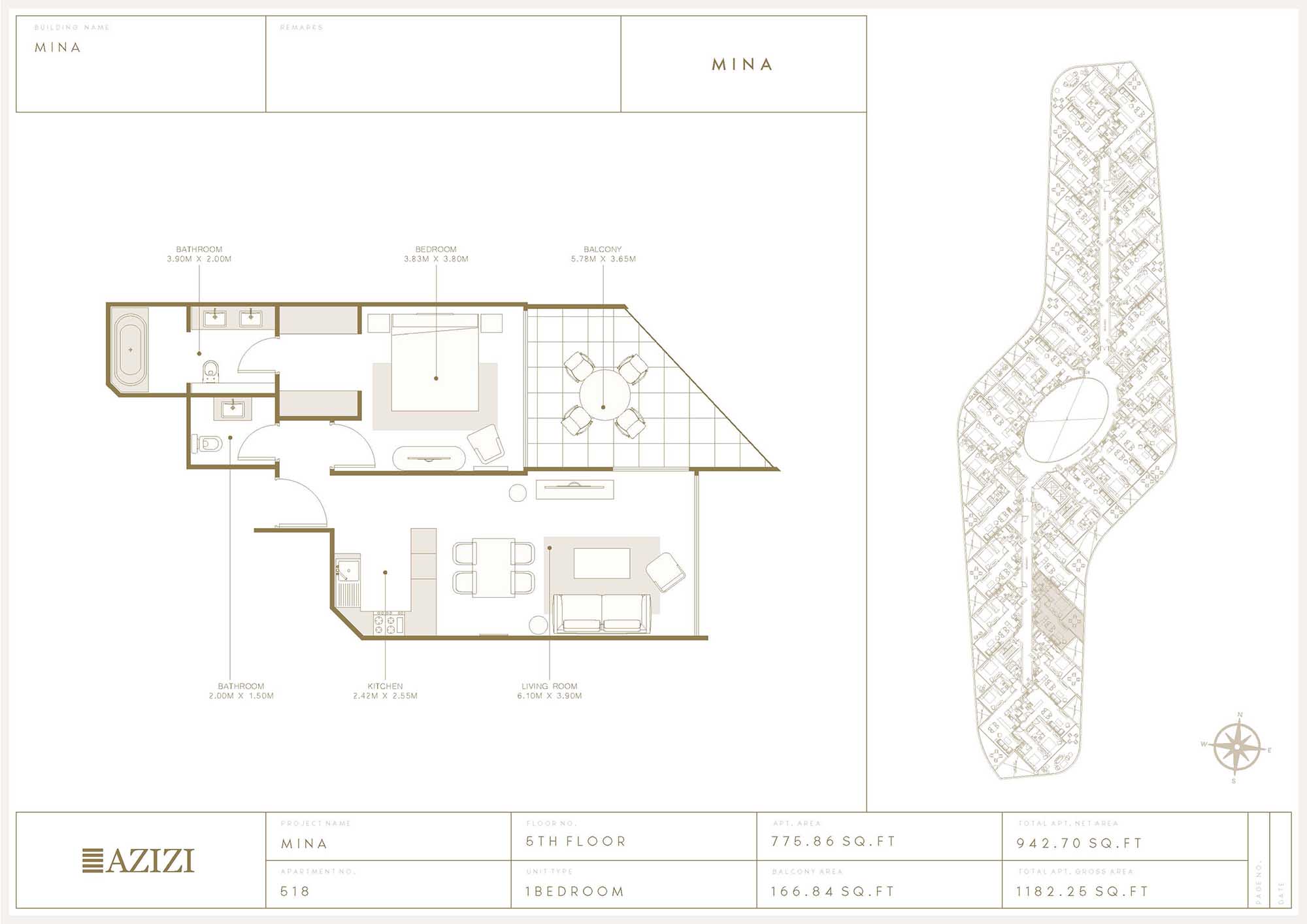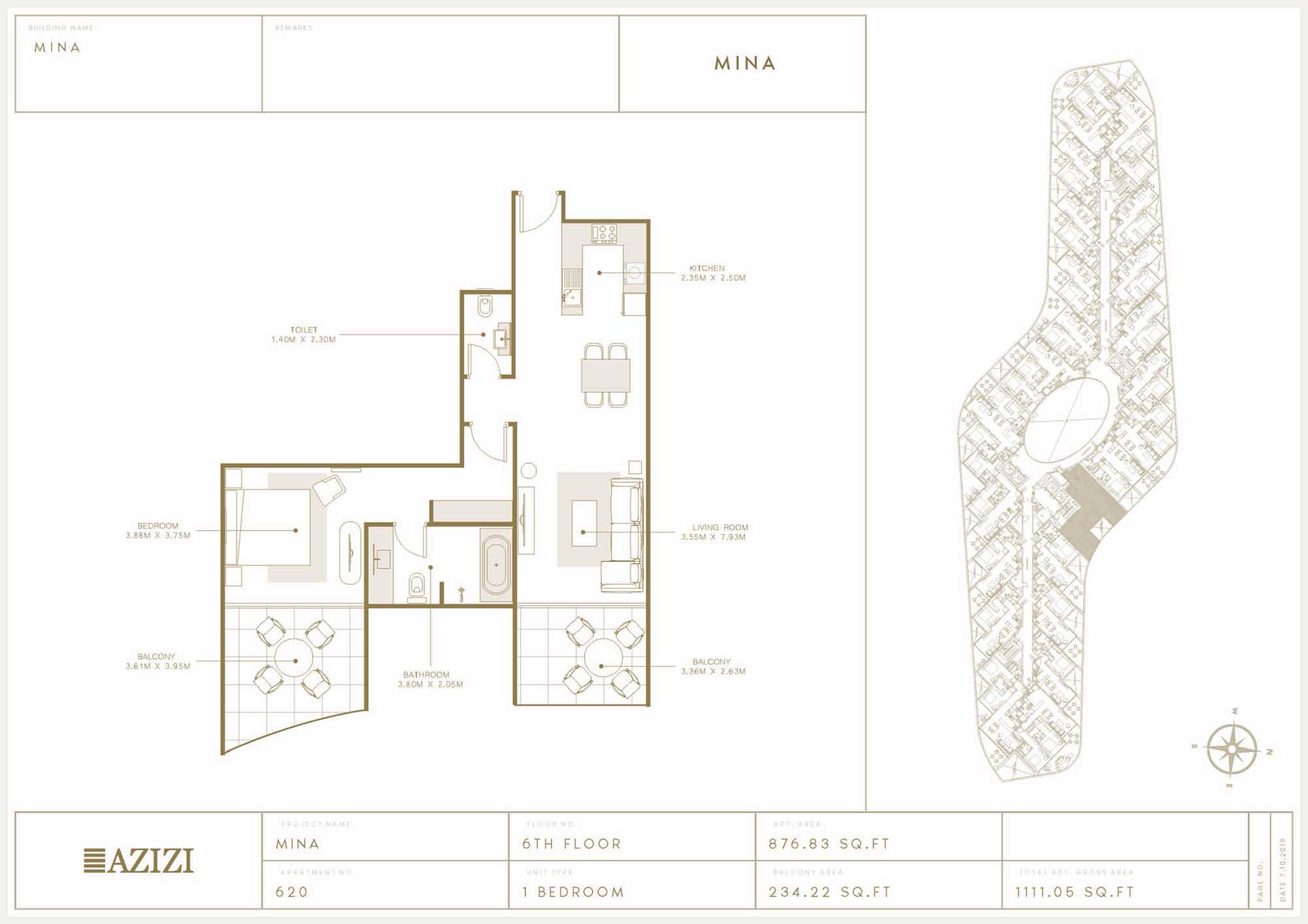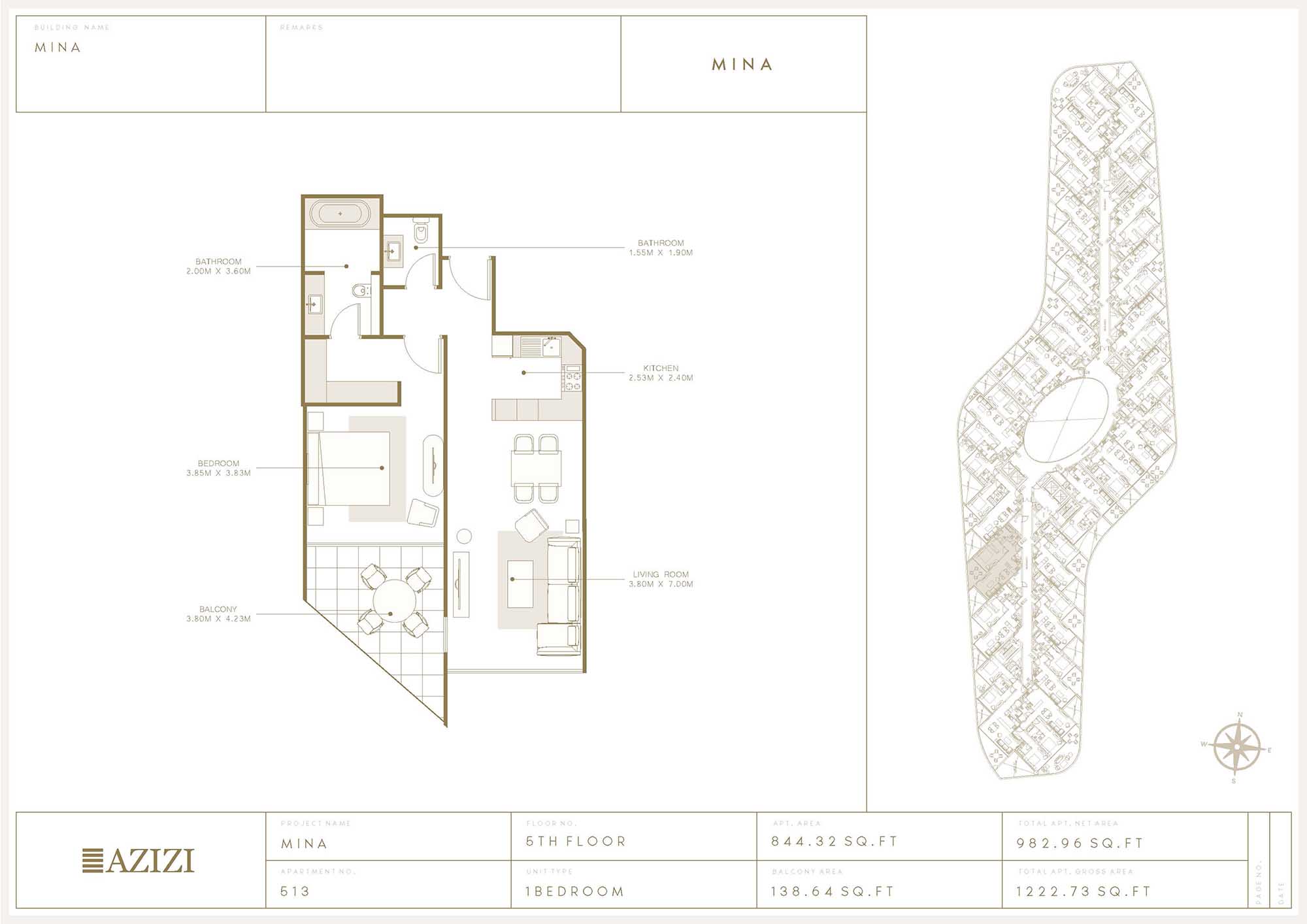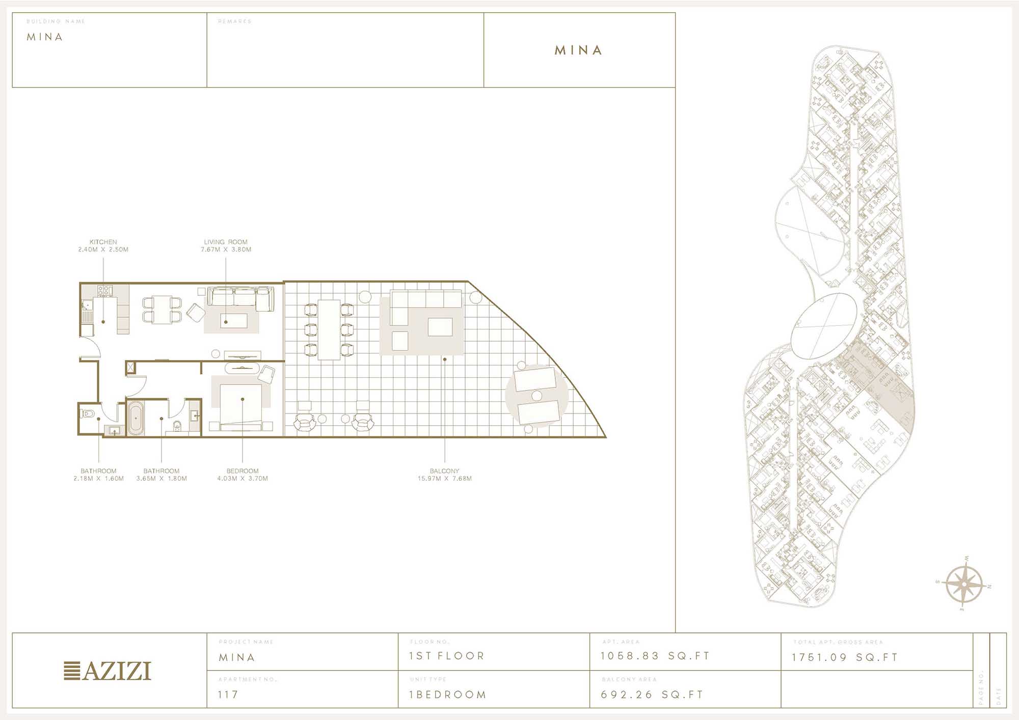 Azizi Mina provides spacious floor plan options offering waterfront designed 1 & 2-bedroom apartments and penthouses located in the serene community of the Palm Jumeirah. The development offers a total no of 178 elegant designed waterfront homes that further offers 120 one-bedroom, and 54 two-bedroom apartments along with four penthouses that are spread over an area of the total gross area of more than 2.3 hectares. While at the same time offers stunning views of the sea, deluxe amenities and interiors in a perfect backdrop of nature and style.