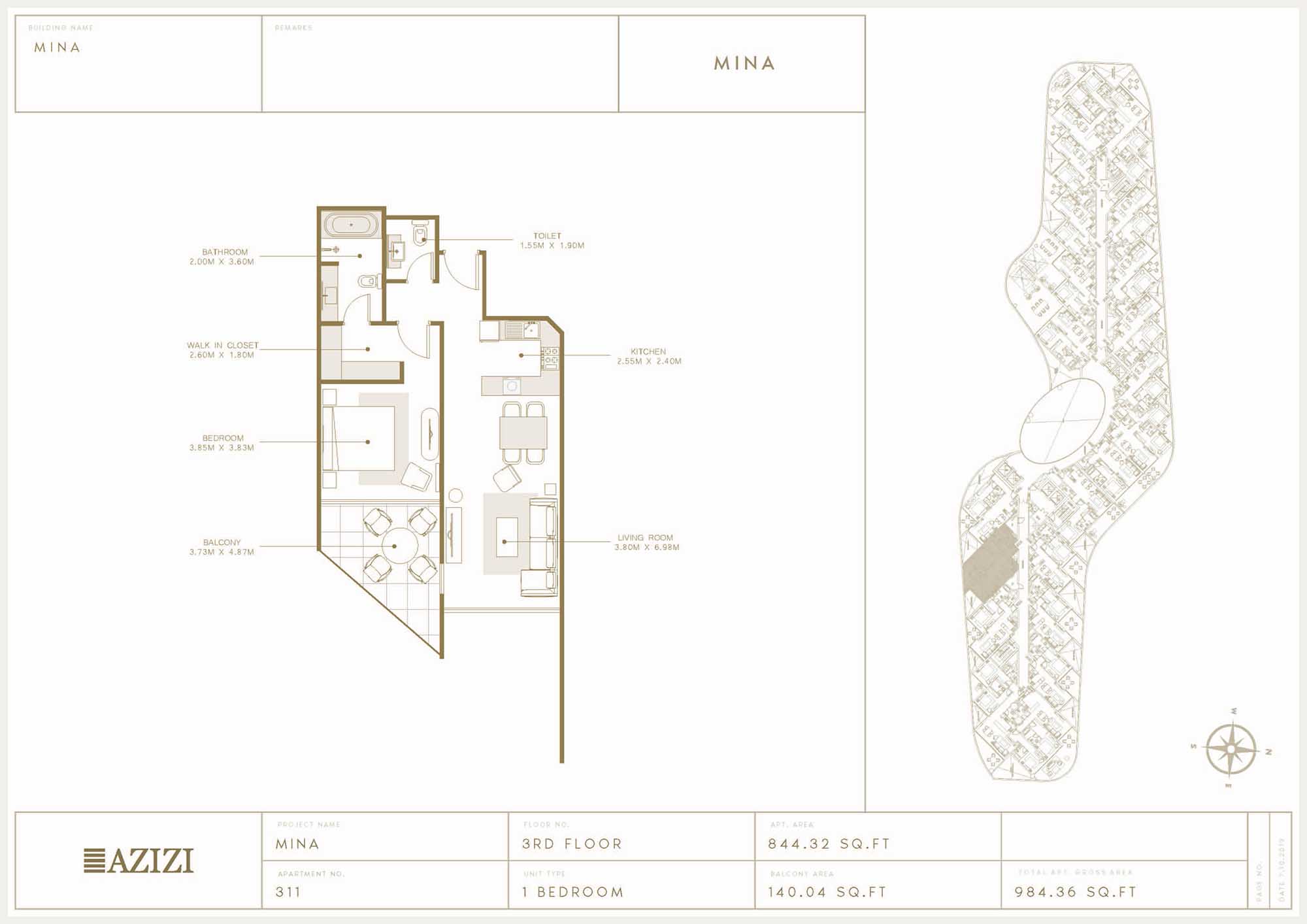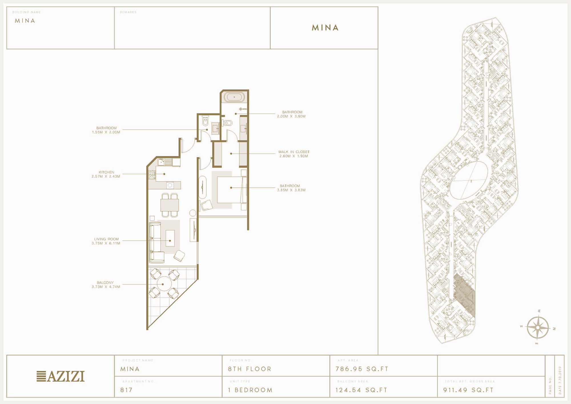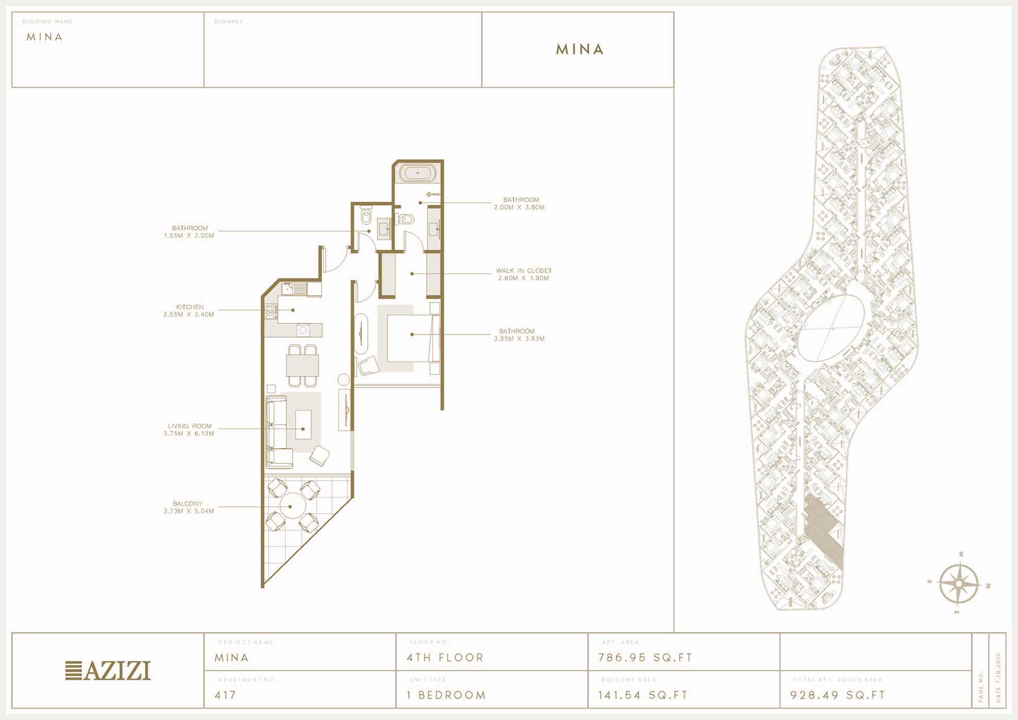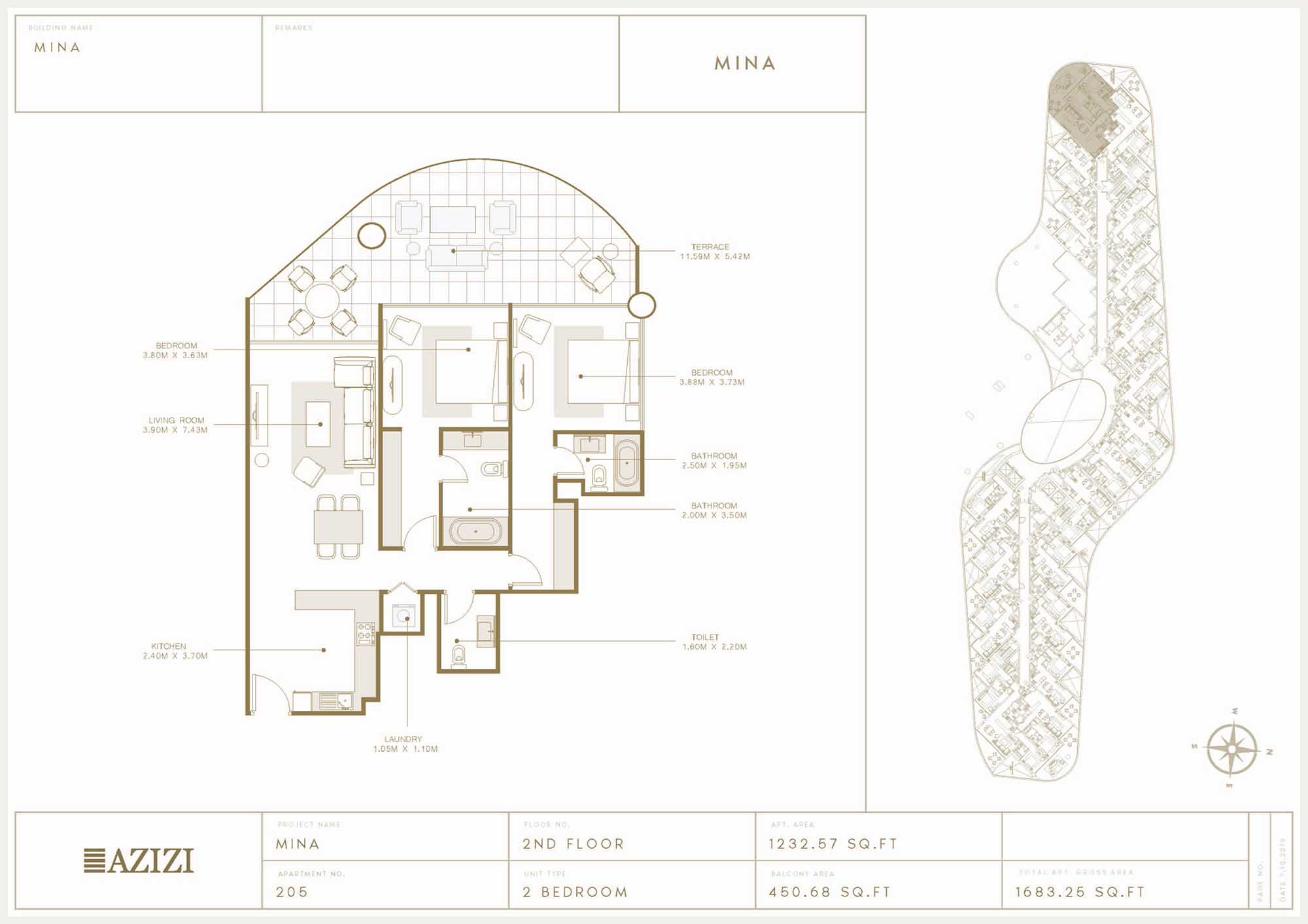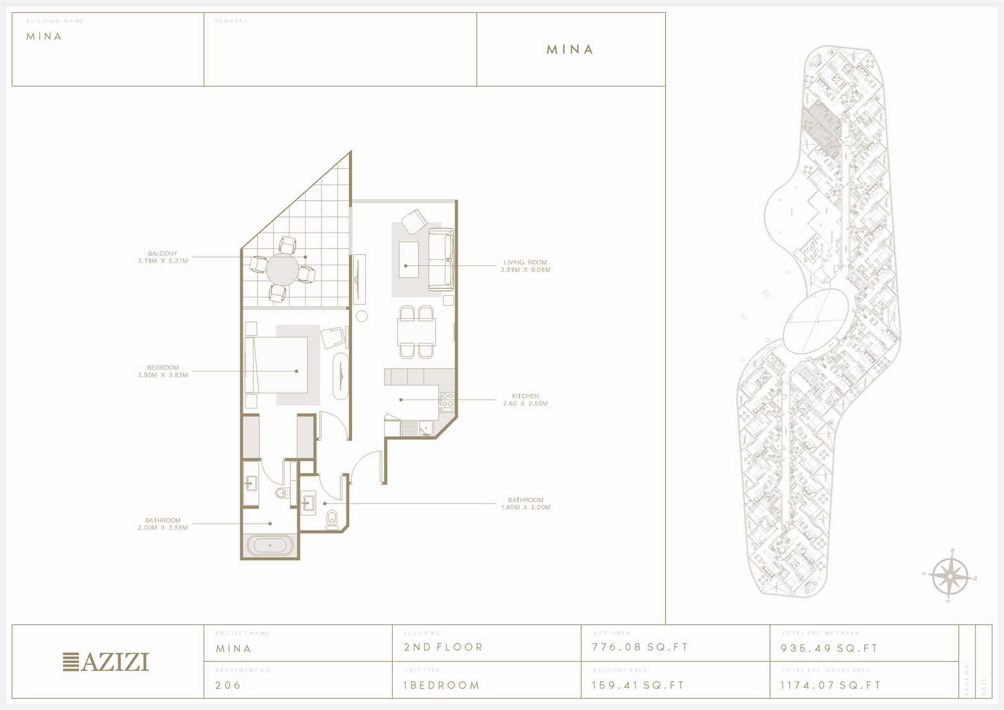 Azizi Mina provides spacious floor plan options offering waterfront designed 1 & 2-bedroom apartments and penthouses located in the serene community of the Palm Jumeirah. The development offers a total no of 178 elegant designed waterfront homes that further offers 120 one-bedroom, and 54 two-bedroom apartments along with four penthouses that are spread over an area of the total gross area of more than 2.3 hectares. While at the same time offers stunning views of the sea, deluxe amenities and interiors in a perfect backdrop of nature and style.